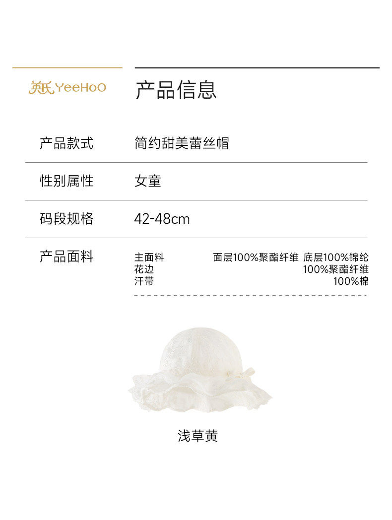 英氏儿童帽子夏渔夫帽防晒透气户外防晒帽子遮阳帽女YRPJJ2S010A