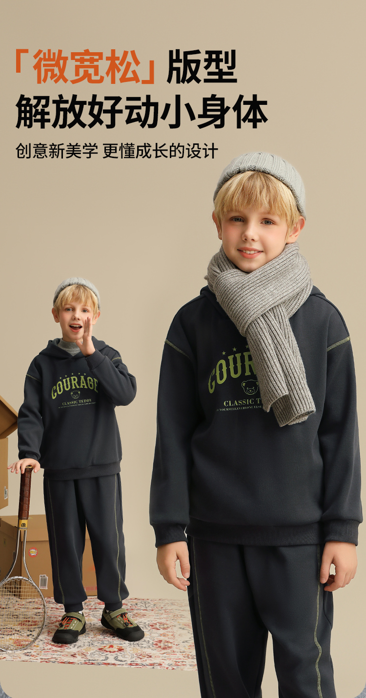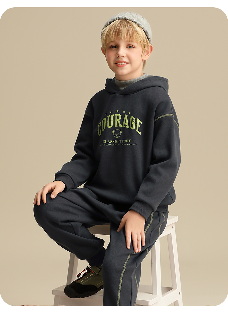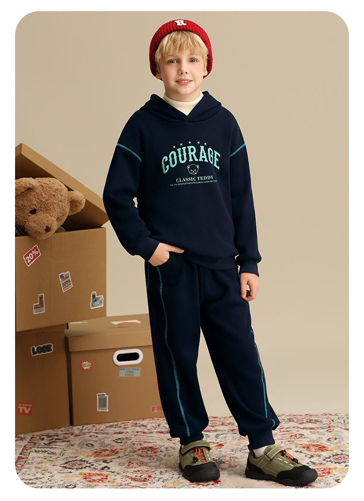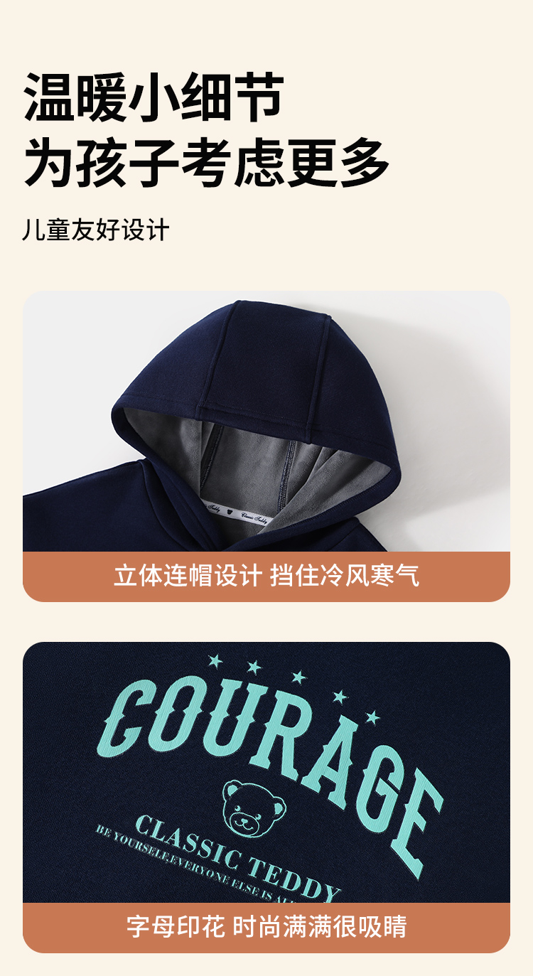 【清仓捡漏】【加绒两件套】【110-120】【精典泰迪】男童冬款加厚连帽卫衣卫裤套装加绒套装