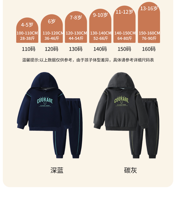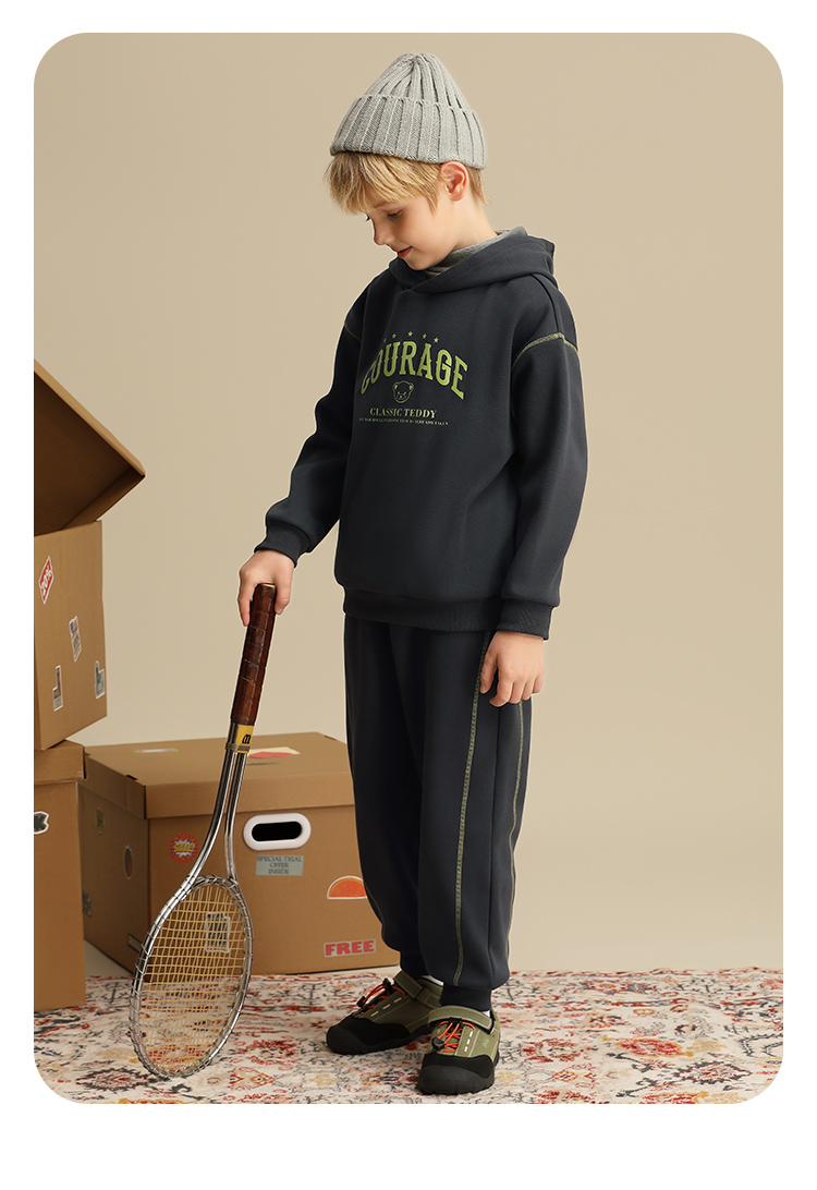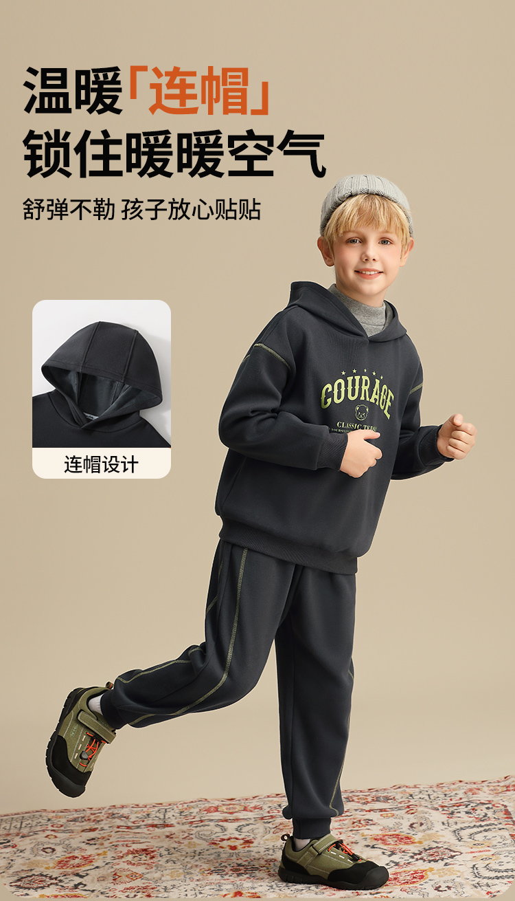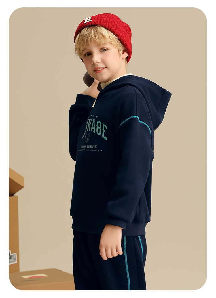 【清仓捡漏】【加绒两件套】【110-120】【精典泰迪】男童冬款加厚连帽卫衣卫裤套装加绒套装
