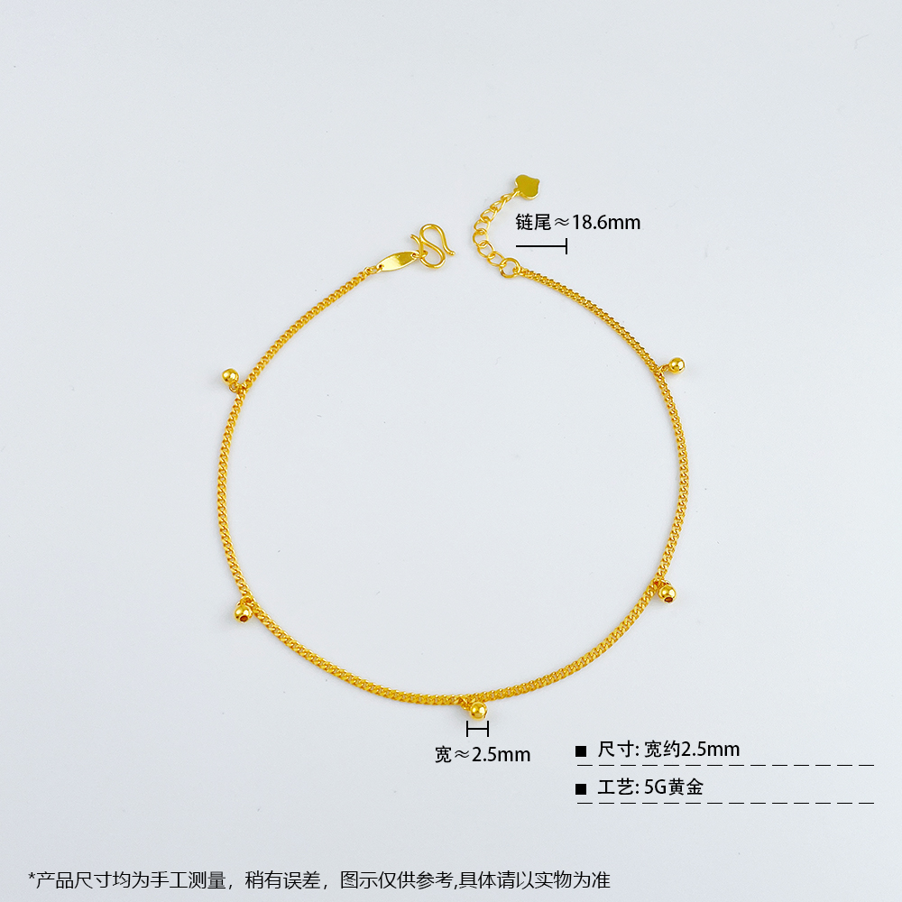 【限时7.5折】【定价黄金】足金999 5G黄金圆珠调节脚链(AG5GJL00004)预售产品下单后不退款不退货不换货不补差价