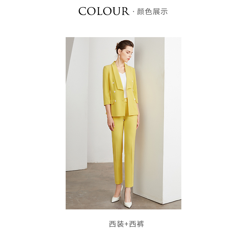 IWY/正装套装修身显瘦英伦风职业装黄色气质时尚高端总裁西装OL工作服CP10223