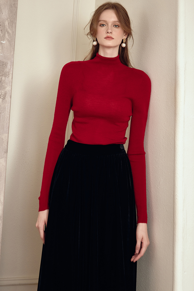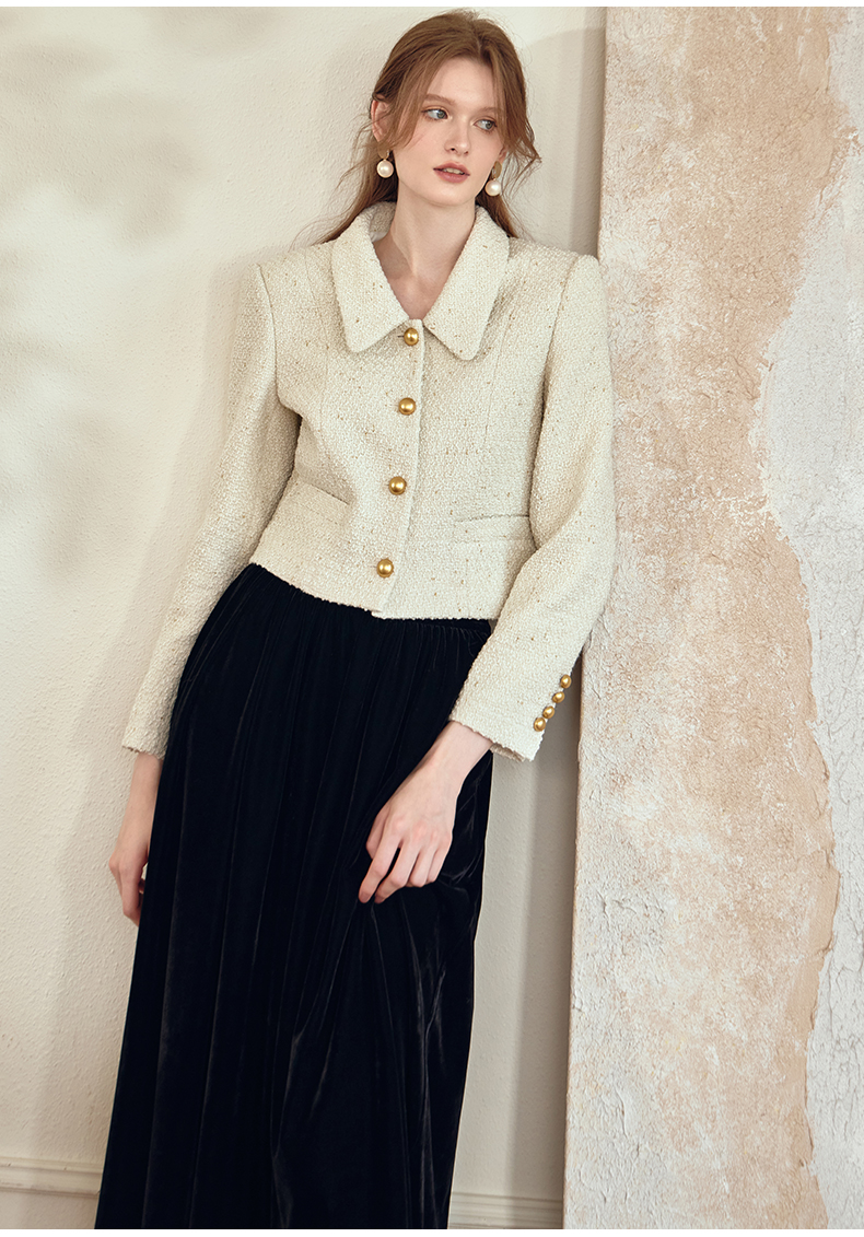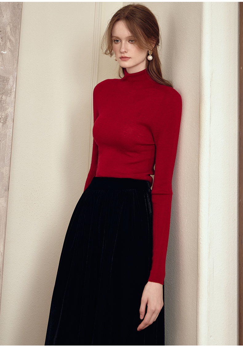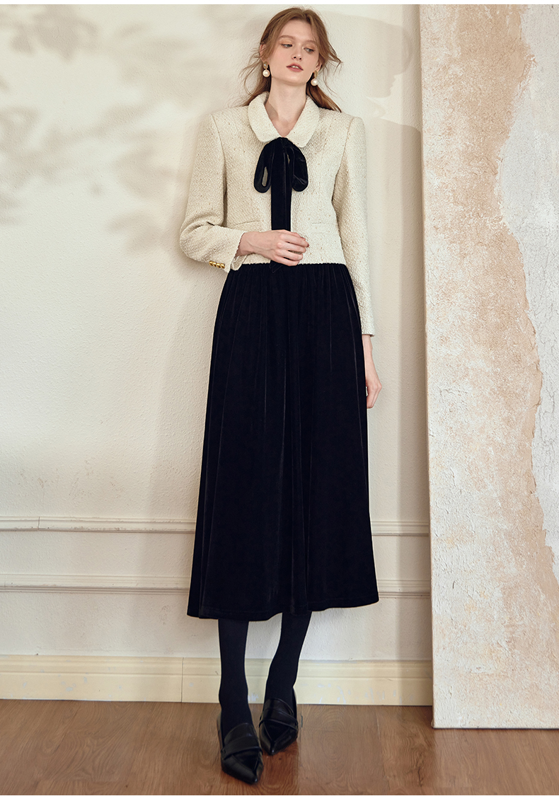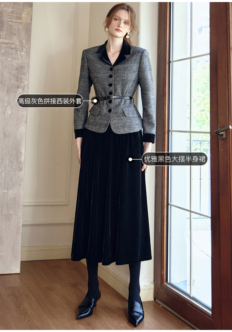 BE09785罗衣复古丝绒黑色高腰半身裙2023冬装新款优雅大摆褶皱裙子