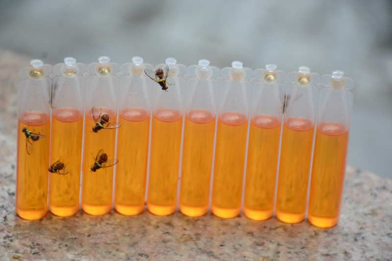 实蝇引诱剂是根据实蝇的趋化性而研制的特定引诱剂,通过释放特定的信息素引诱实蝇飞向诱捕器中,需要与诱捕器搭配使用。