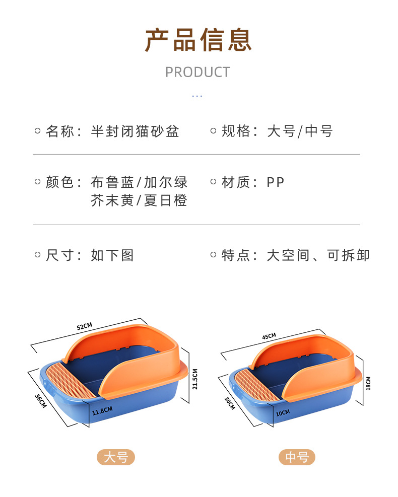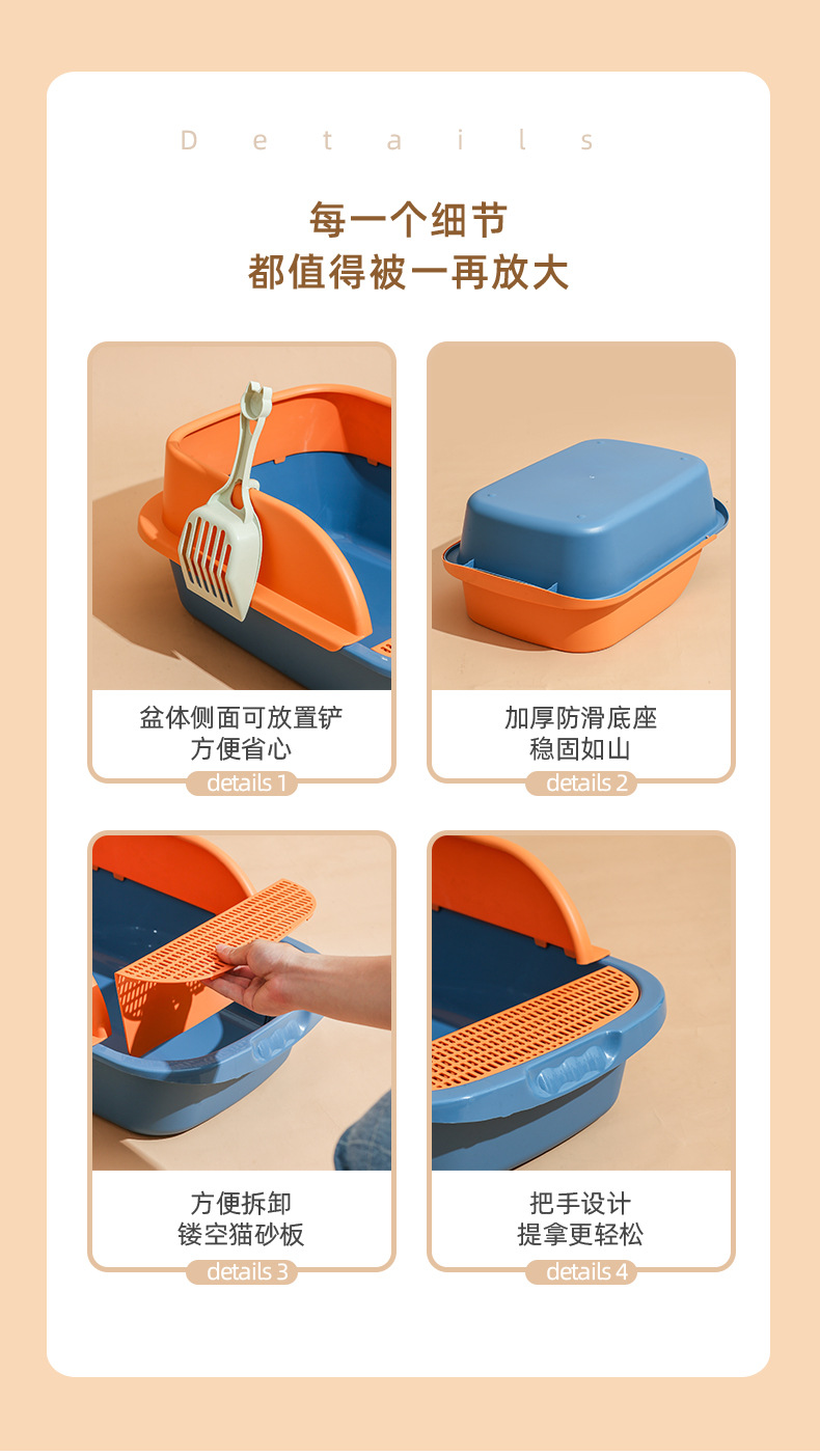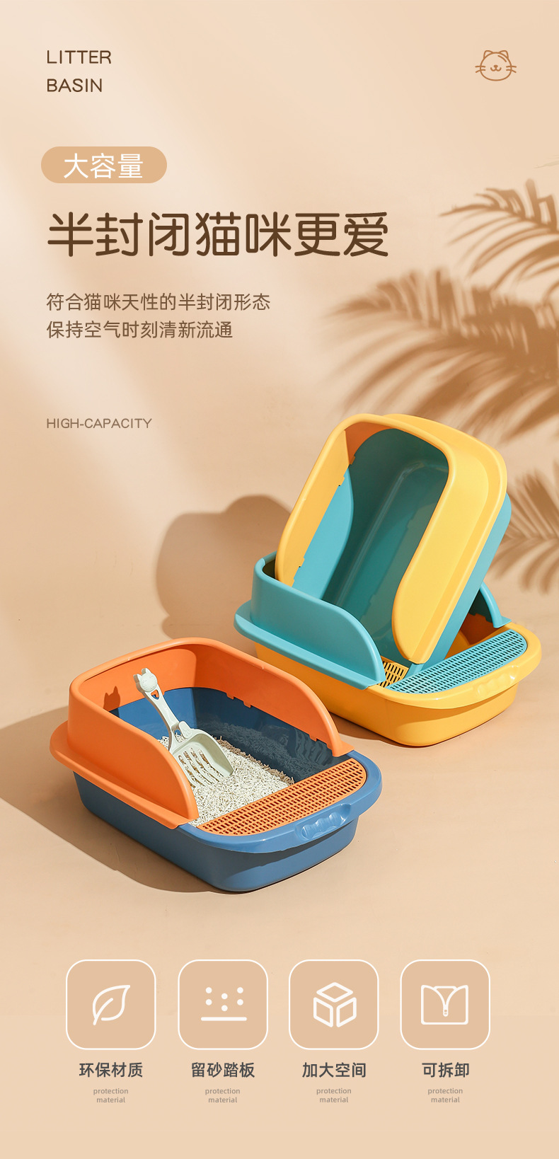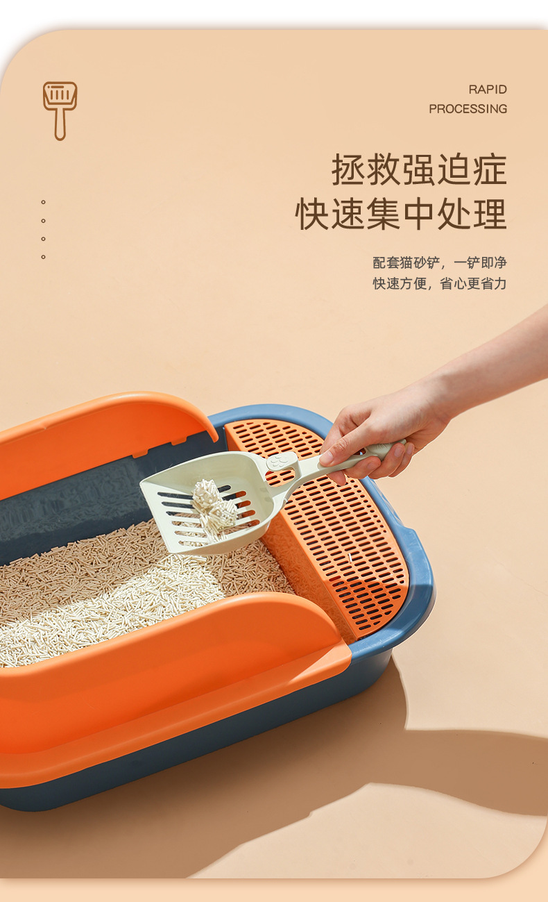 加大半封闭猫砂盆 防外溅猫厕所猫沙盆猫咪宠物用品 送猫砂铲