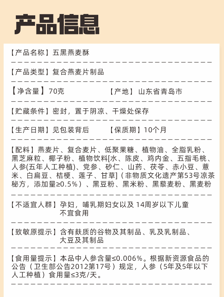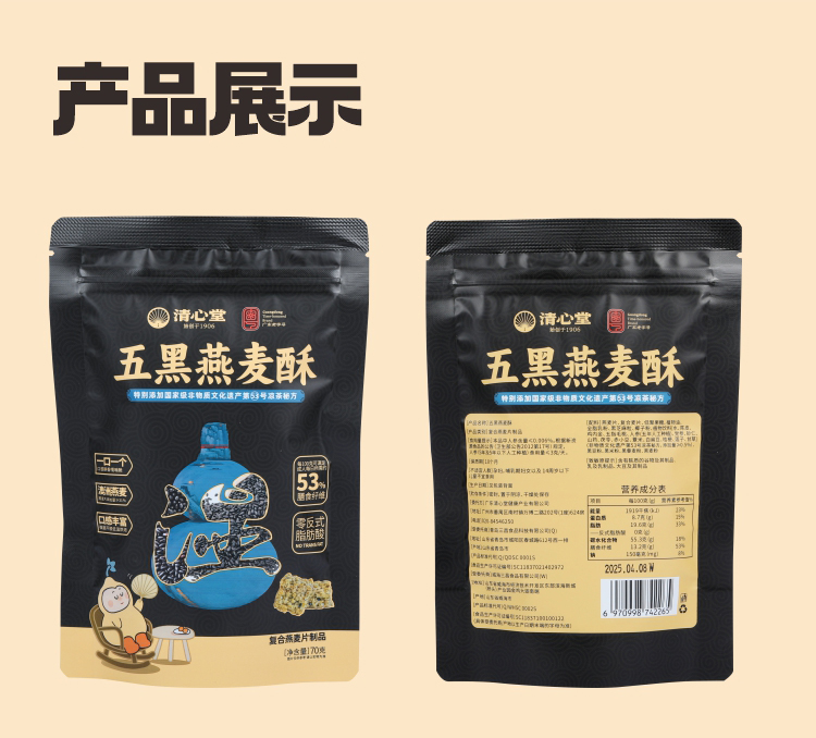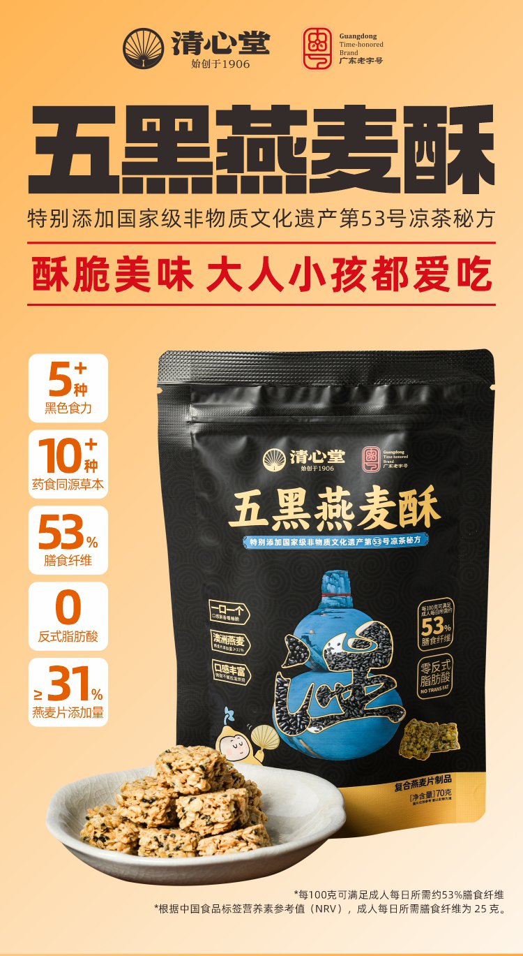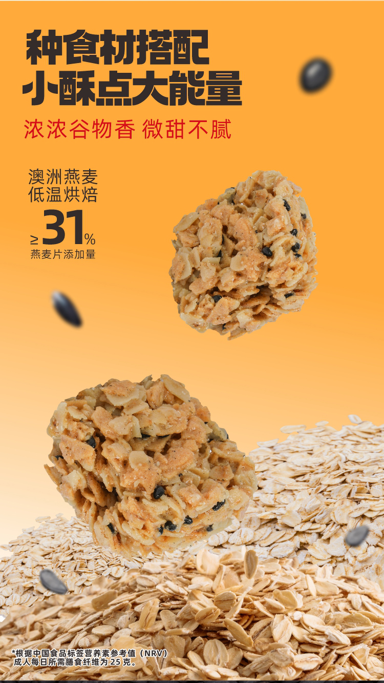 五黑燕麦酥 口口酥脆 53%膳食纤维添加非遗凉茶配方 抗饥小零食饼干 燕麦酥70g/袋