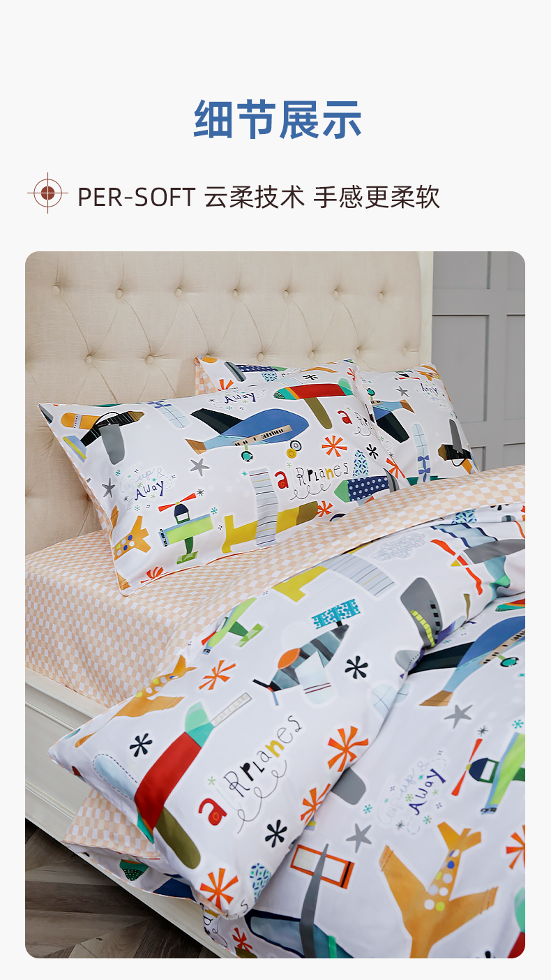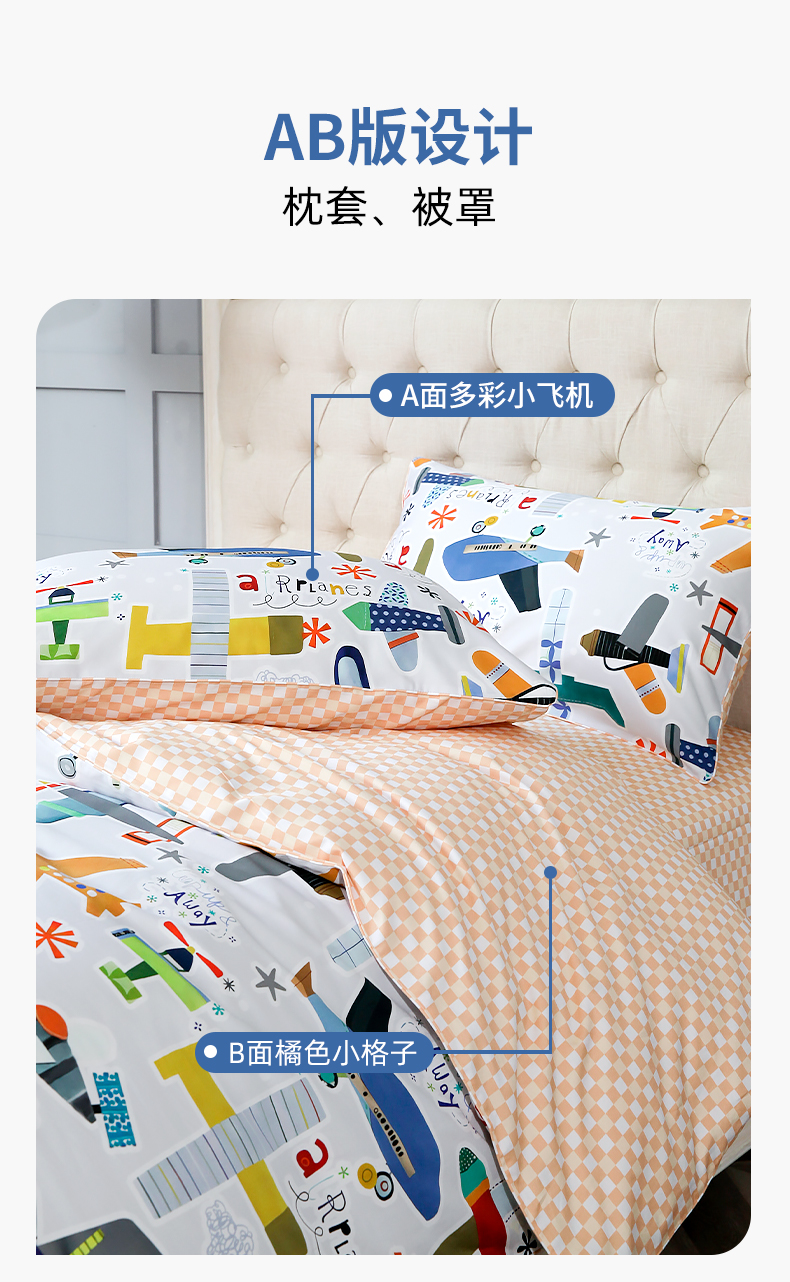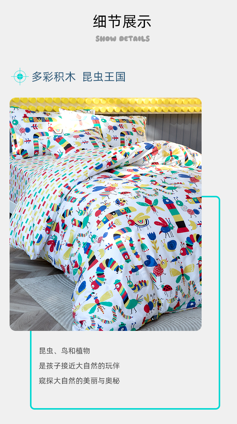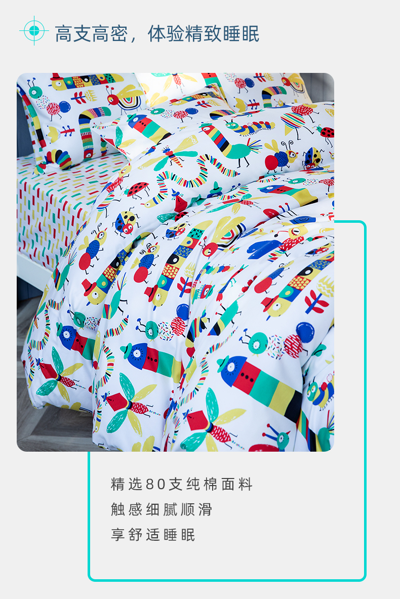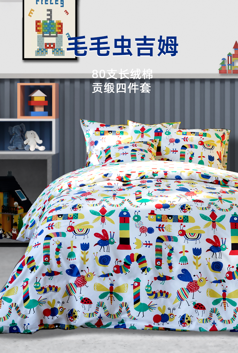 【代发】80s纯棉儿童花色款 蓝铂四件套春夏款儿童全棉床上用品(尺寸为被罩尺寸)