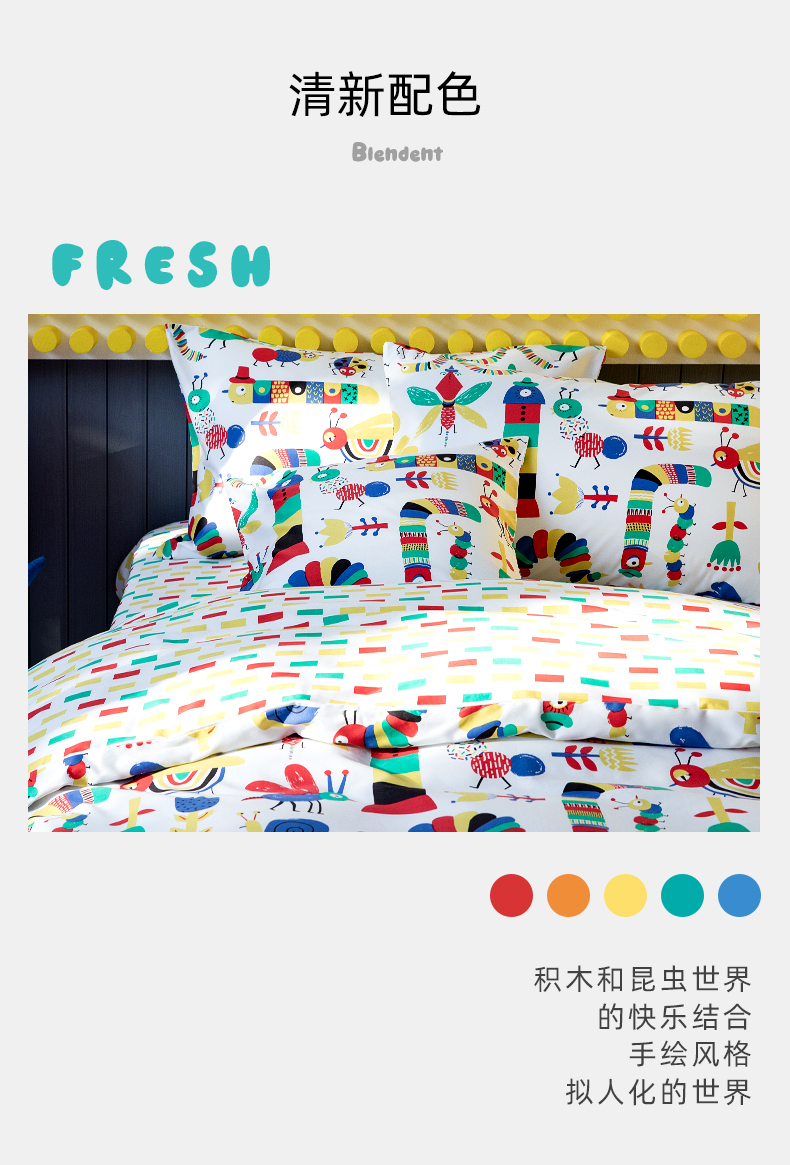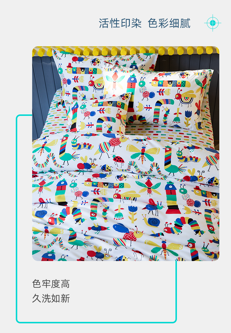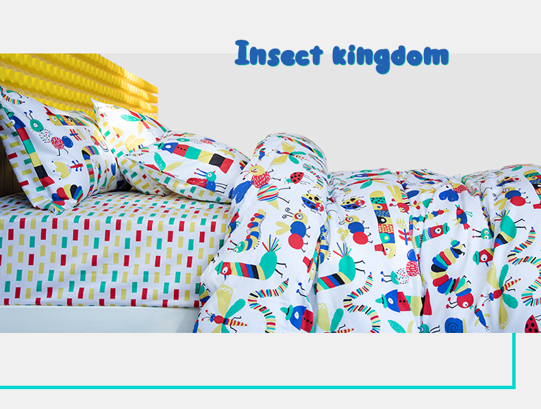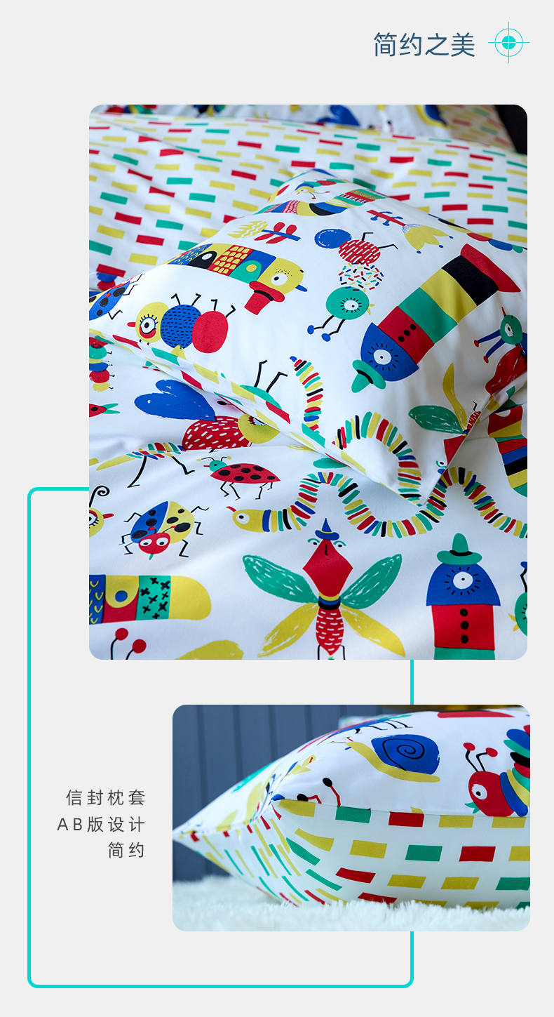 【代发】80s纯棉儿童花色款 蓝铂四件套春夏款儿童全棉床上用品(尺寸为被罩尺寸)
