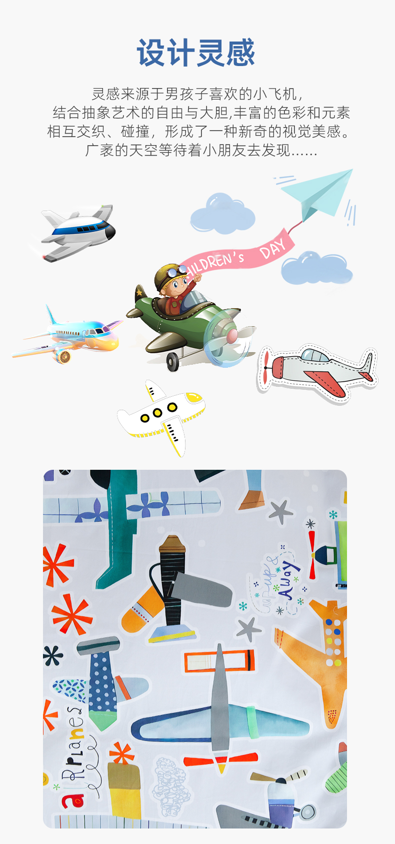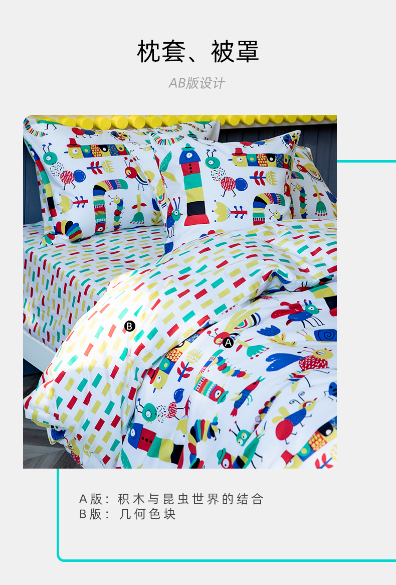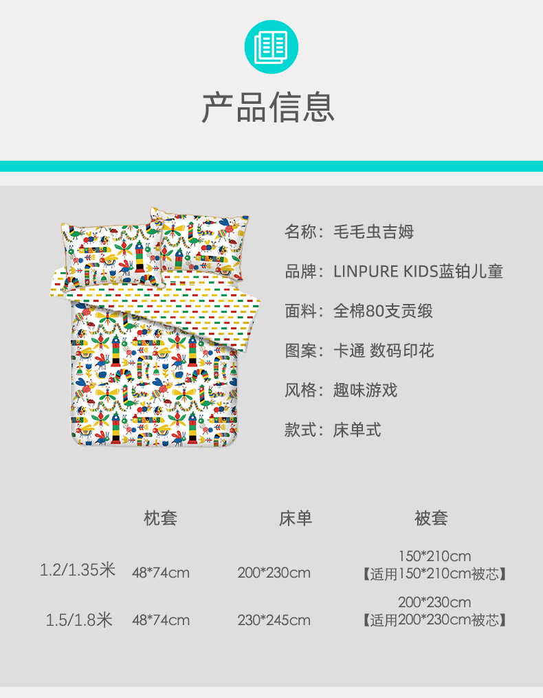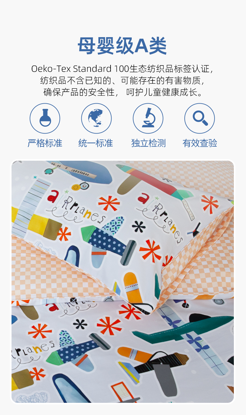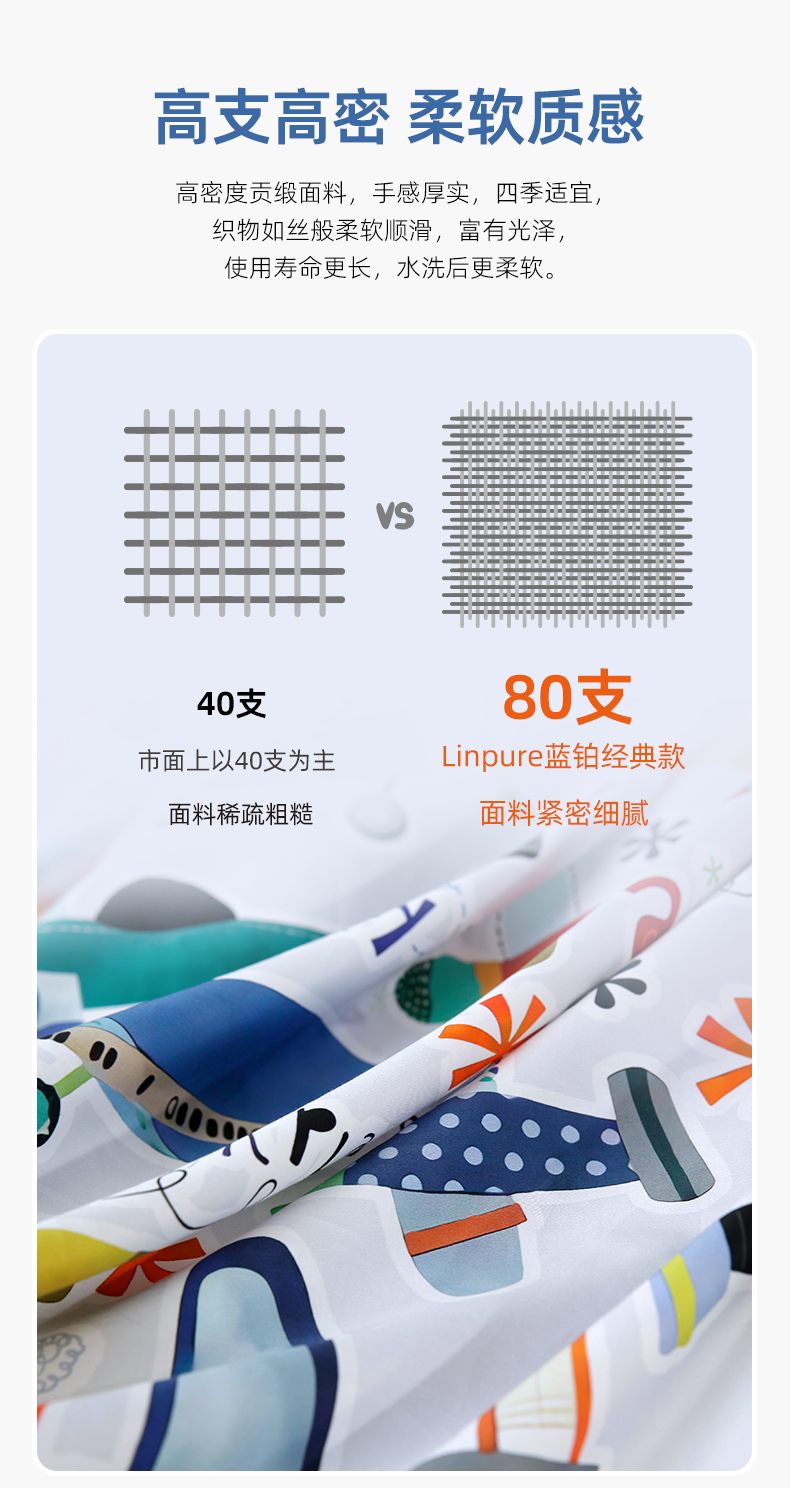 【代发】80s纯棉儿童花色款 蓝铂四件套春夏款儿童全棉床上用品(尺寸为被罩尺寸)