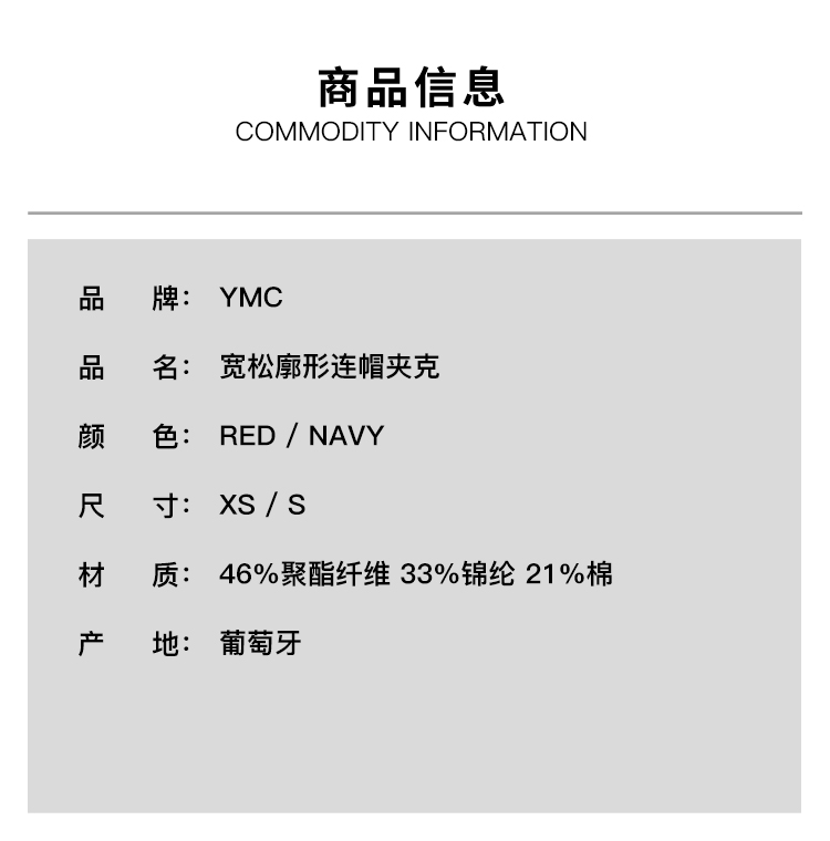 YMC BONEHEAD JACKET 意大利面料女装宽松廓形连帽夹克外套