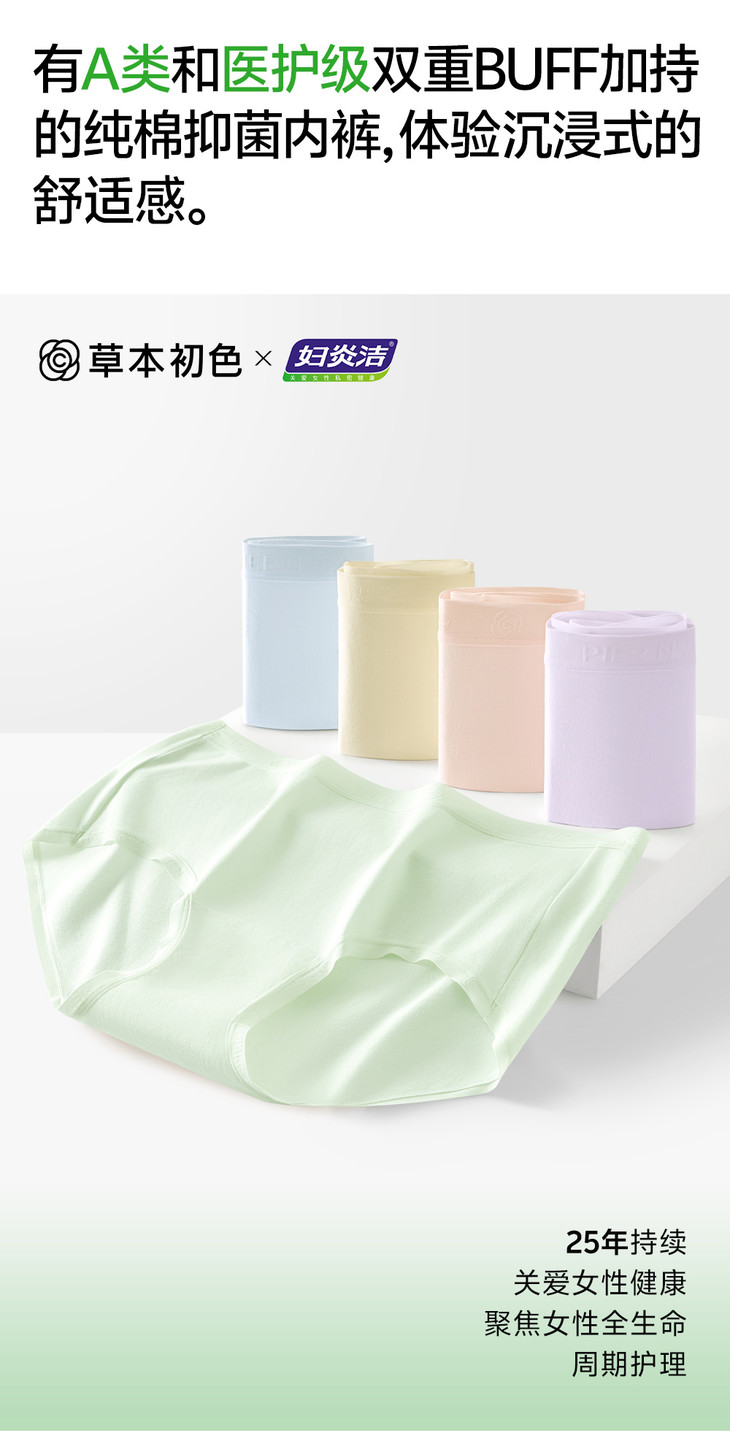 😍【草本初色&妇炎洁联名纯棉聚乳酸内裤F301 】 ✅上身无敌裸感舒适就像第二层肌肤一样,服帖包裹着臀部 太好穿了 !!!!