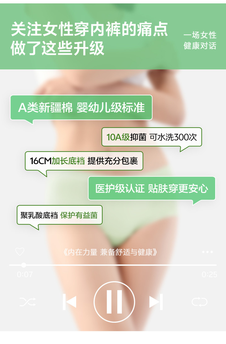 10A底档+聚乳酸设计 多重防护 专为女性贴心设计 穿穿更健康✅ 16cm加长档, 聚乳酸底裆 亲肤透气