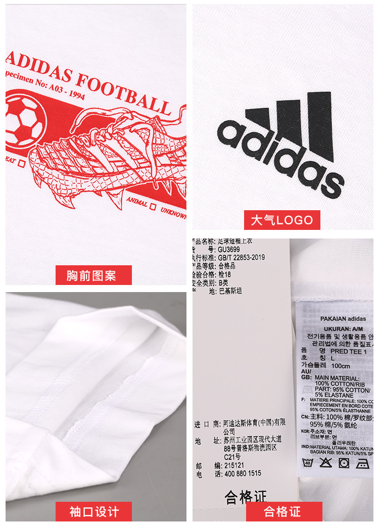 ADIDAS/阿迪达斯足球运动休闲短袖文化T恤男GU3699