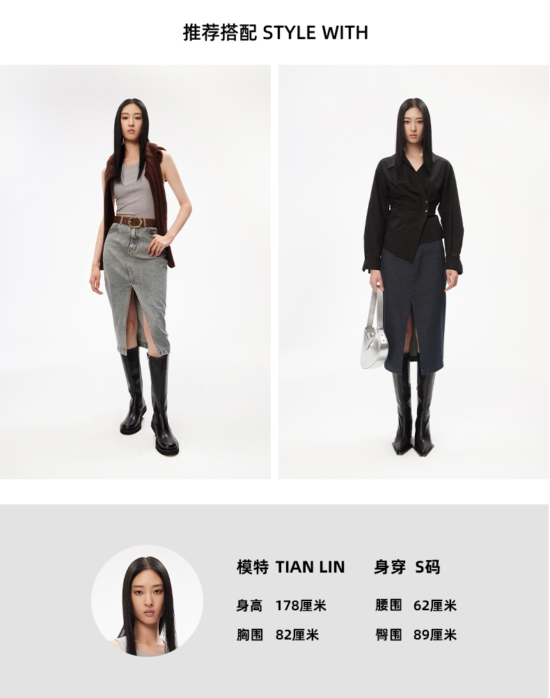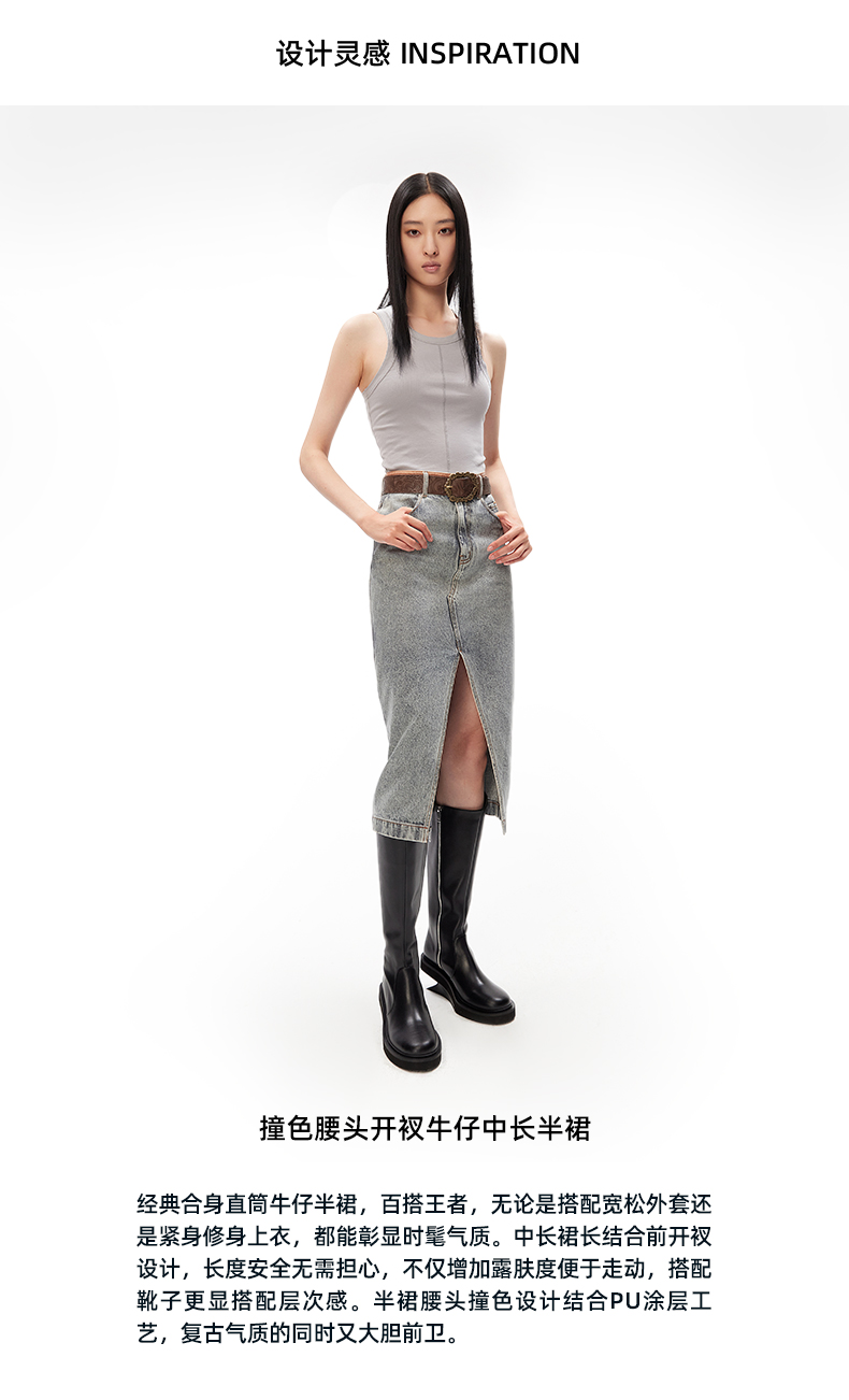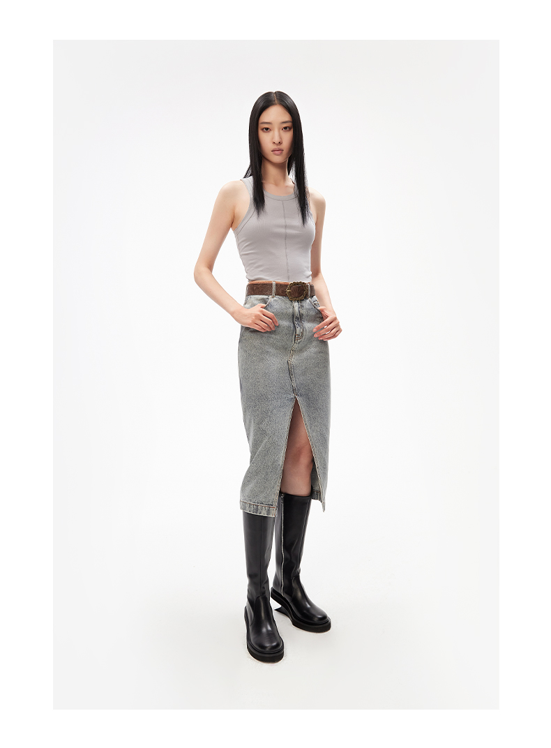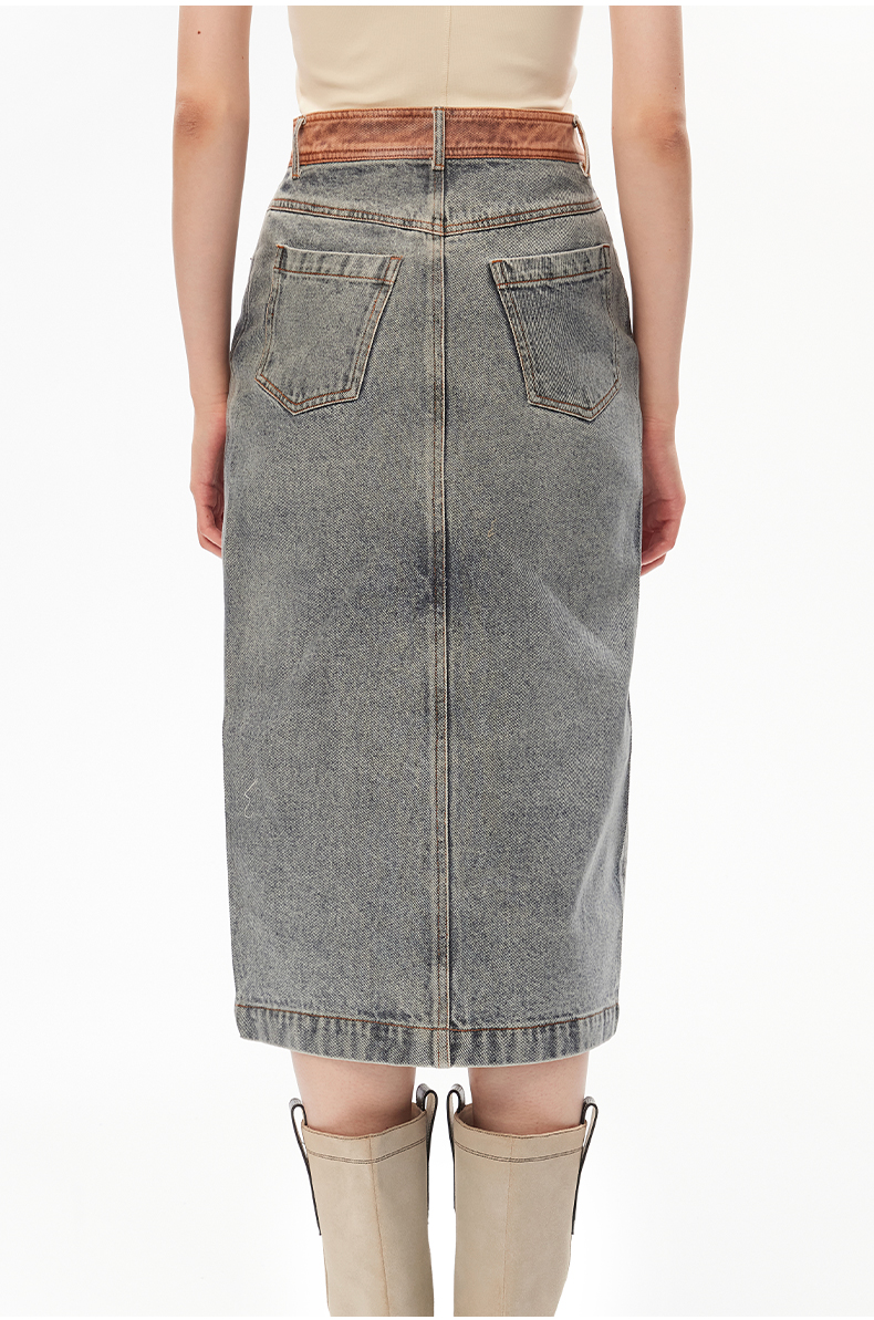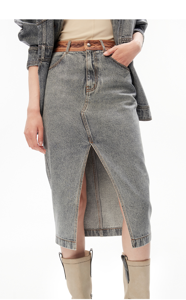 lost in echo设计师品牌小众撞色复古潮流开衩牛仔裙中长半身裙