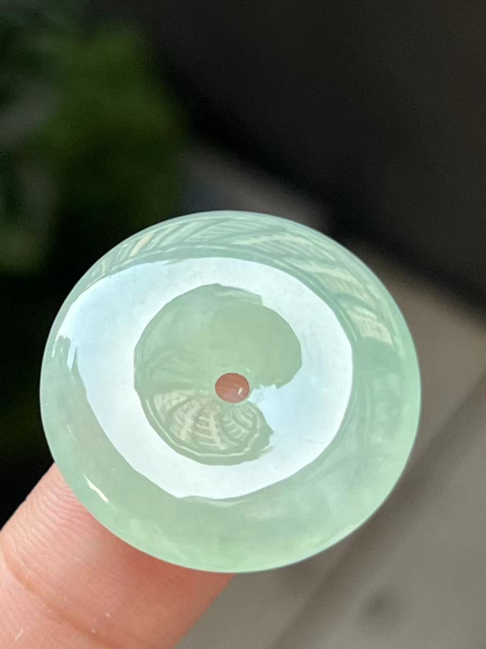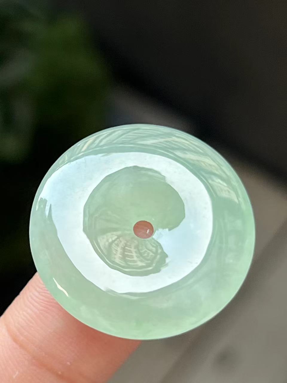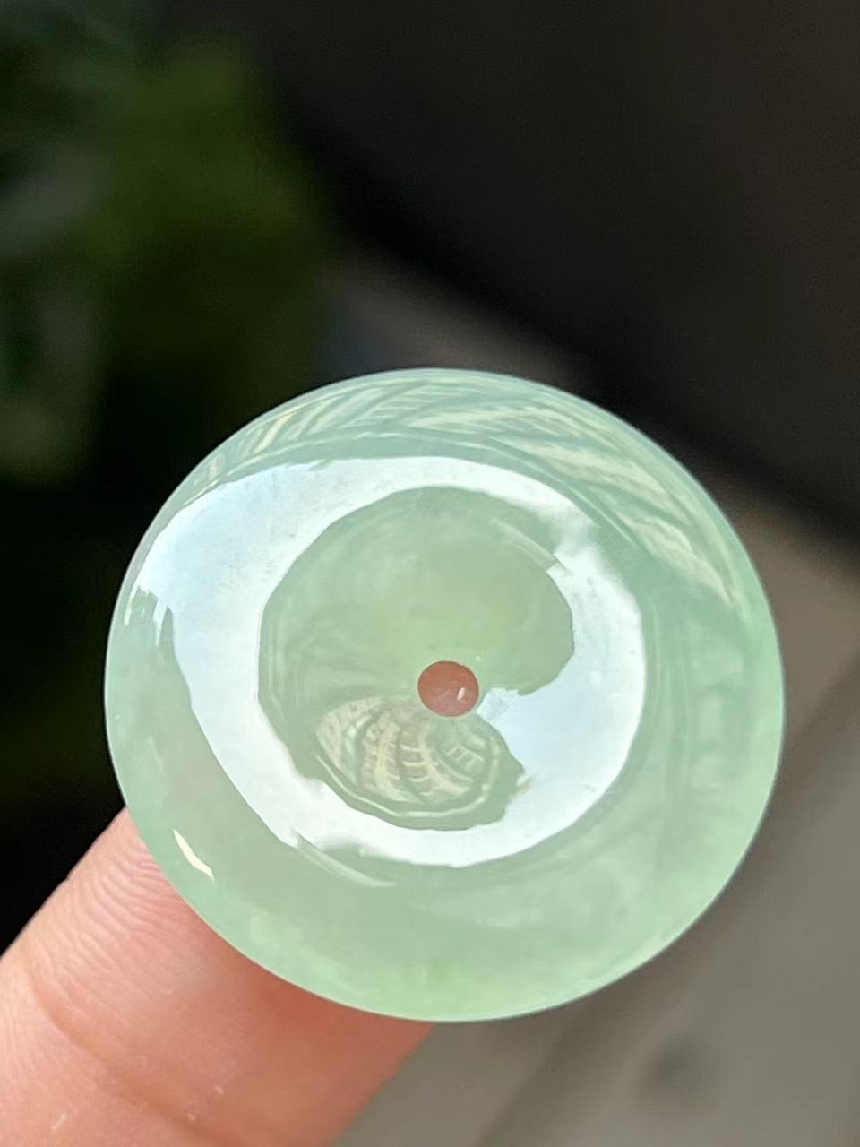 尺寸:26.4*5.7mm左右(手工测量有轻微区别属于正常情况哦)当冰种翡翠邂逅清新甜绿,一场关于美的奇迹就此诞生。这枚平安扣,色泽宛如春日枝头新抽的嫩芽,盈盈绿意透着灵动鲜活,冰种质地如澄澈湖水,清透中泛着柔和莹光,光线流转间,似有细碎星光在玉石表面跃动。圆润饱满的形制,触手温润细腻,将东方美学的含蓄与优雅诠释得淋漓尽致。“扣心怀德,平安顺遂”,佩戴于身,不仅是一件精美饰品,更是一份对平安与美好的期许,无论是赠予挚爱,还是珍藏自赏,皆为上佳之选。