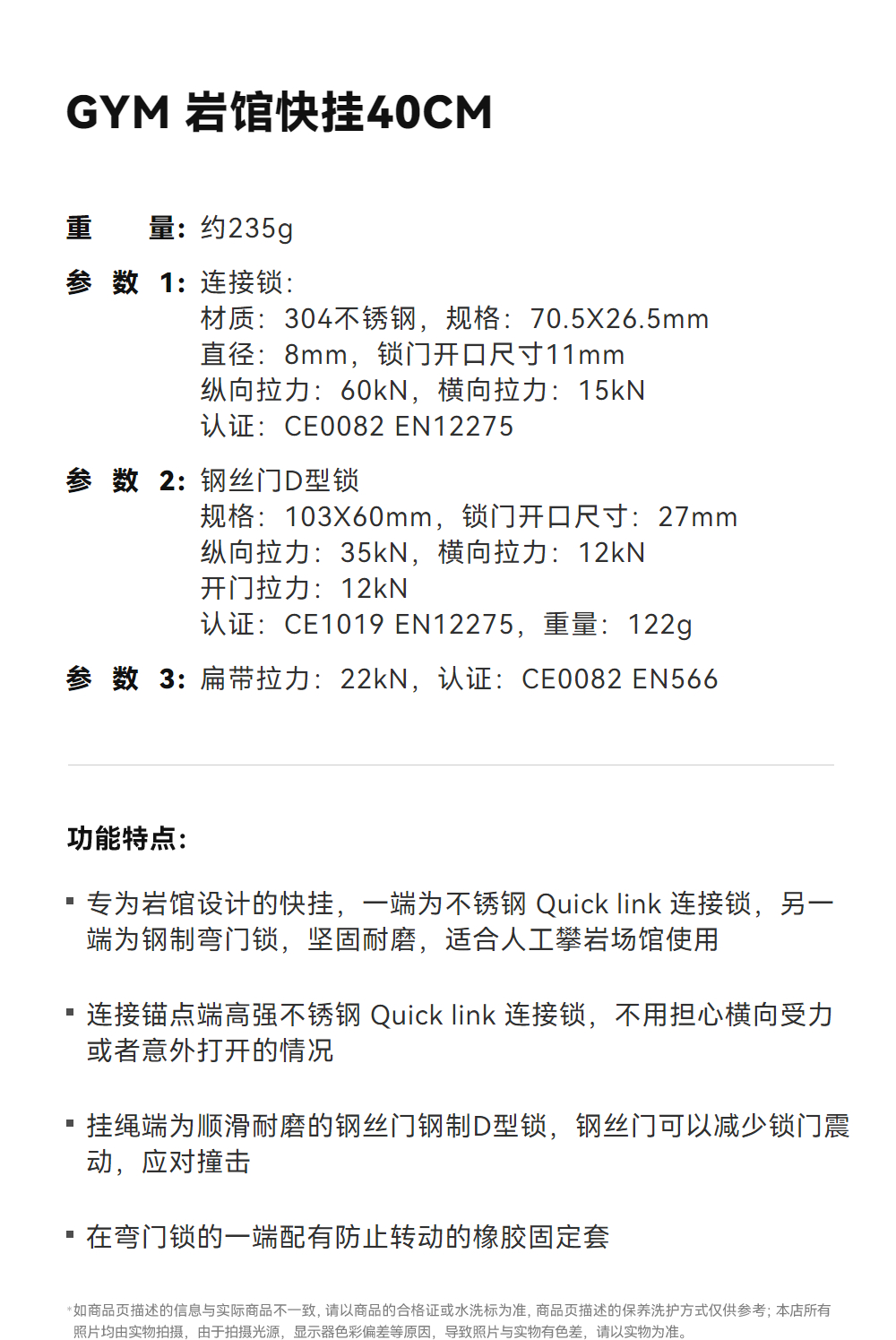 KAILAS凯乐石 户外运动 GYM 岩馆快挂40CM EC405C【Z】