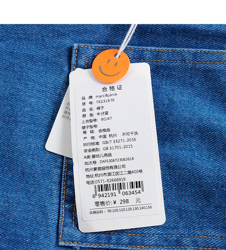 马克珍妮秋装新款 男童全棉拼接牛仔萝卜裤 儿童裤子231679