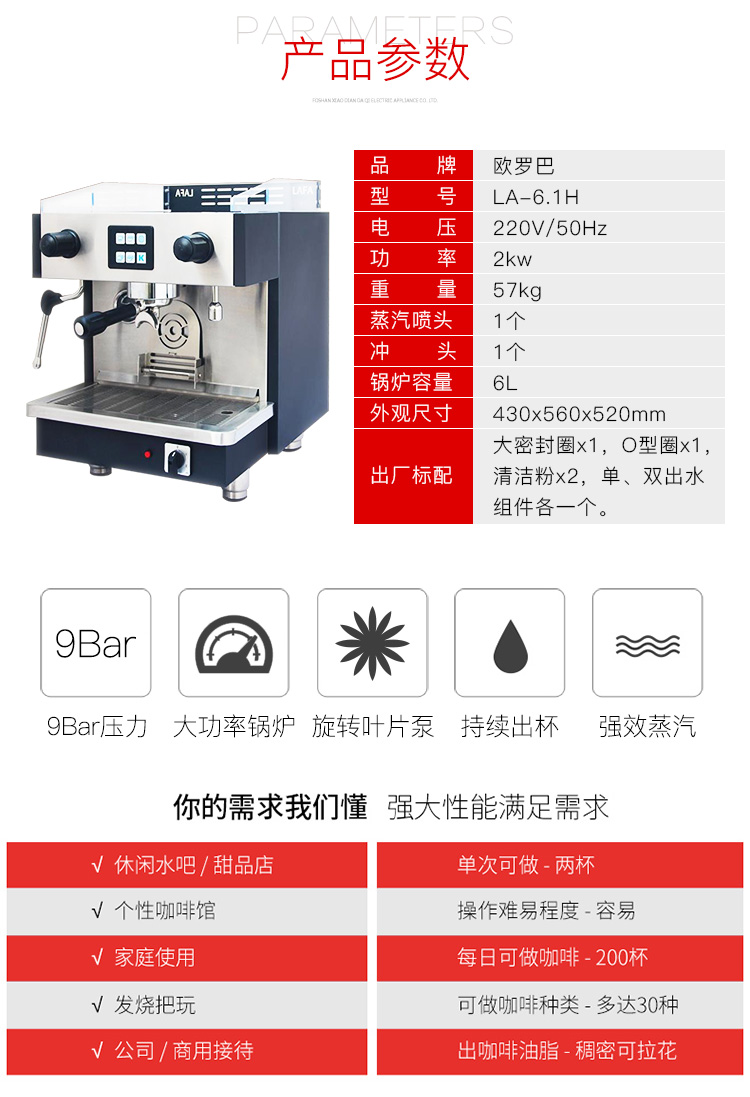 单头咖啡机 意式半自动咖啡机 旋转泵双锅炉家用商用 全套包邮