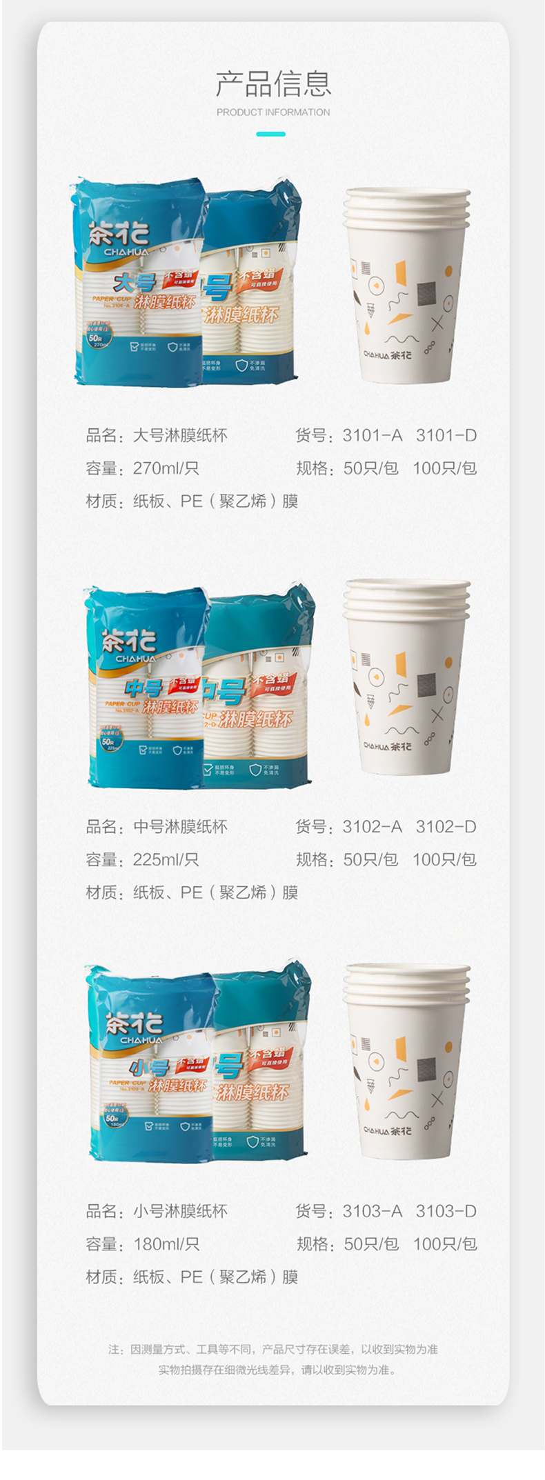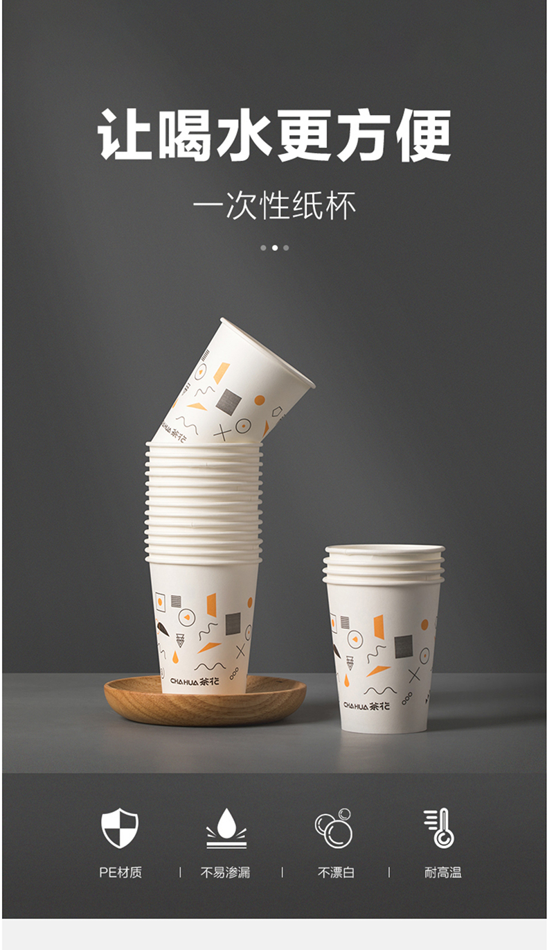 茶花 食品级一次性PE淋膜纸杯50只/包*2包(100只) 果汁豆浆杯180ML 3103-A