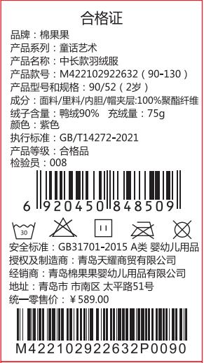 | 充绒量(G) | 67 | 75 | 84 | 92 | 102 | 112 |