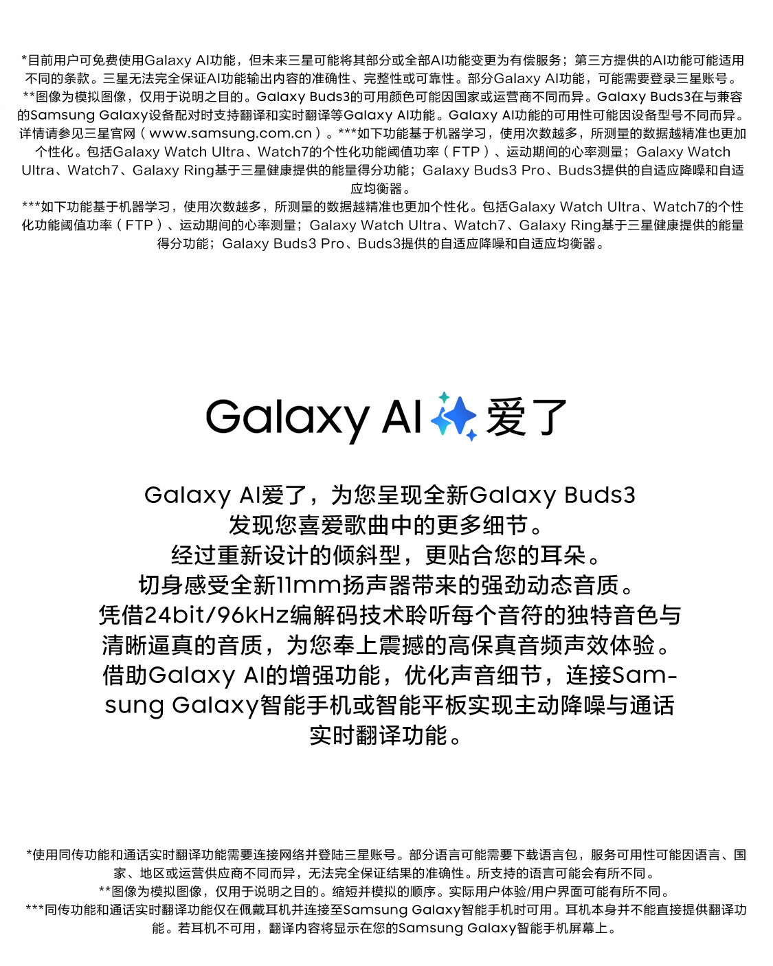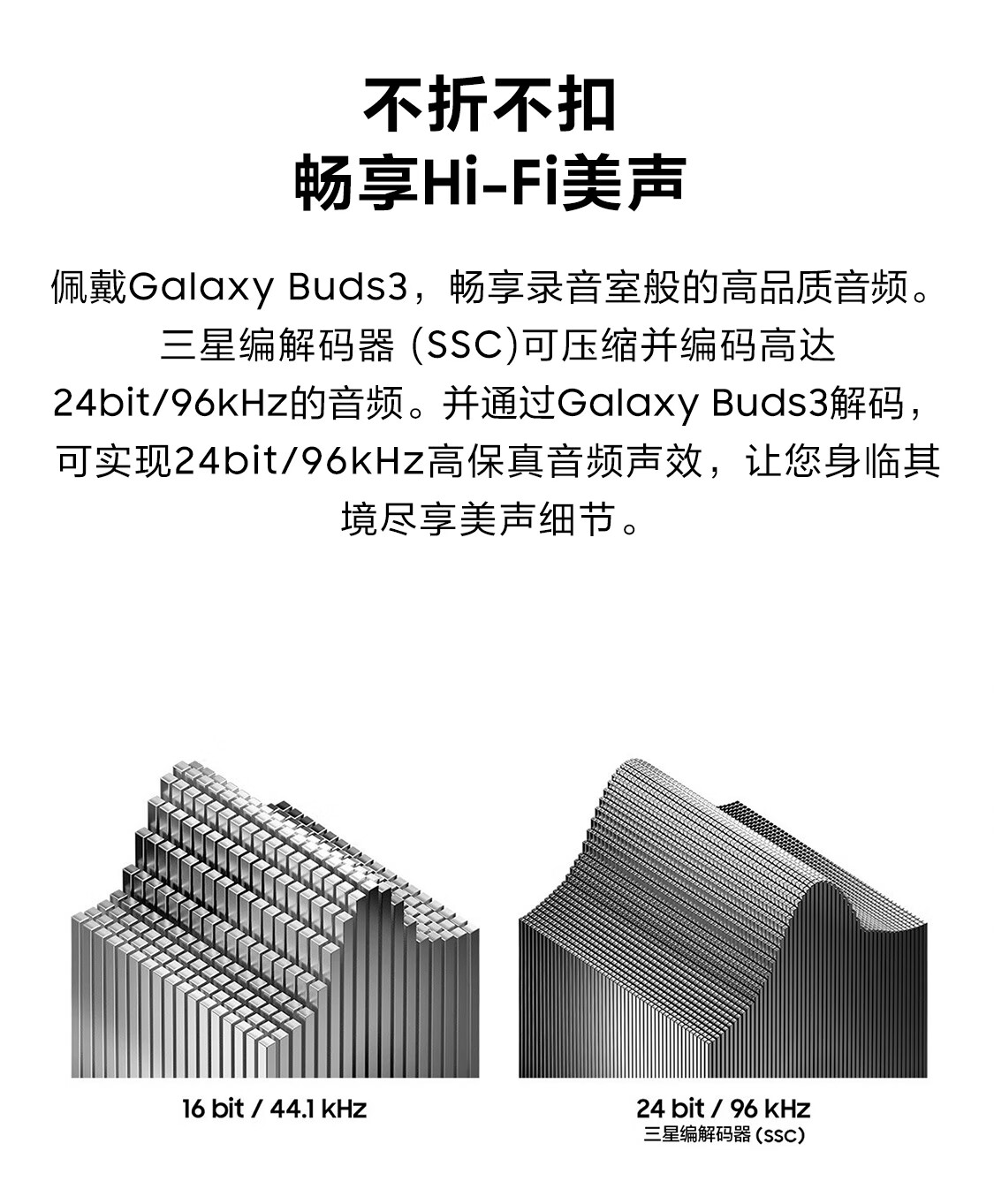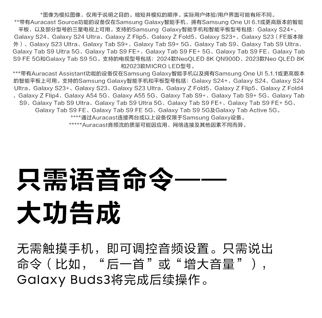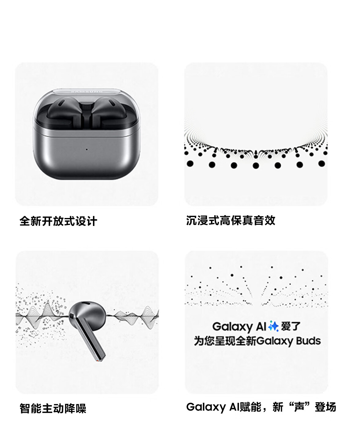 三星 Samsung Buds3智能降噪无线耳机/蓝牙耳机半入耳式佩戴舒适/主动降噪ANC/24bit高保真音质