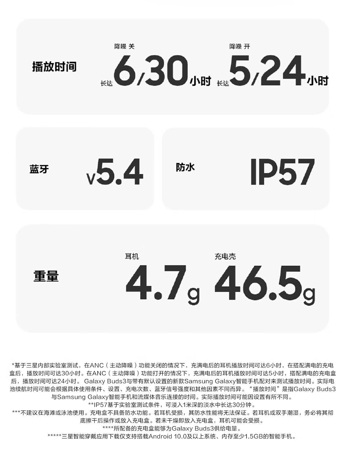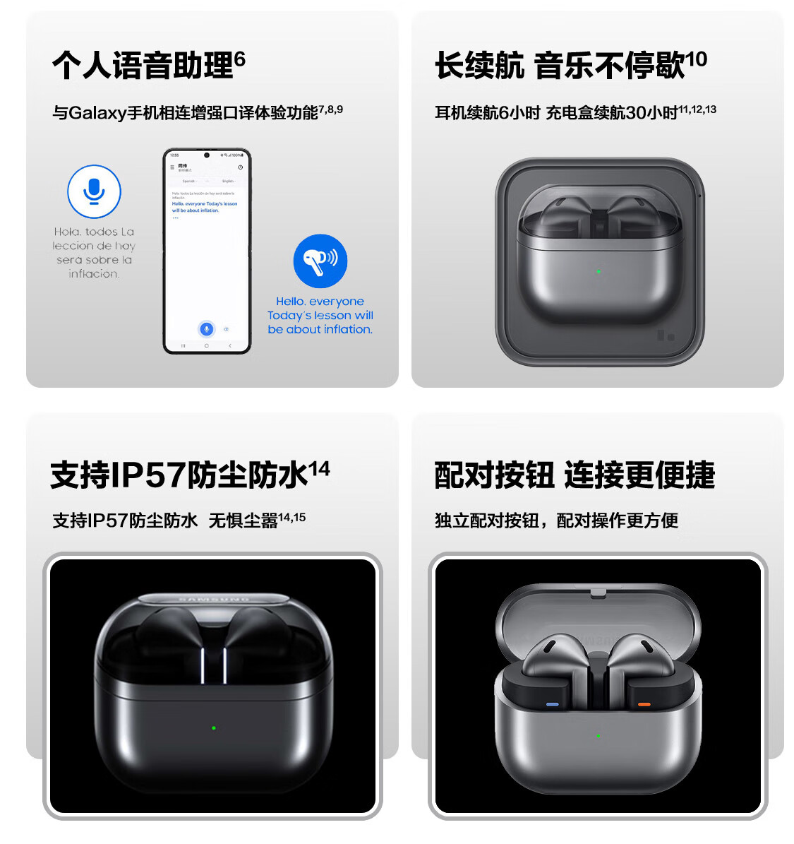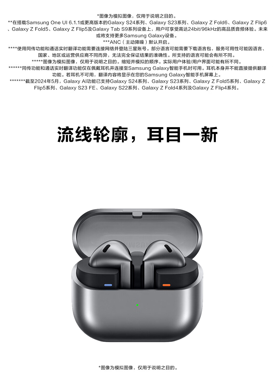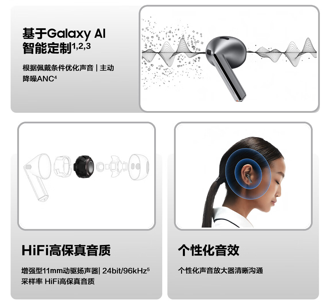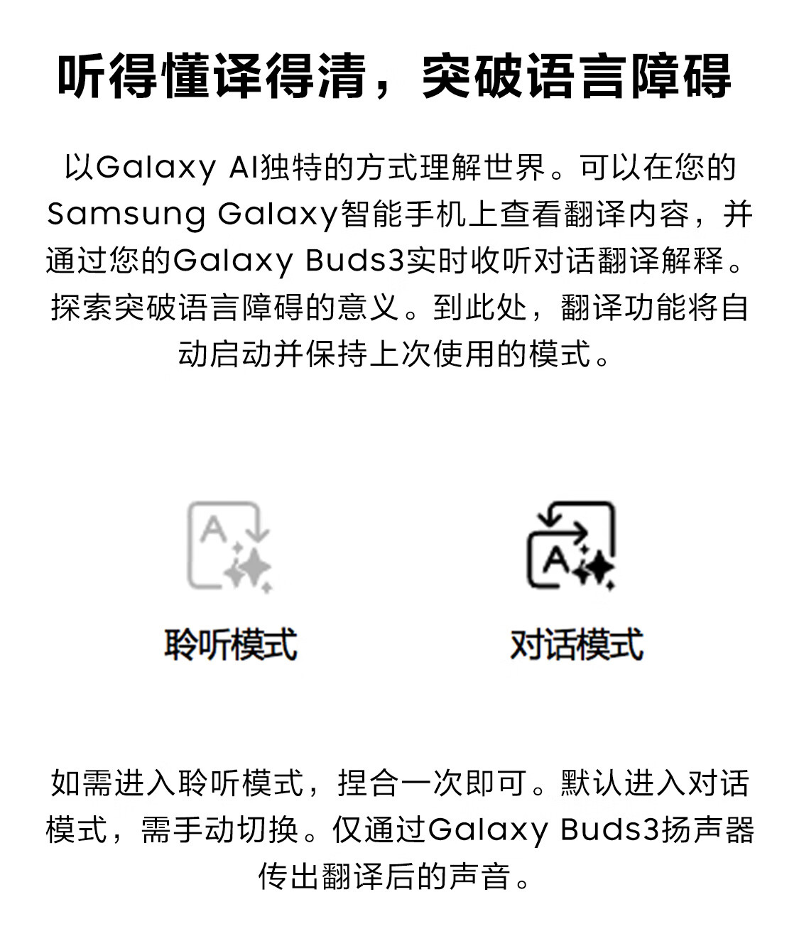 三星 Samsung Buds3智能降噪无线耳机/蓝牙耳机半入耳式佩戴舒适/主动降噪ANC/24bit高保真音质