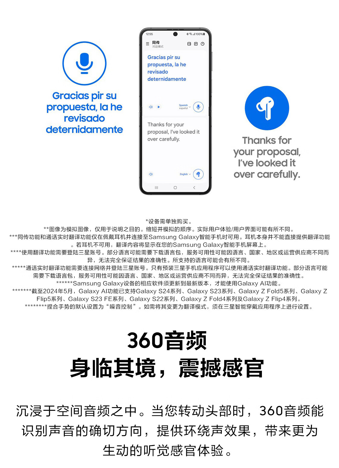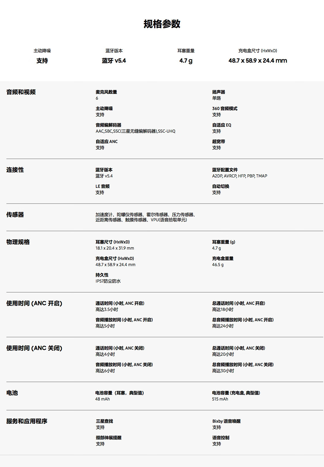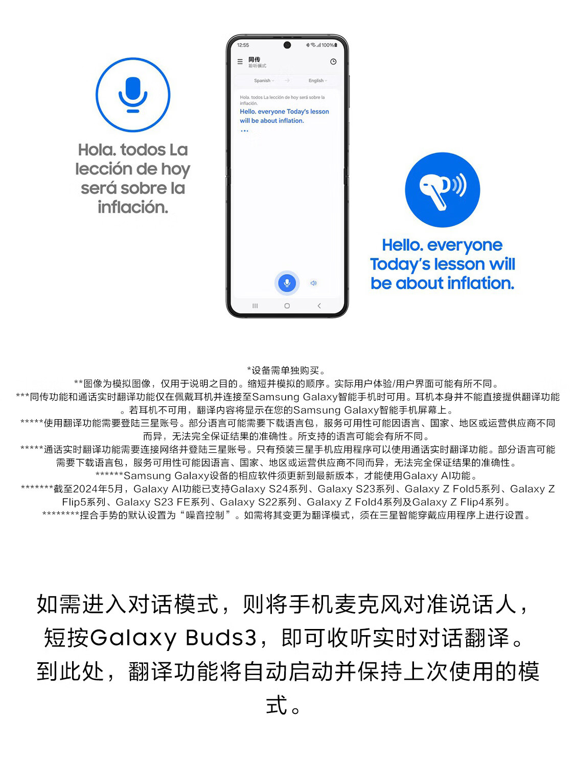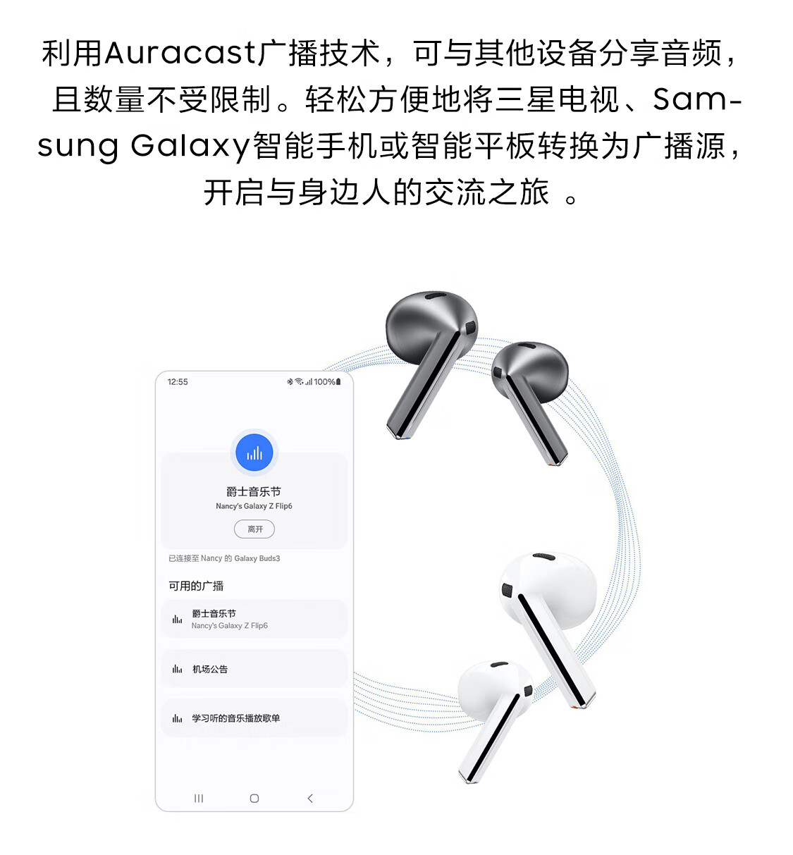 三星 Samsung Buds3智能降噪无线耳机/蓝牙耳机半入耳式佩戴舒适/主动降噪ANC/24bit高保真音质