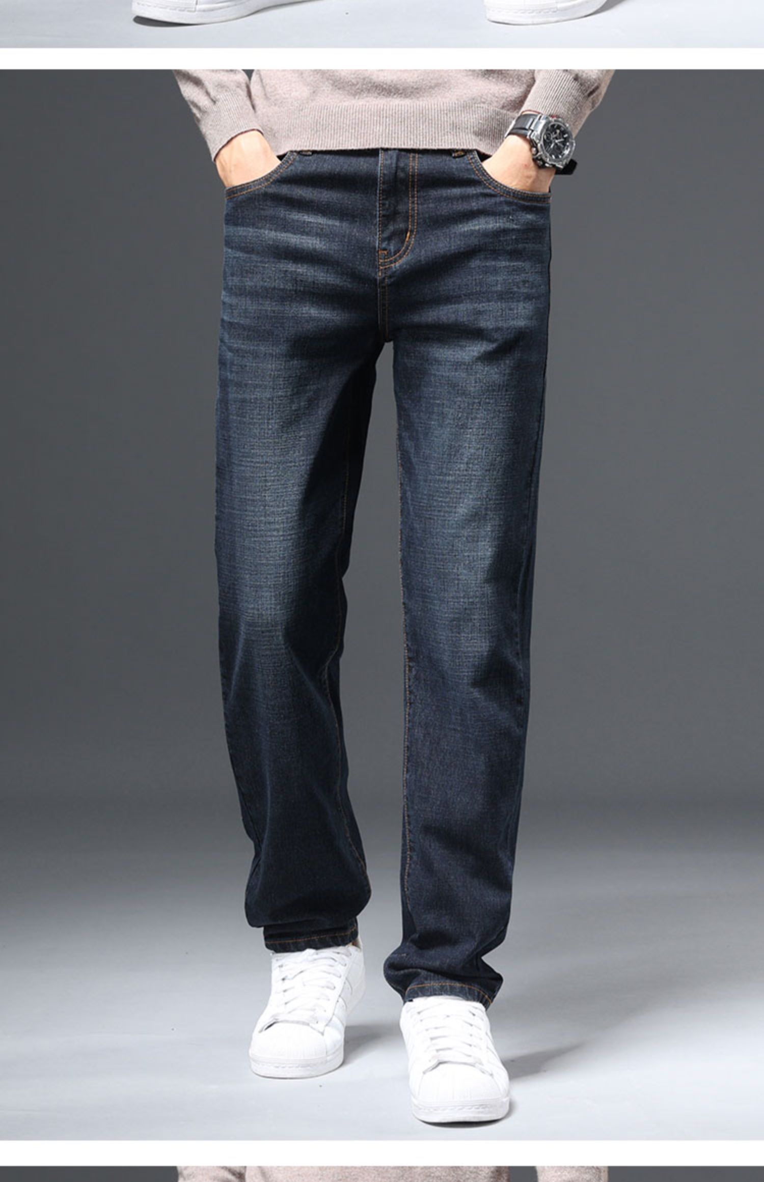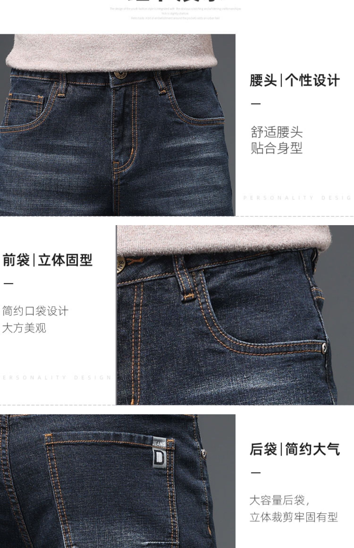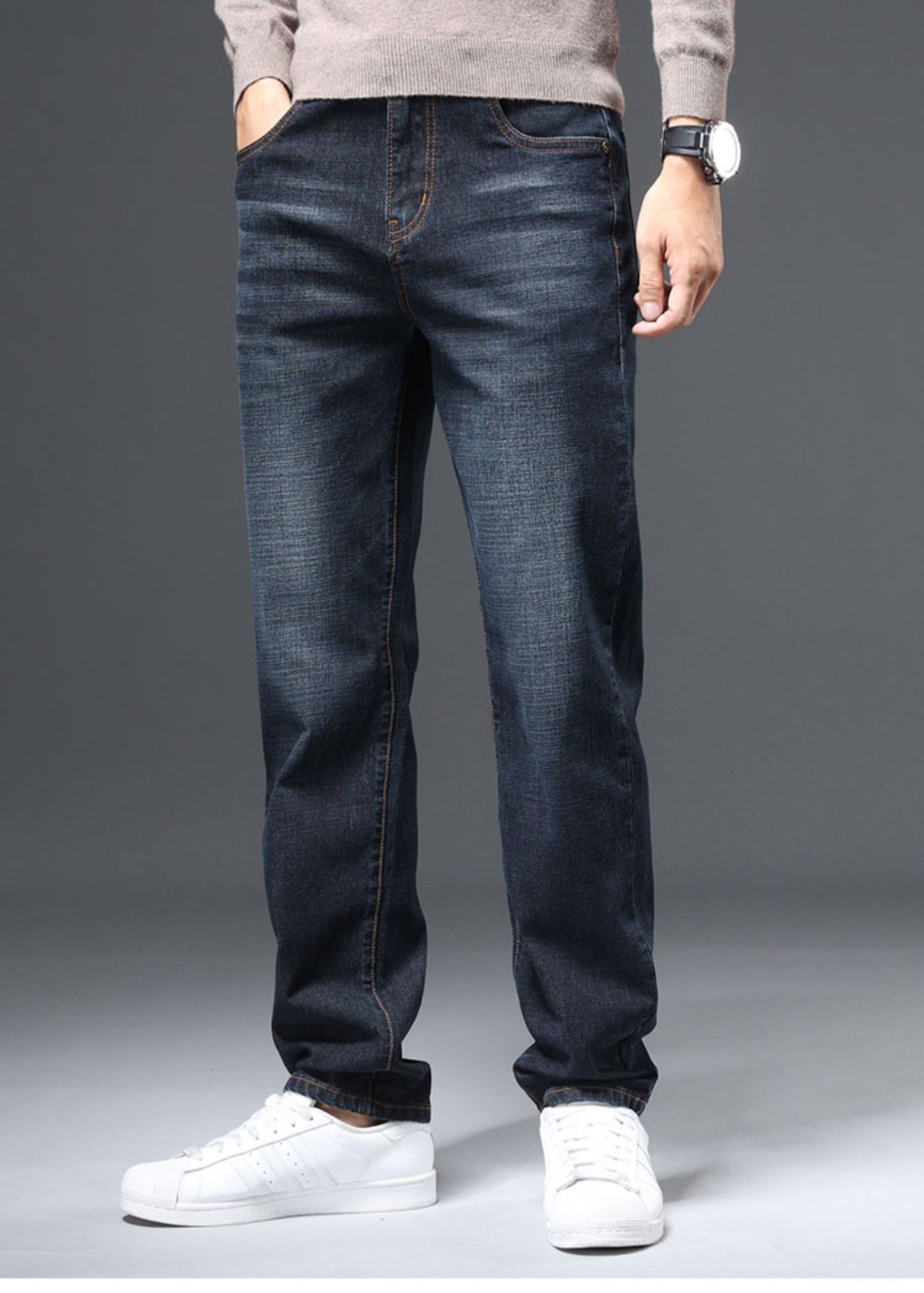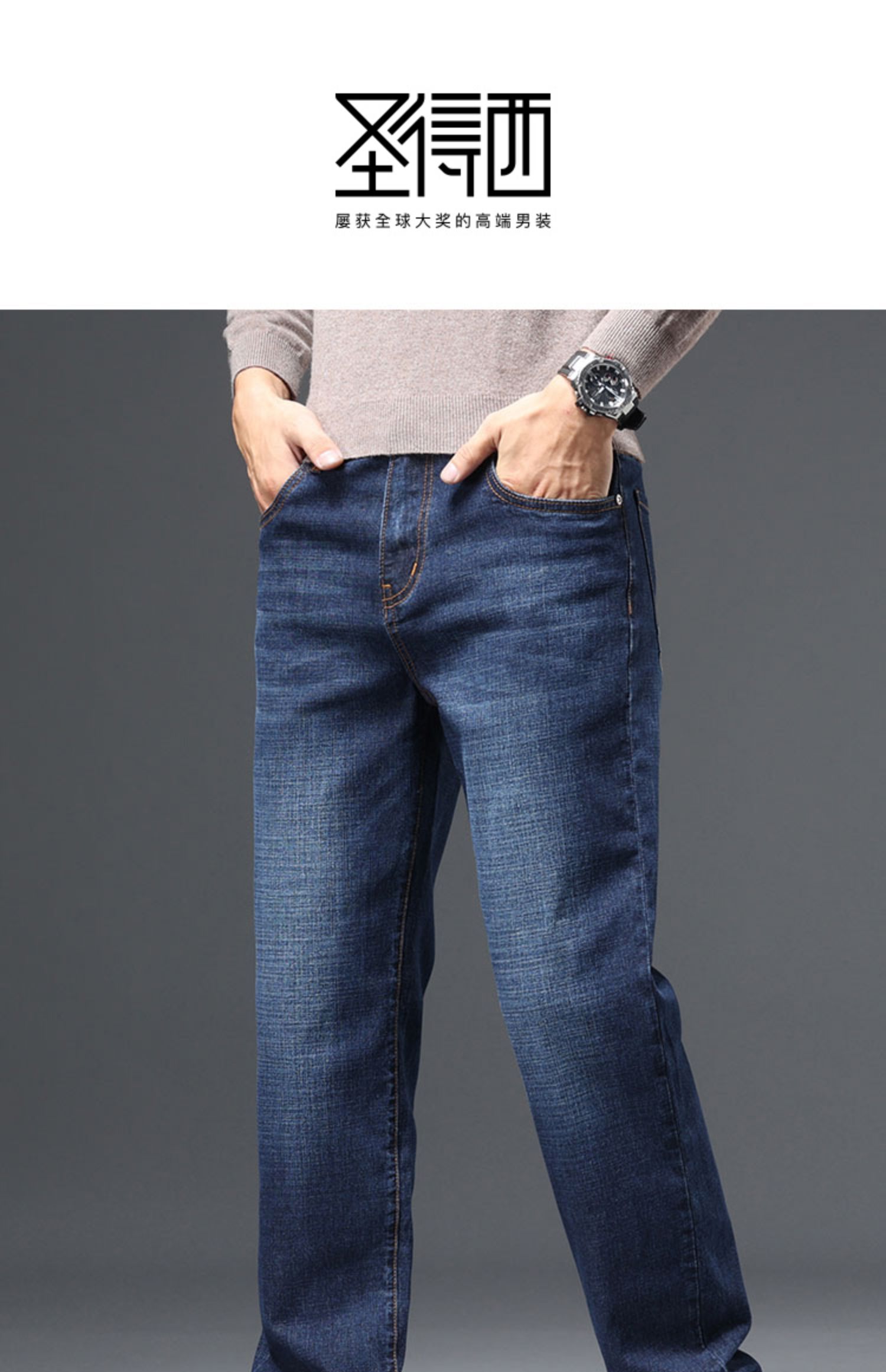 圣得西男士棉质直筒牛仔裤冬款弹力长裤潮2362915862