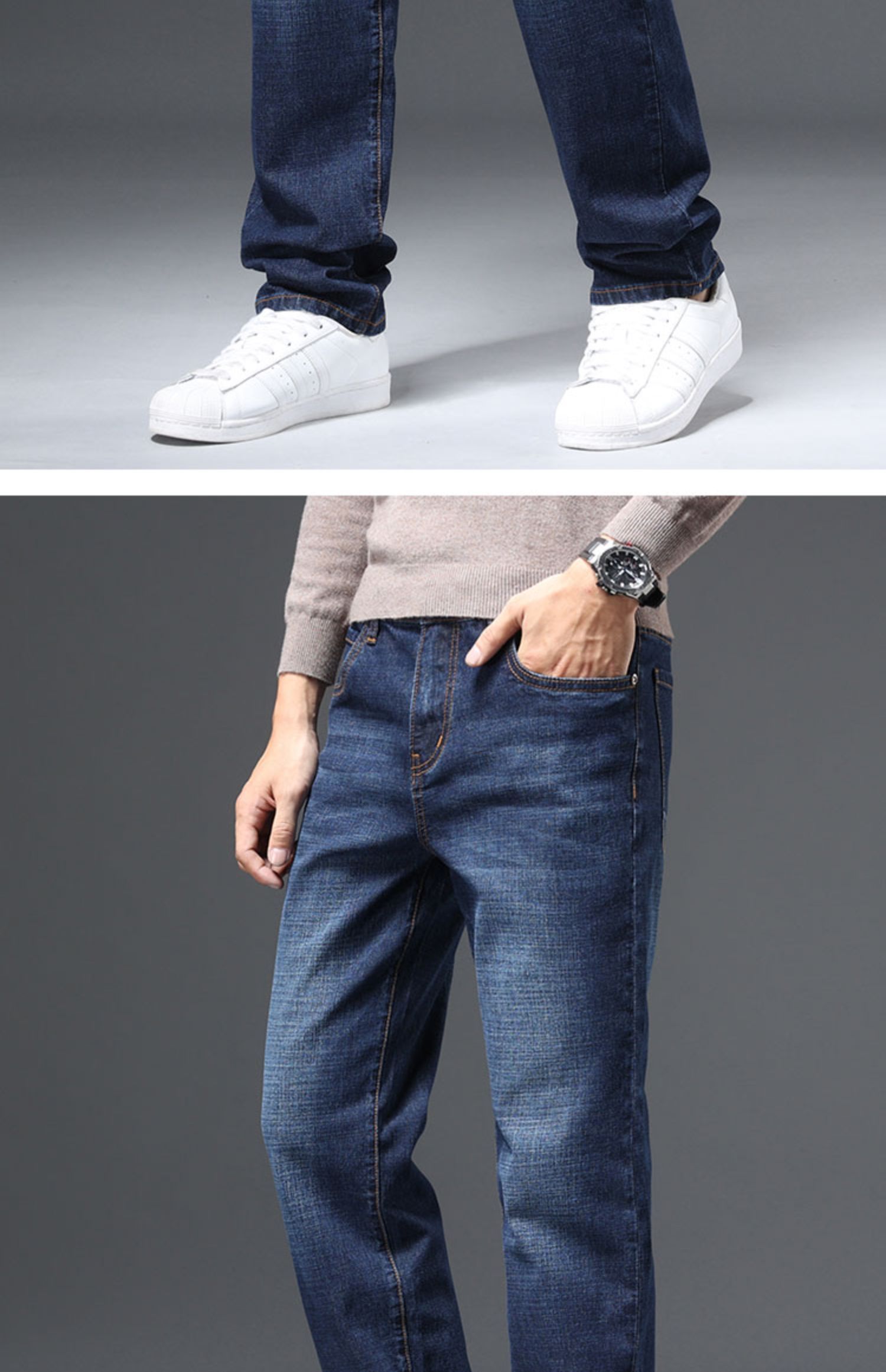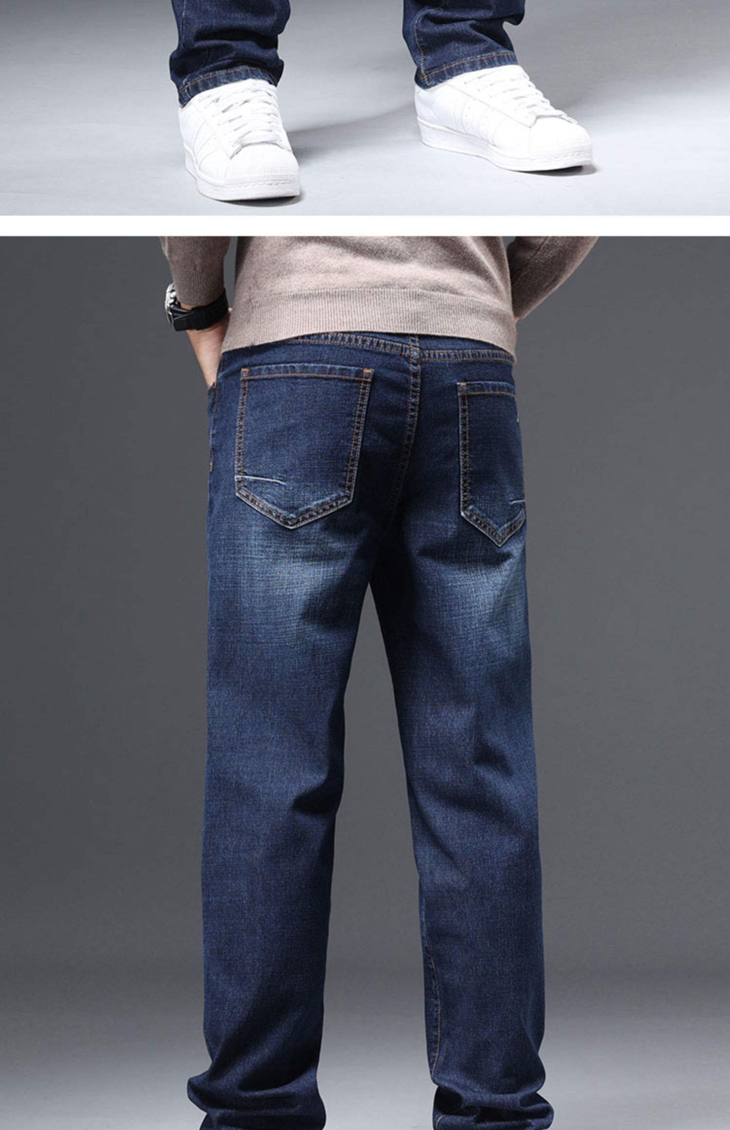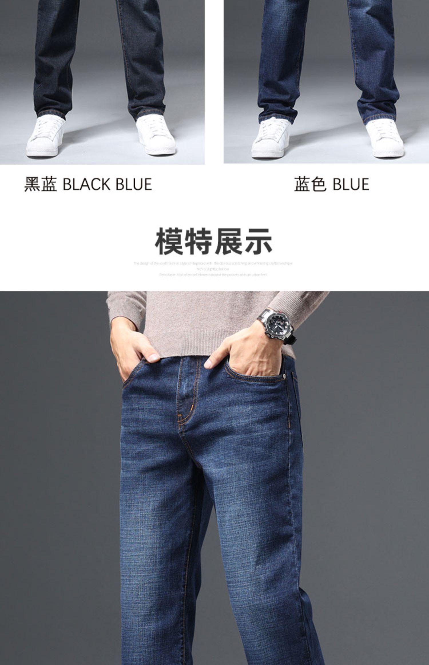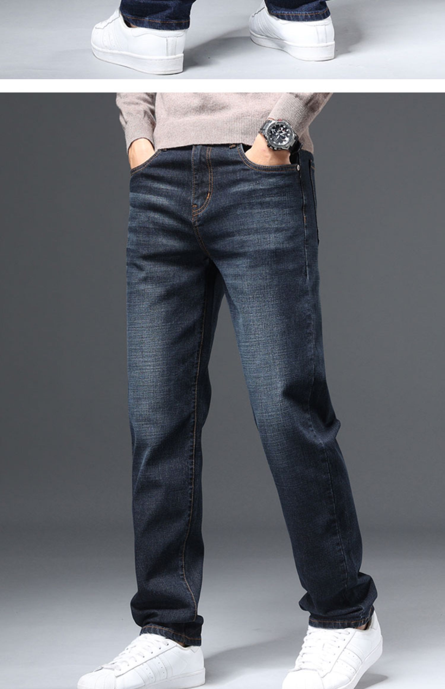 圣得西男士棉质直筒牛仔裤冬款弹力长裤潮2362915862