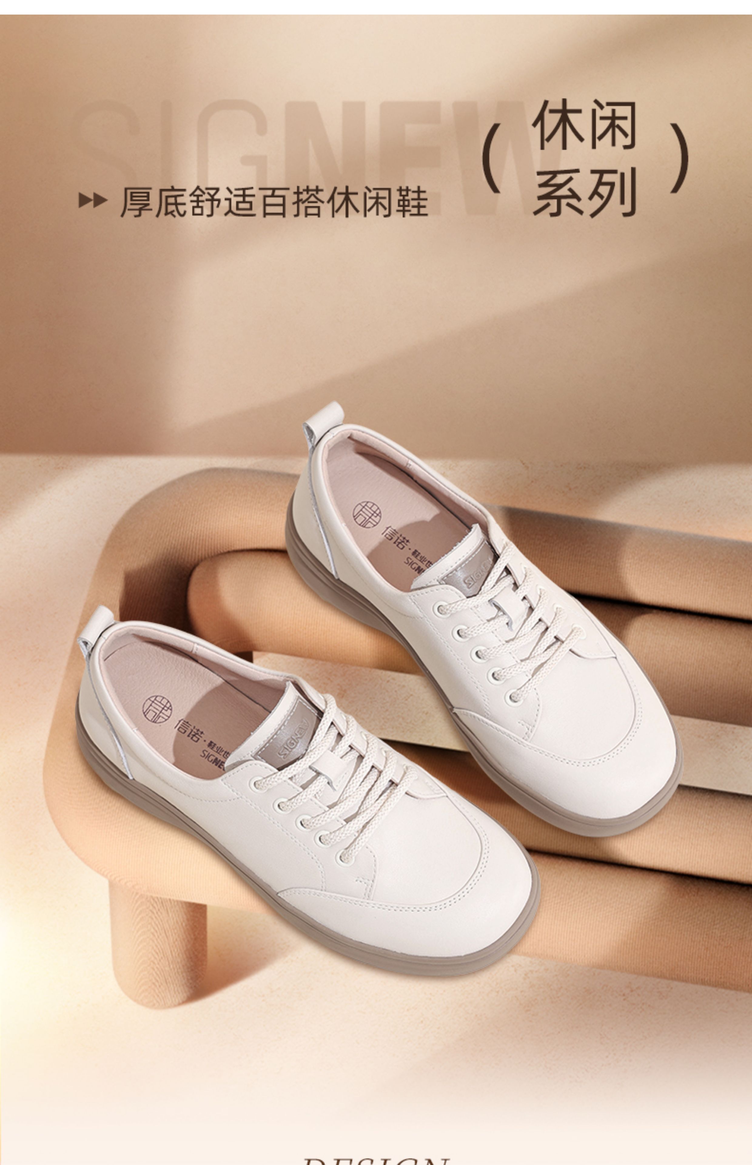 信诺真皮妈妈鞋女百搭透气运动休闲鞋软底舒适德训鞋2025夏季新款5Q3007-5