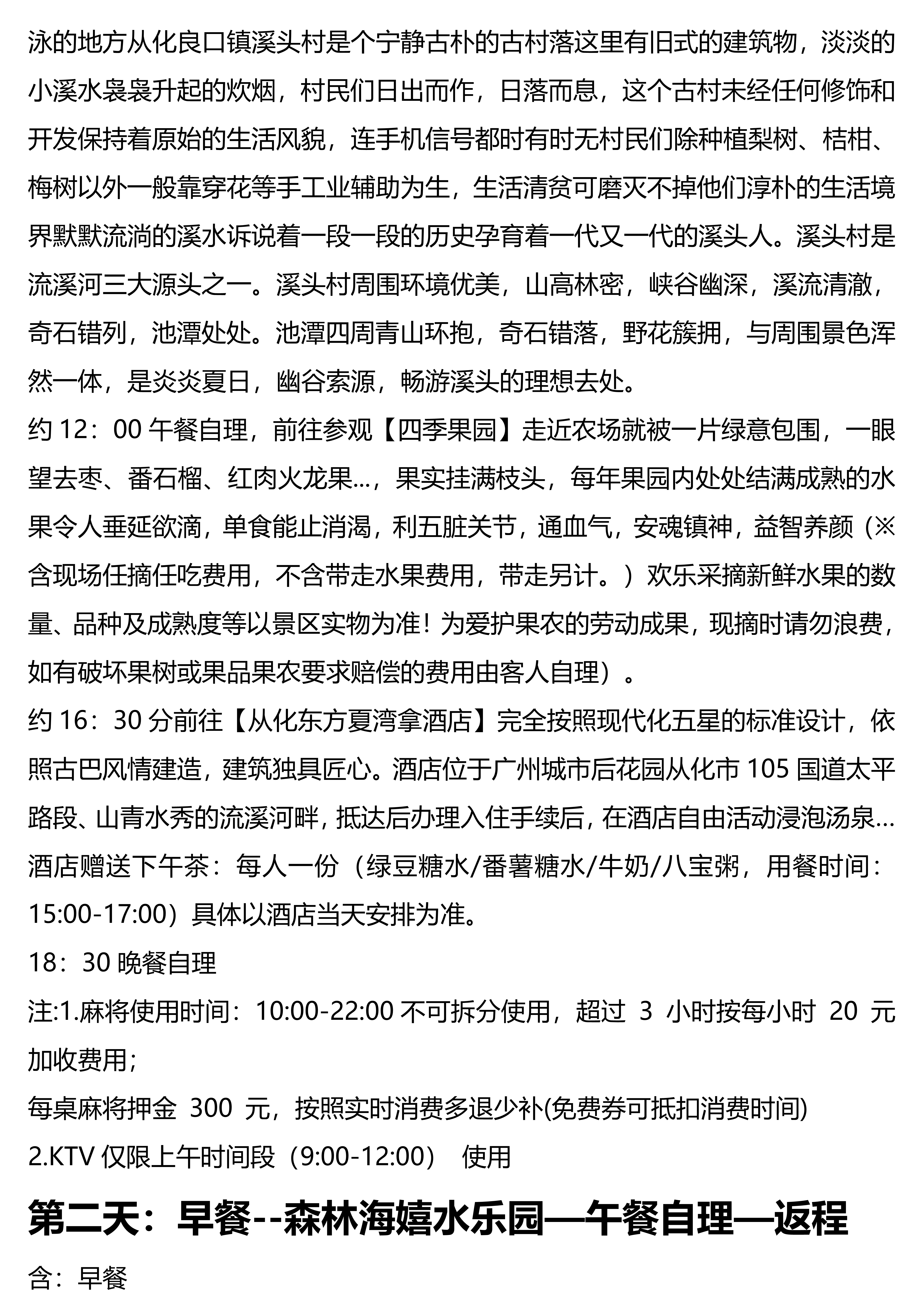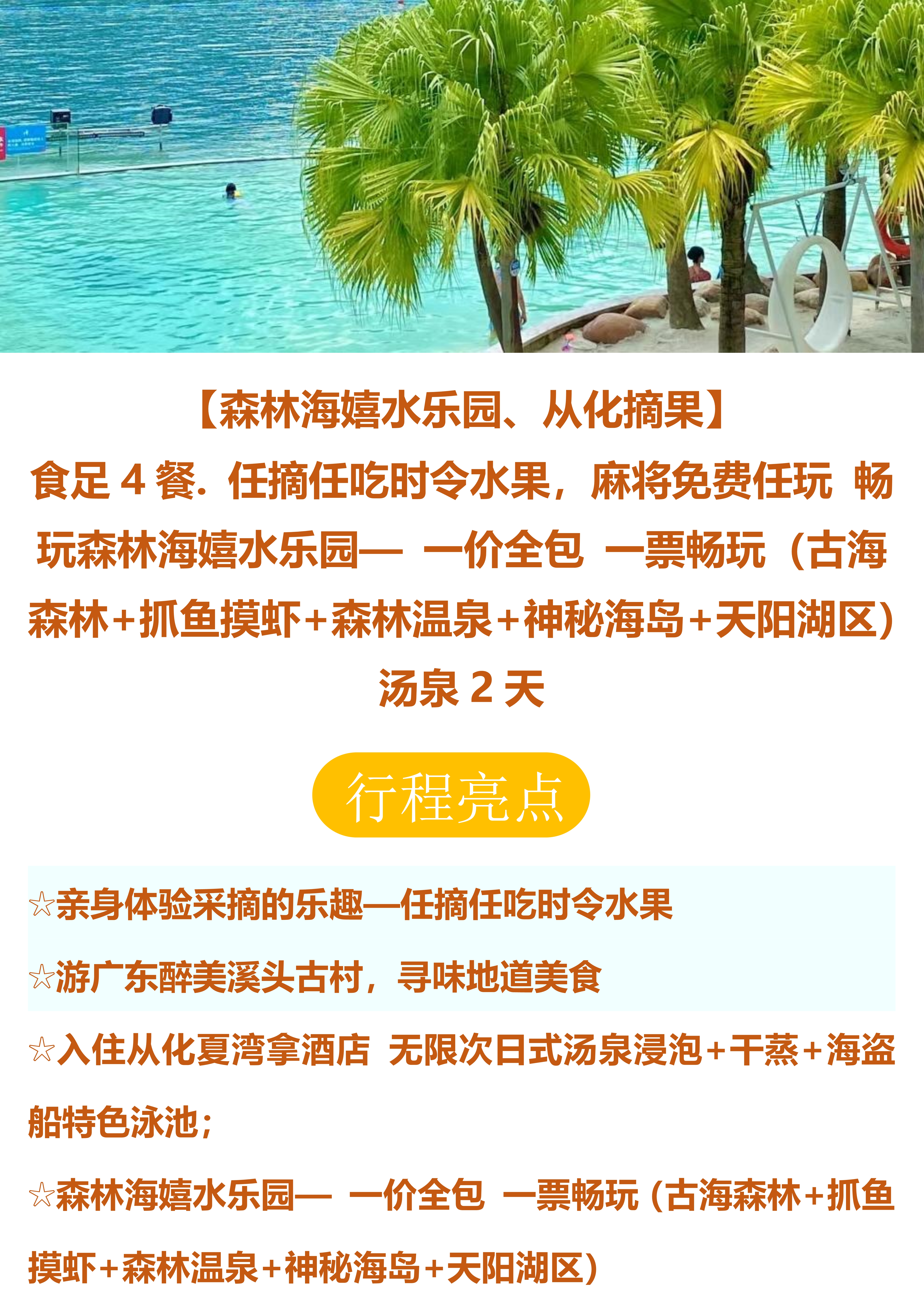 【森林海嬉水乐园、从化摘果】汤泉 2 天