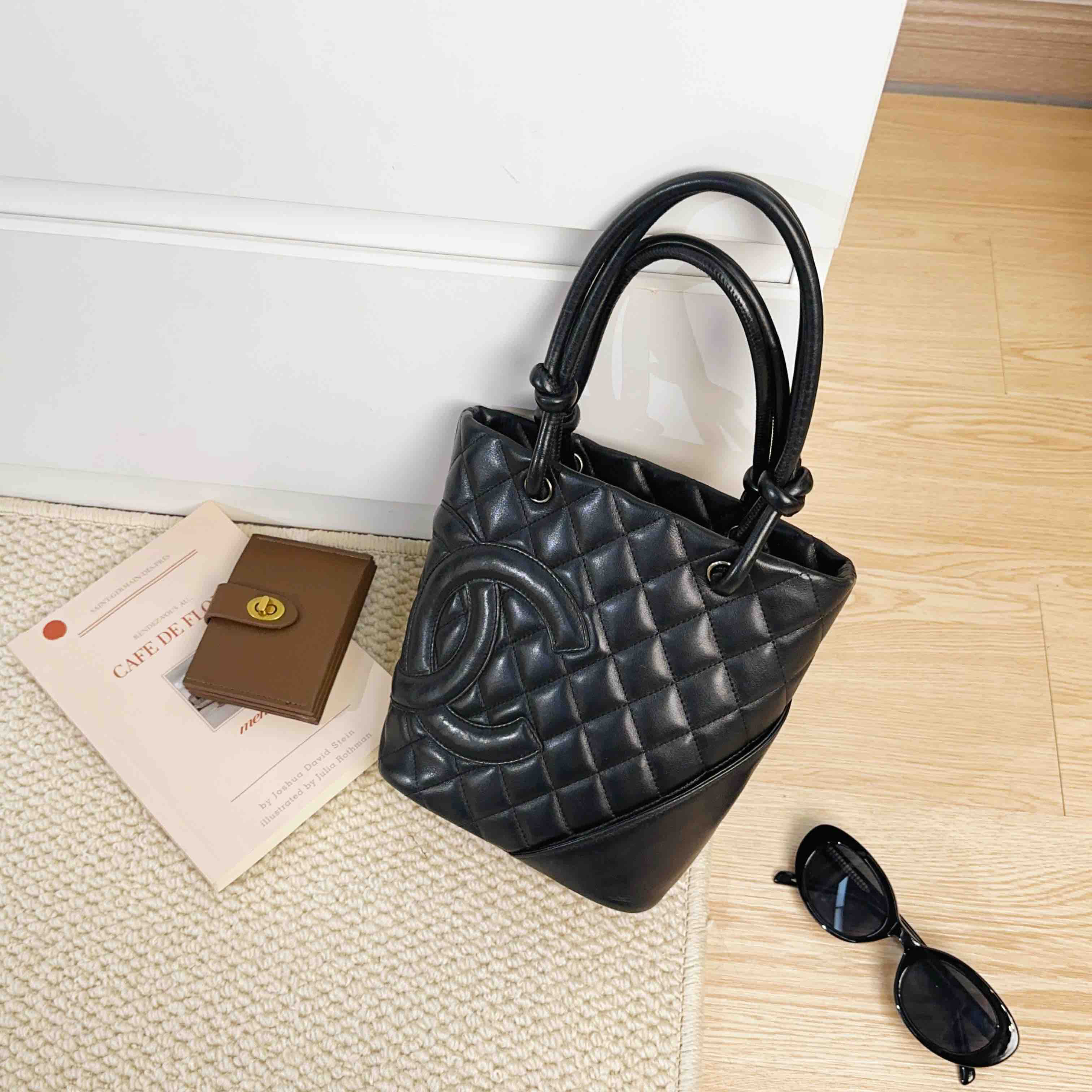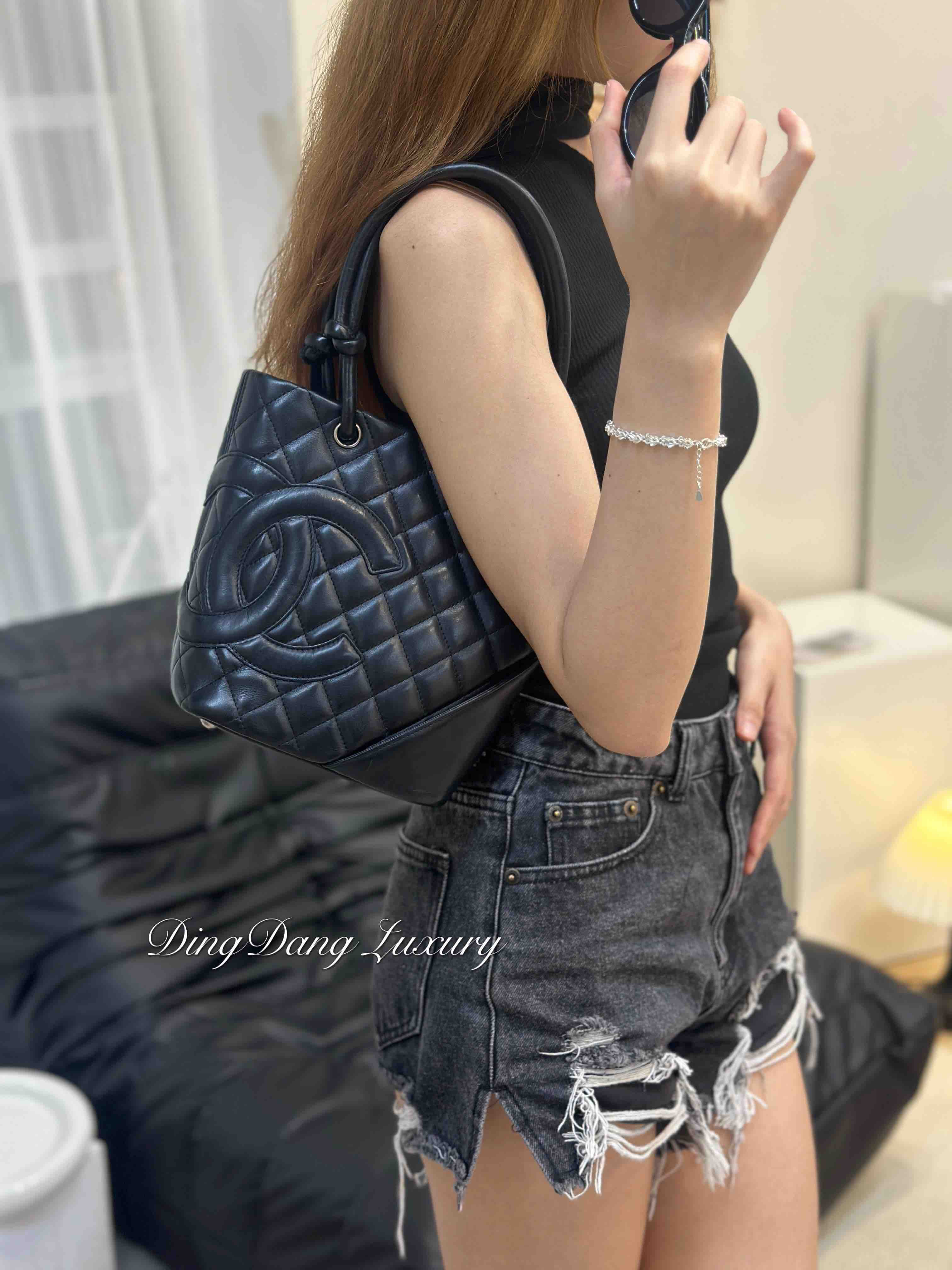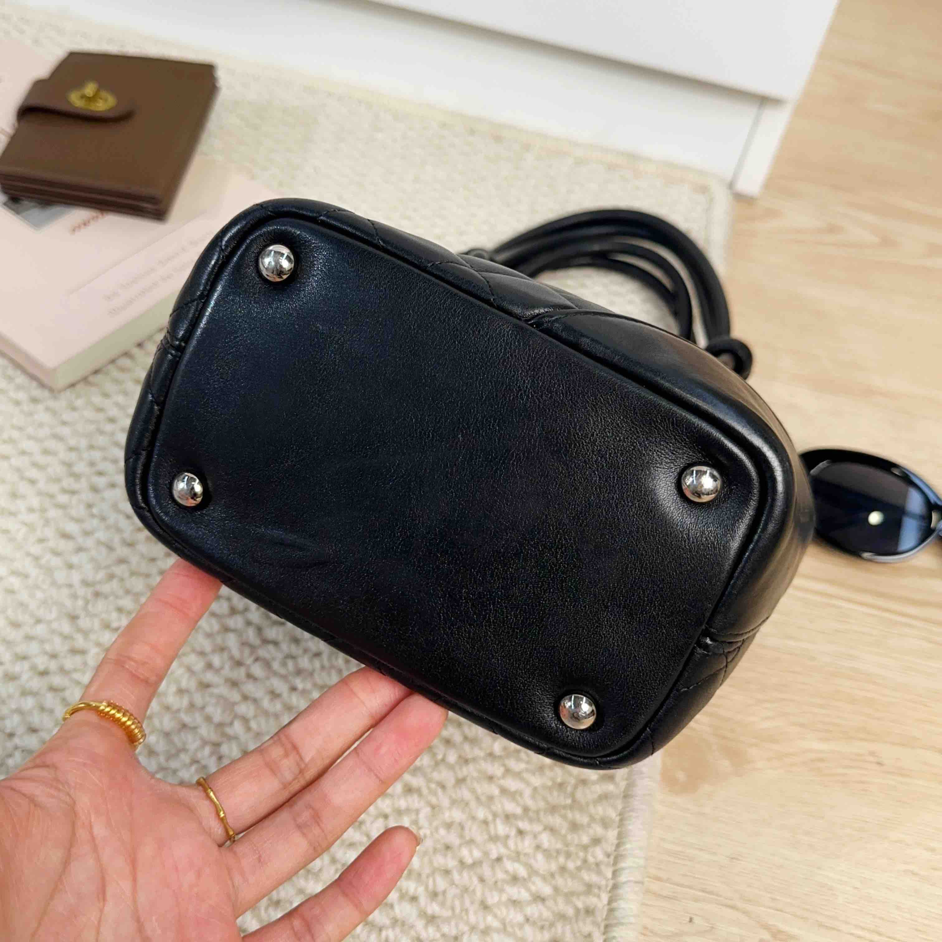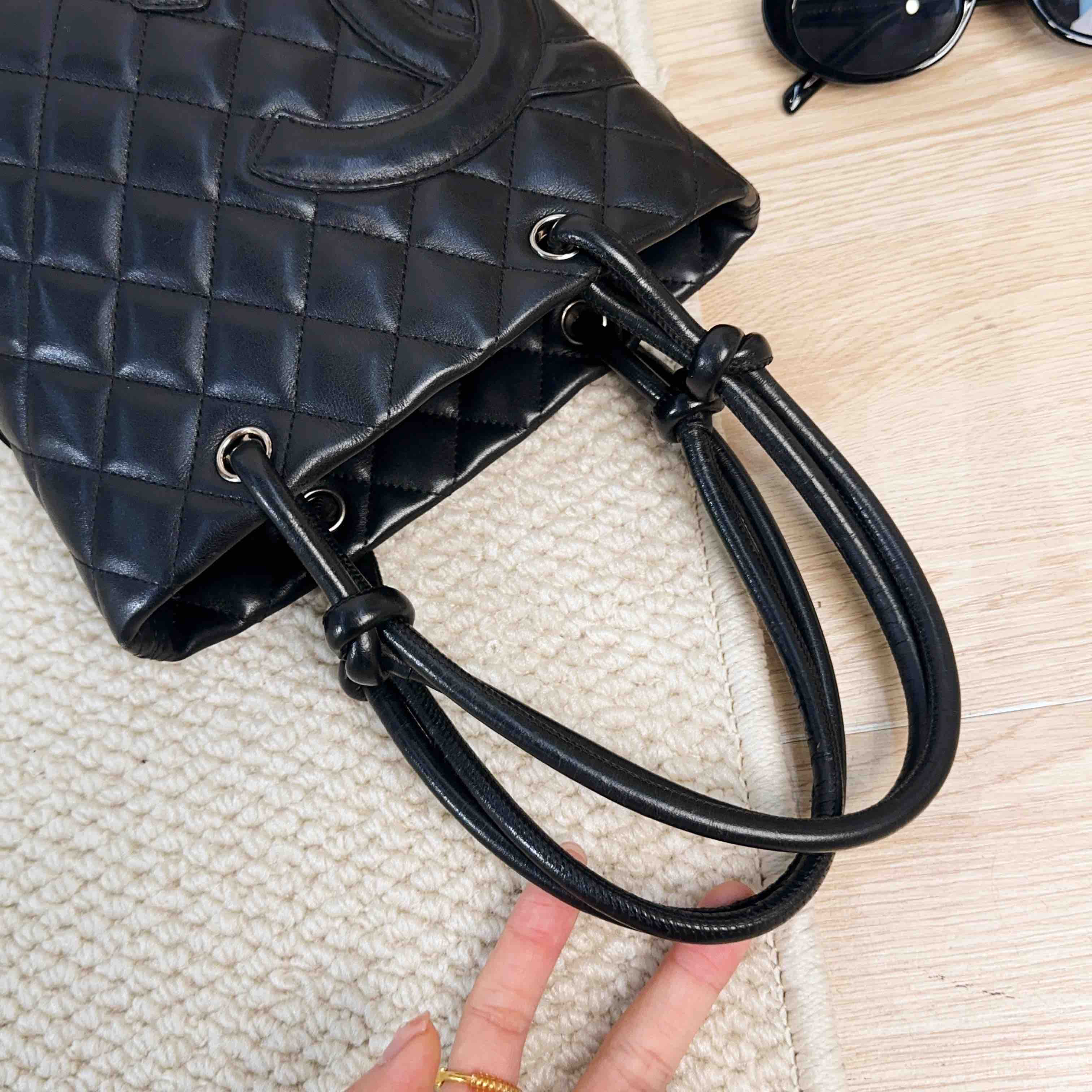 【商品描述】正品二手 Chanel 康鹏 黑色 羊皮 mini 菜篮子 手提包🍒95新 15×19 有镭射。包口和包底边角轻微使用磨损 包面和包底轻微划痕感 内里正常使用痕迹