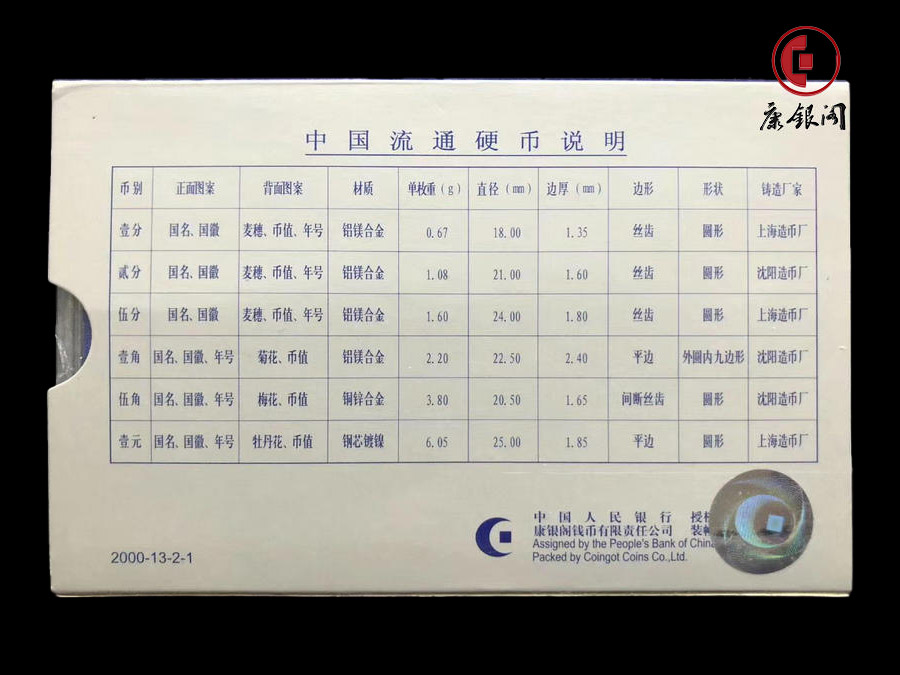 【藏品内容】2000年的牡丹壹、梅花伍、菊花壹、伍分、贰分,壹分各一枚。