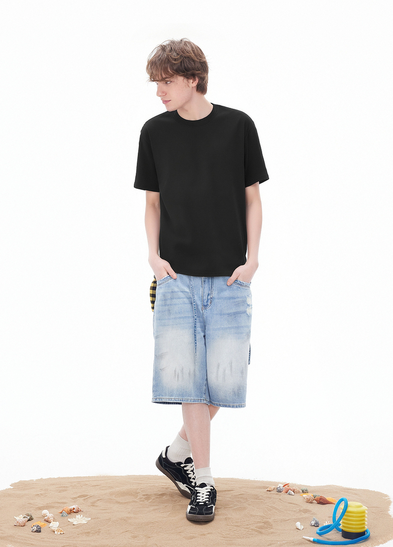 gxgjeans男装 【100%棉】多色基础打底圆领纯色舒适柔软短袖T恤男生上衣 26夏新品