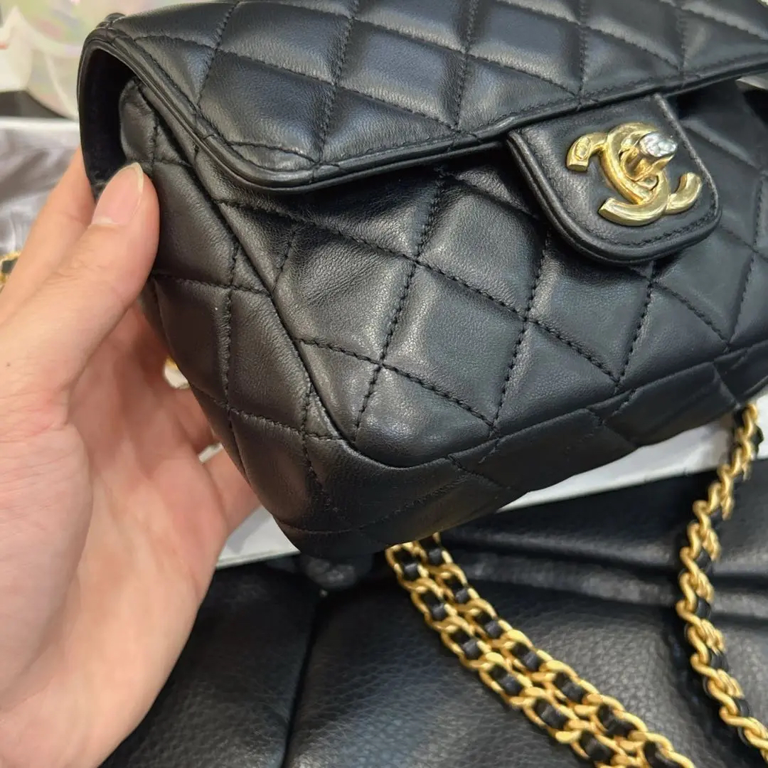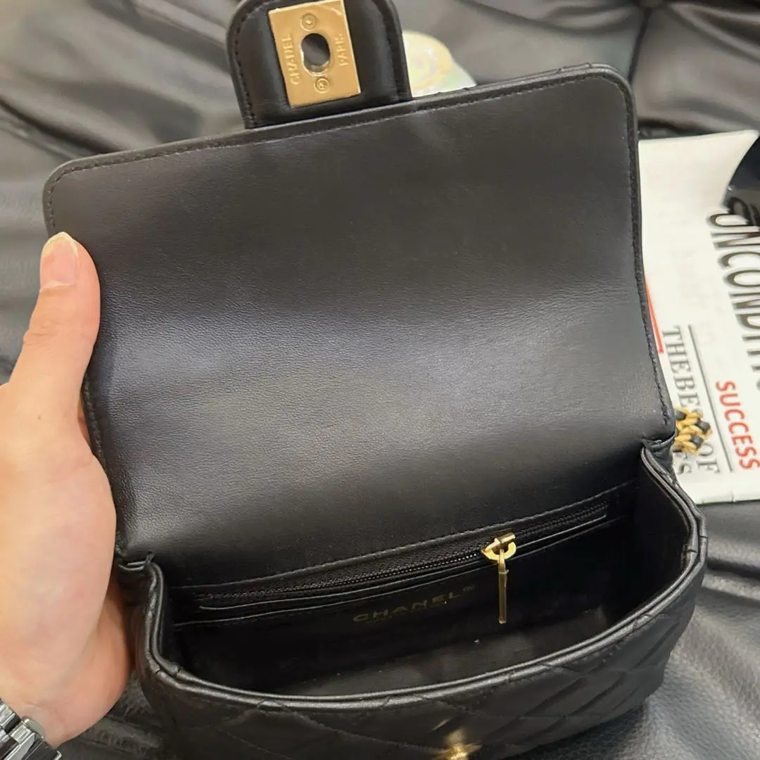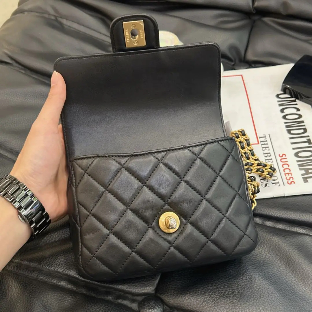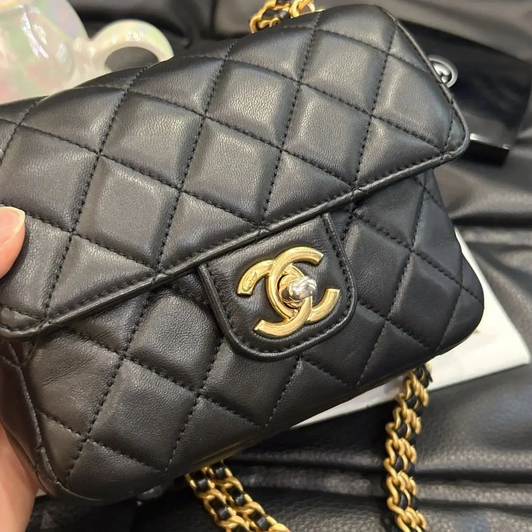 【商品详情】正品二手 CHANEL 22B 黑金 珐琅 方胖子 羊皮 斜挎包🧚🏻♀️97新 16×12 新钢标。经典款 永不出错