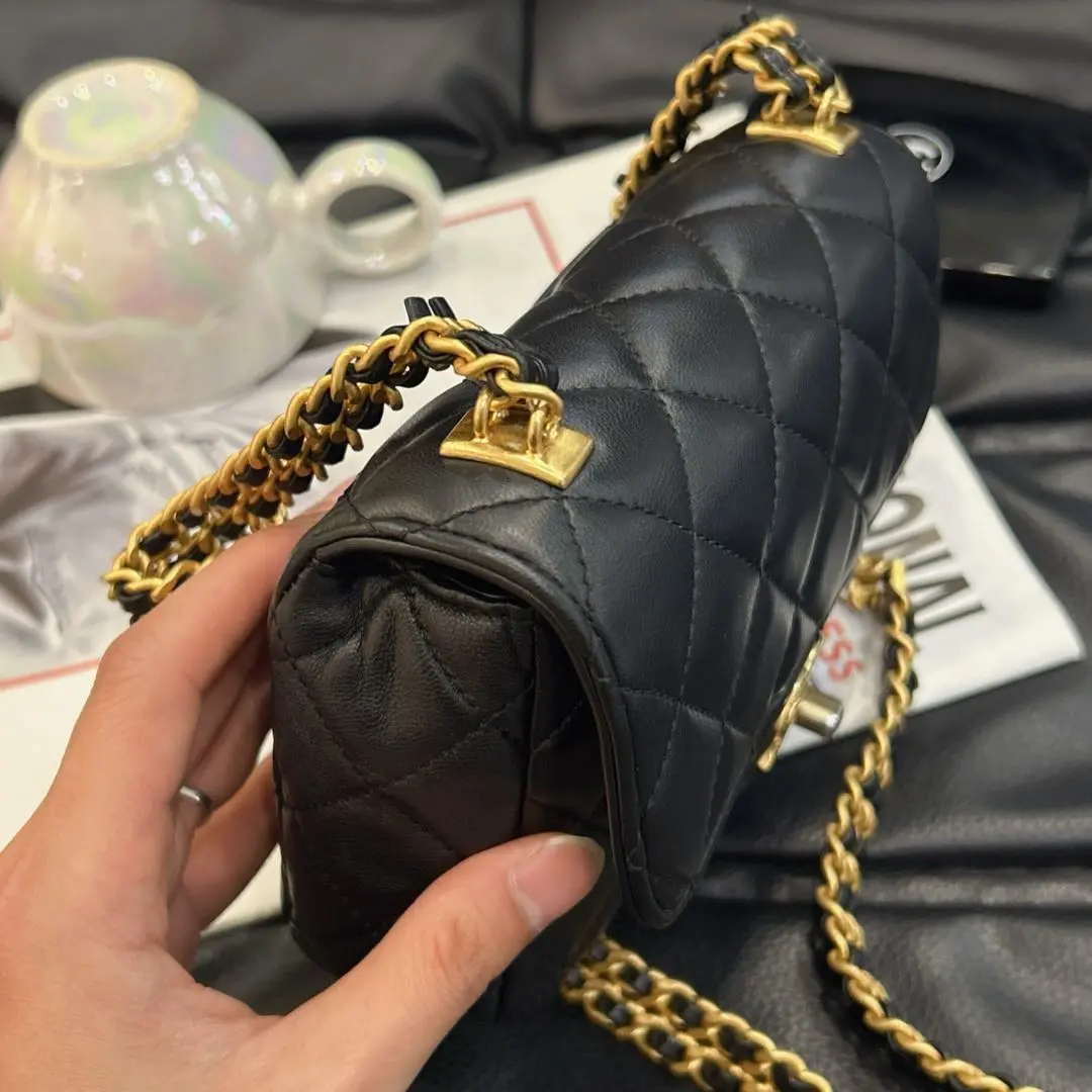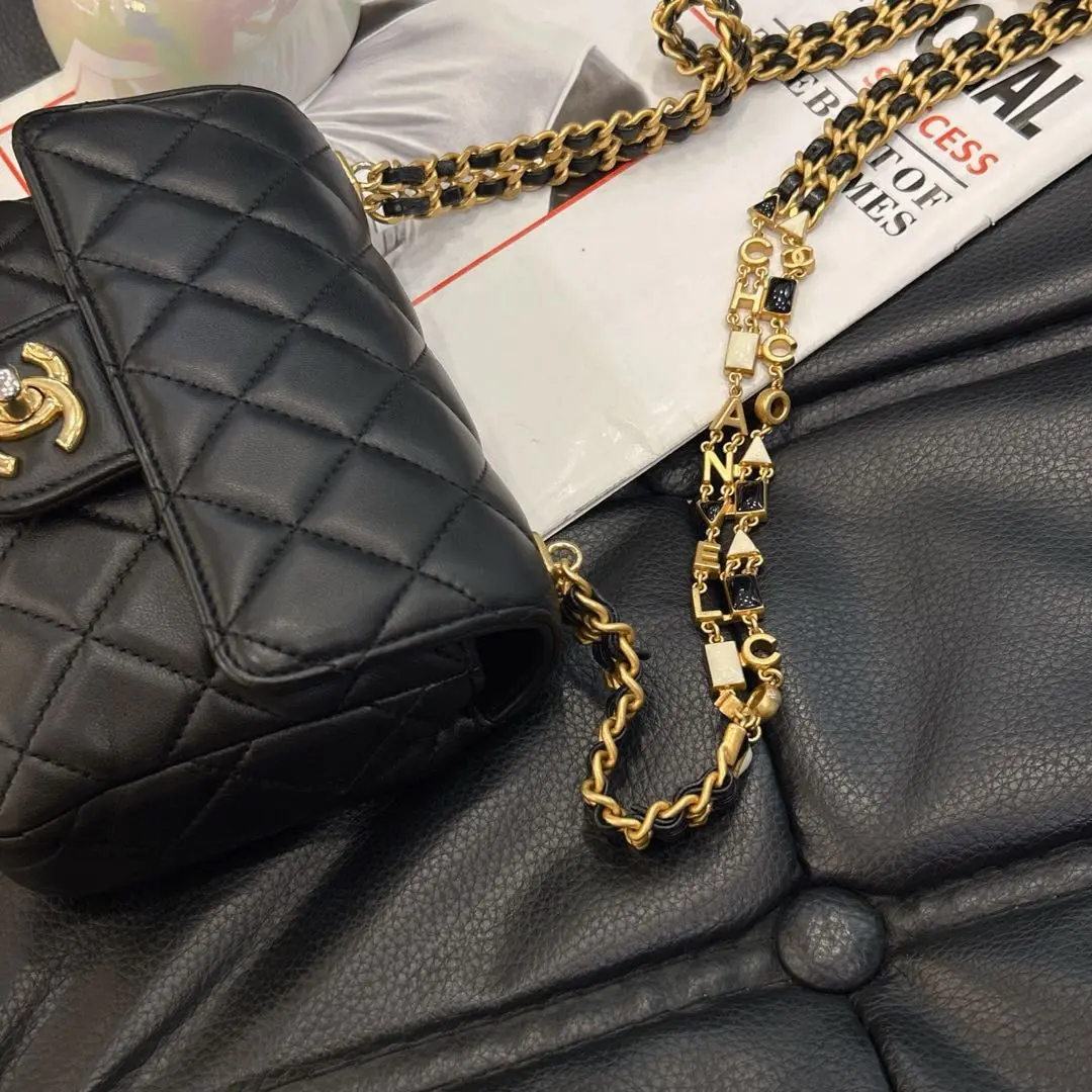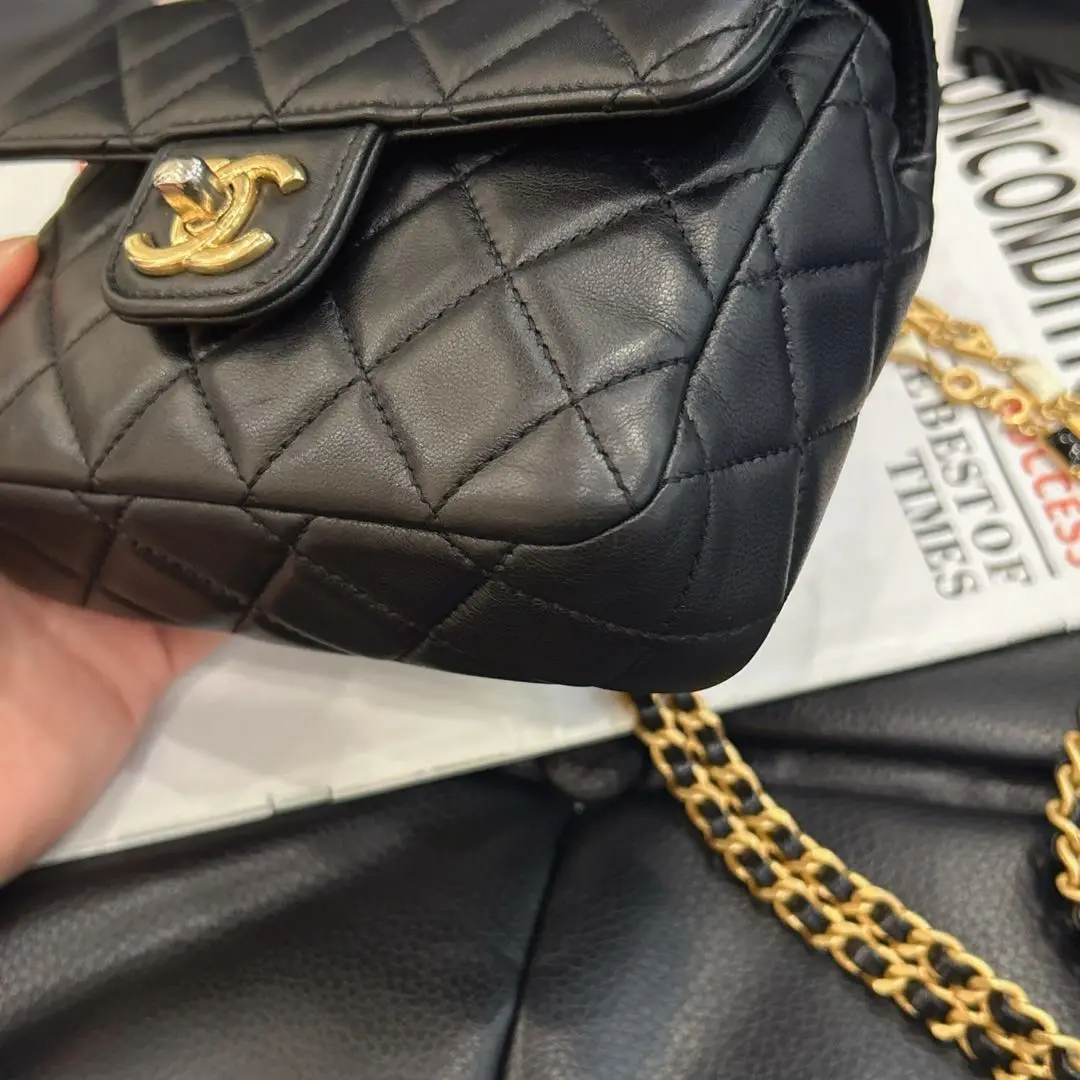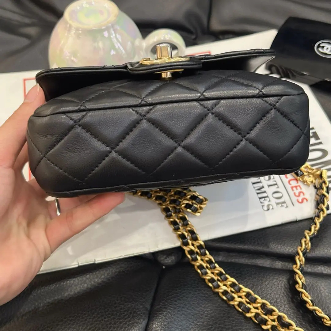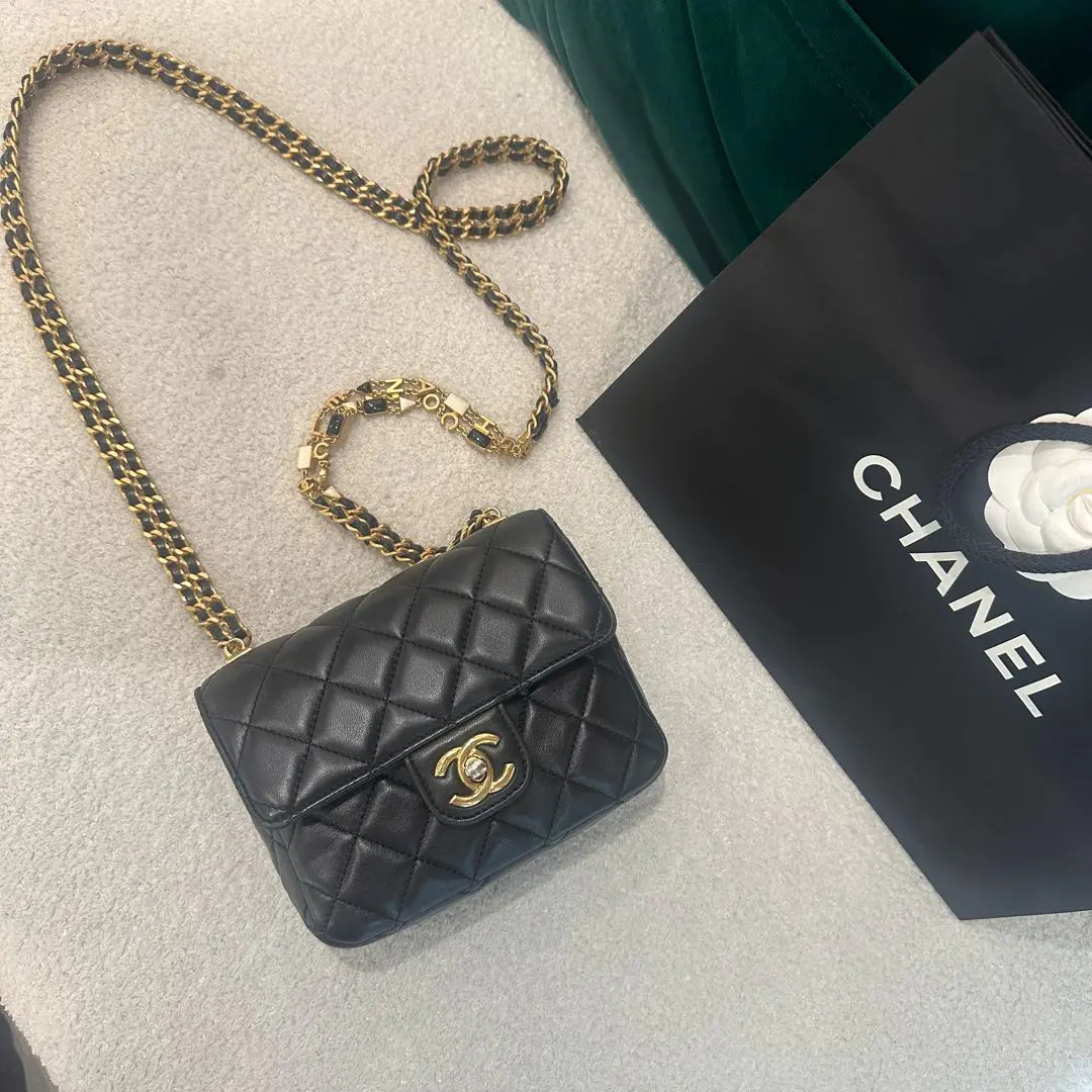 【商品详情】正品二手 CHANEL 22B 黑金 珐琅 方胖子 羊皮 斜挎包🧚🏻♀️97新 16×12 新钢标。经典款 永不出错