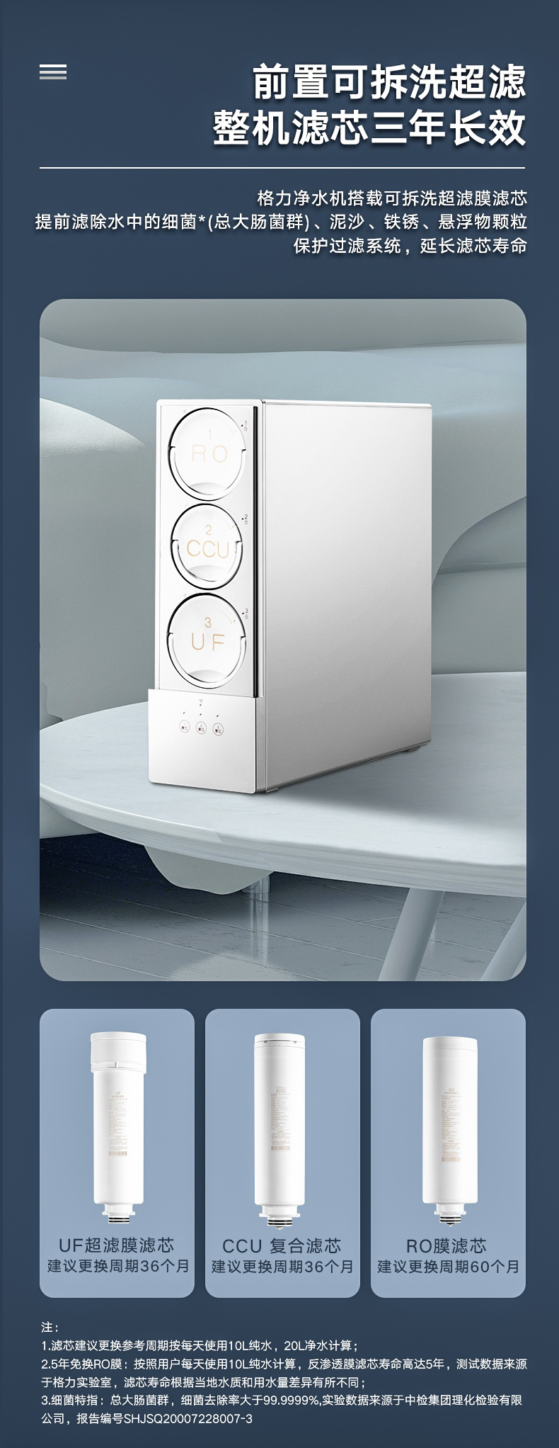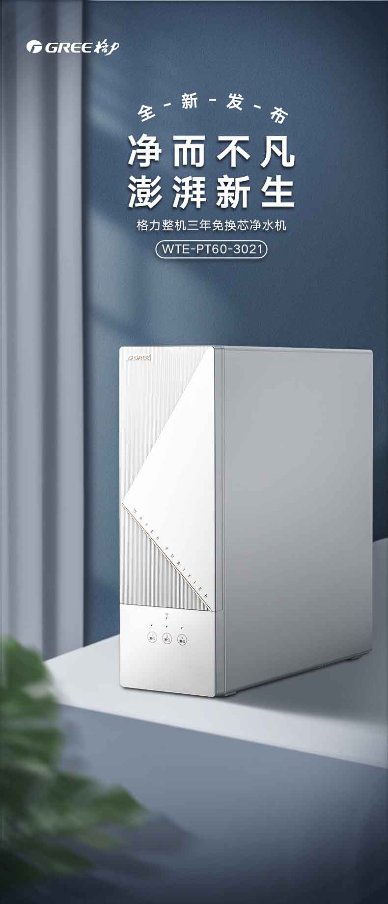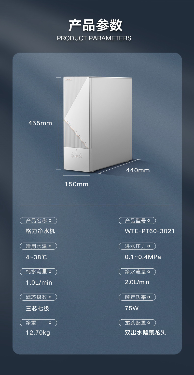 格力反渗透净水机 双出水设计 整机三年免换芯 WTE-PT60-3021