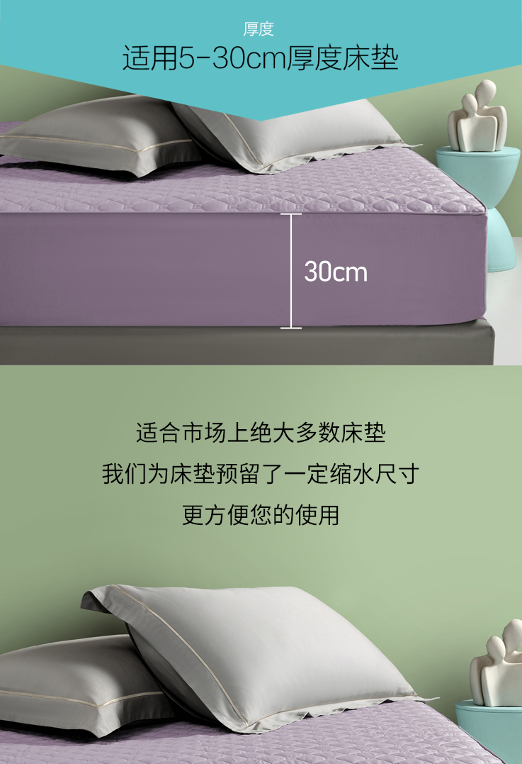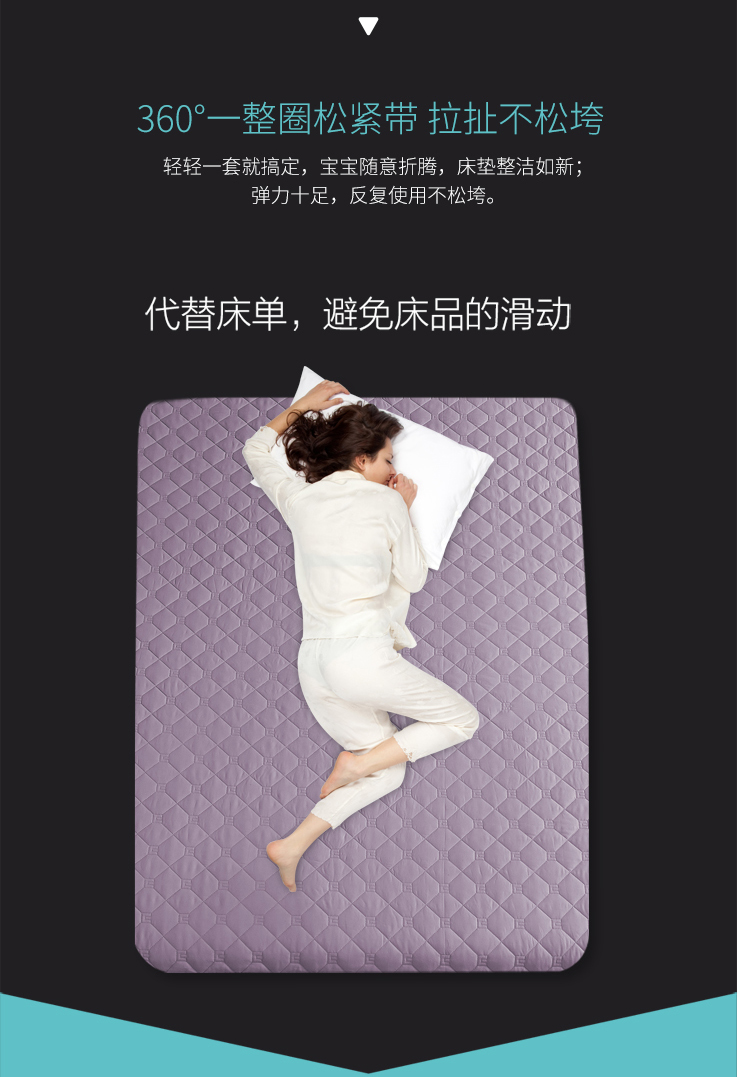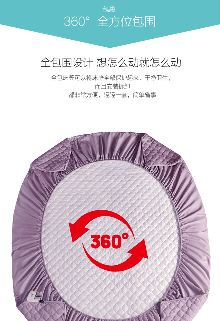 3、四周1CM松紧带笠边固定,整体围绕,360°全包围设计,可以更加牢固的固定在床垫上。