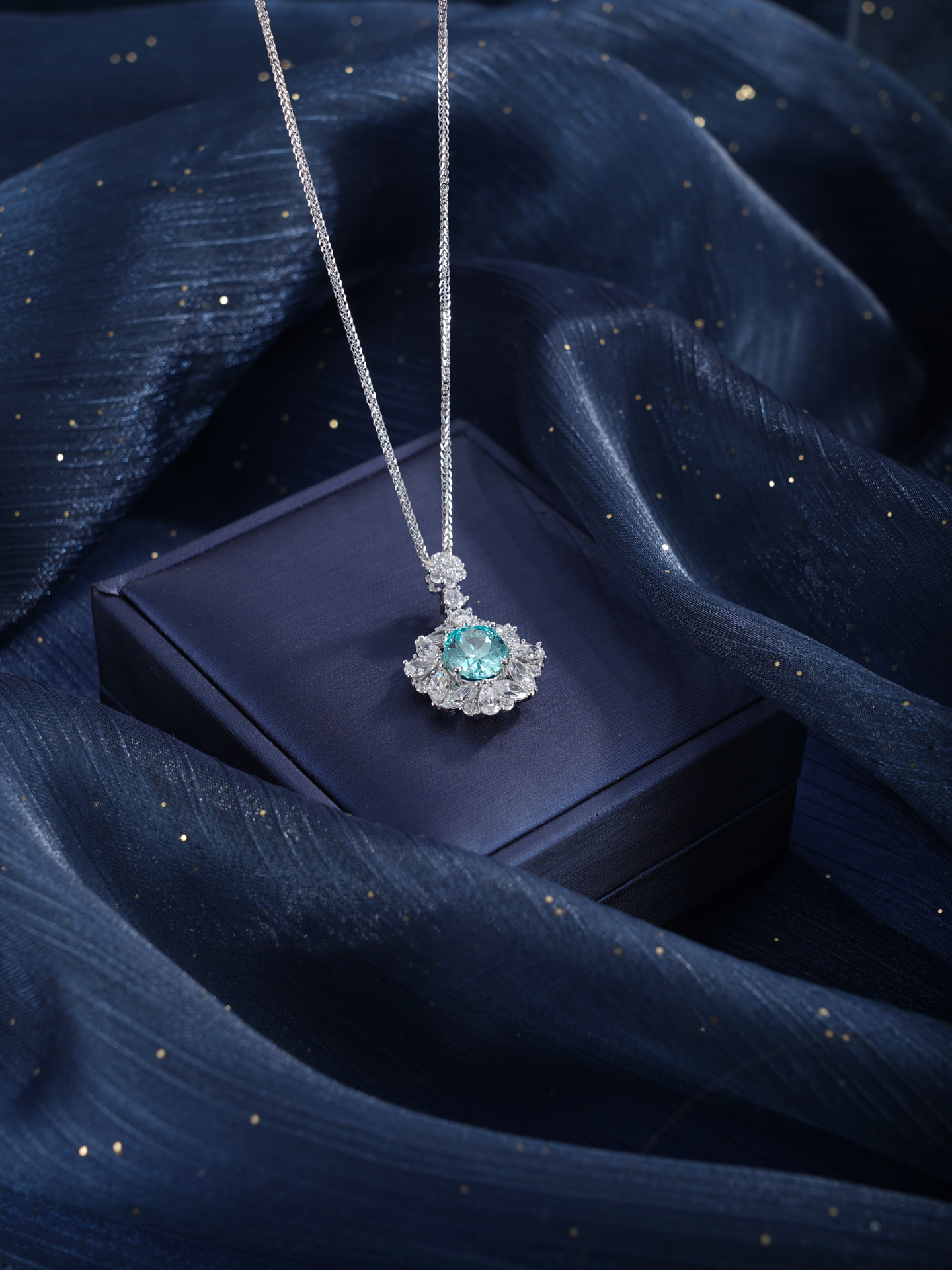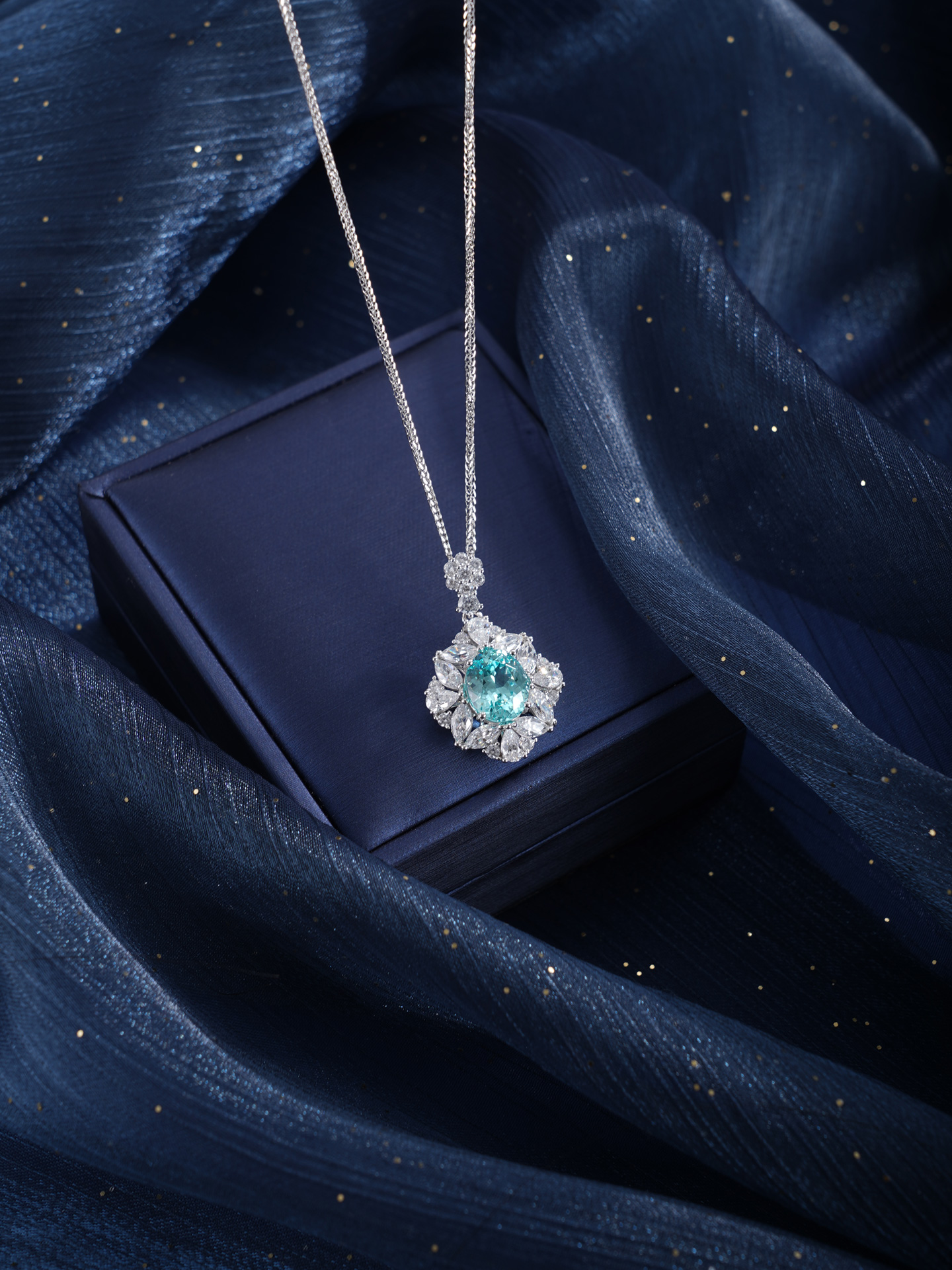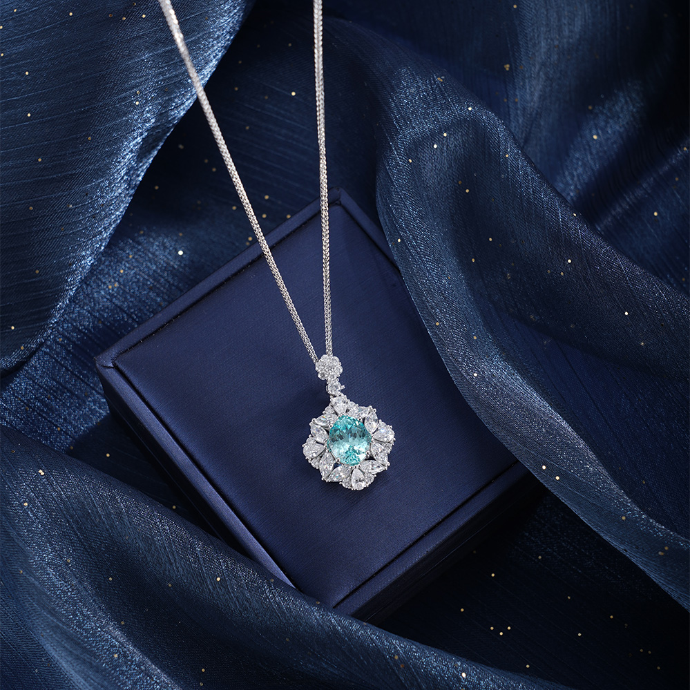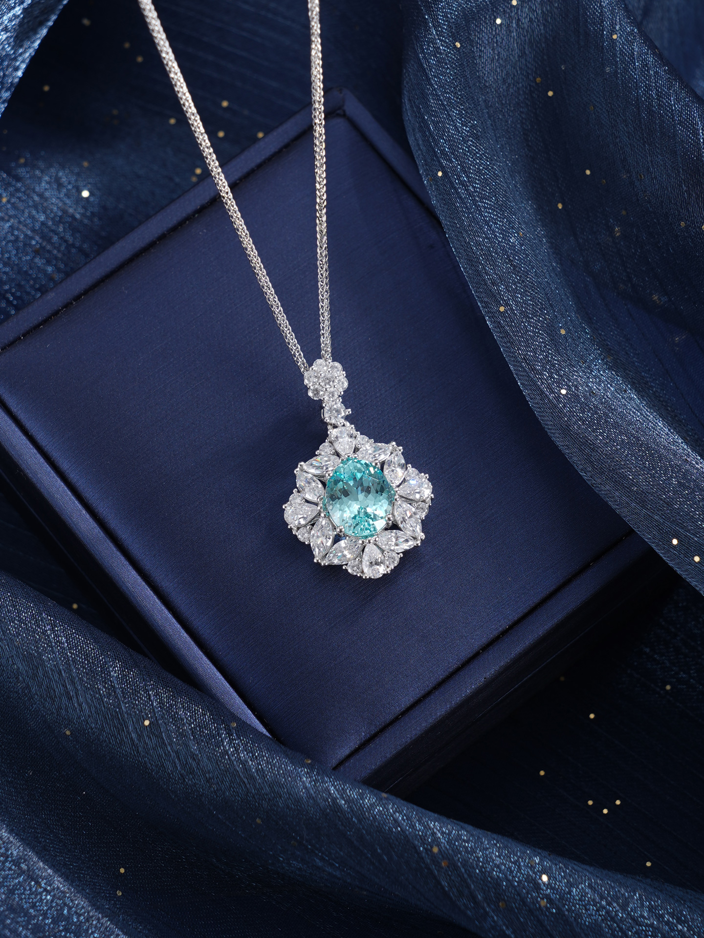 子佩集【福海清心】银S925套链【PYP2043-XF】项链培育宝石帕拉伊巴蓝碧玺2601