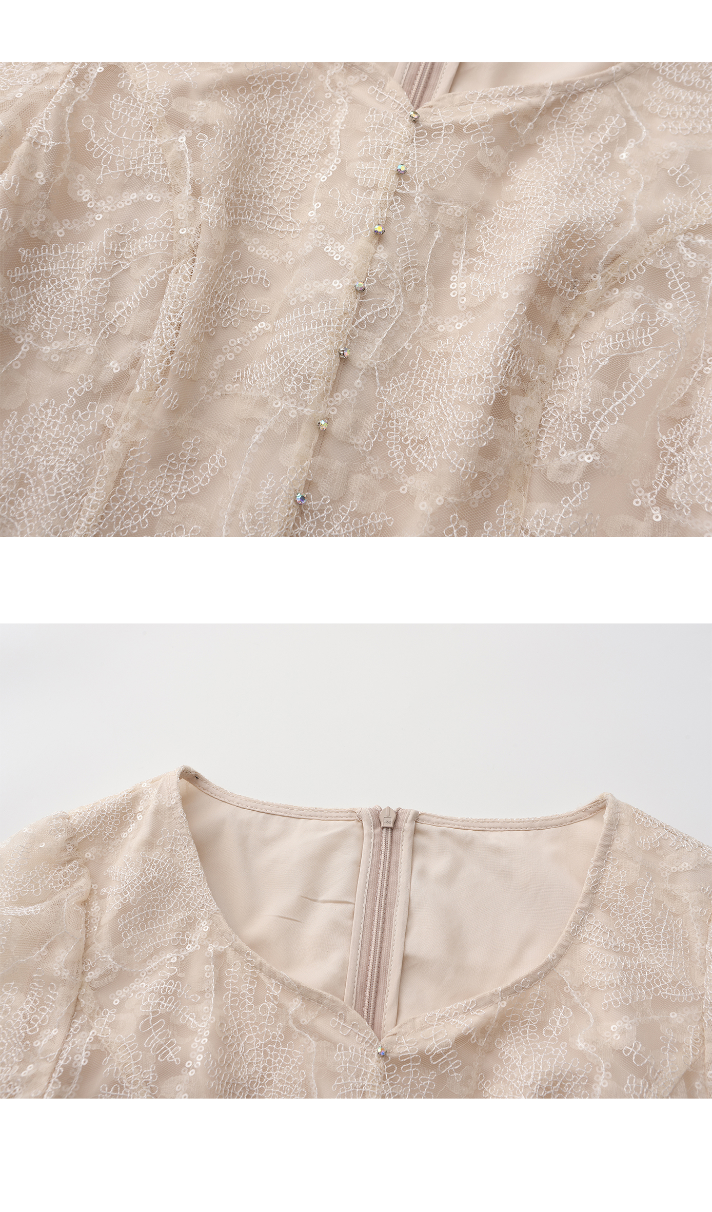 司歌刺绣连衣裙圆领网纱长袖弹力修身A881268