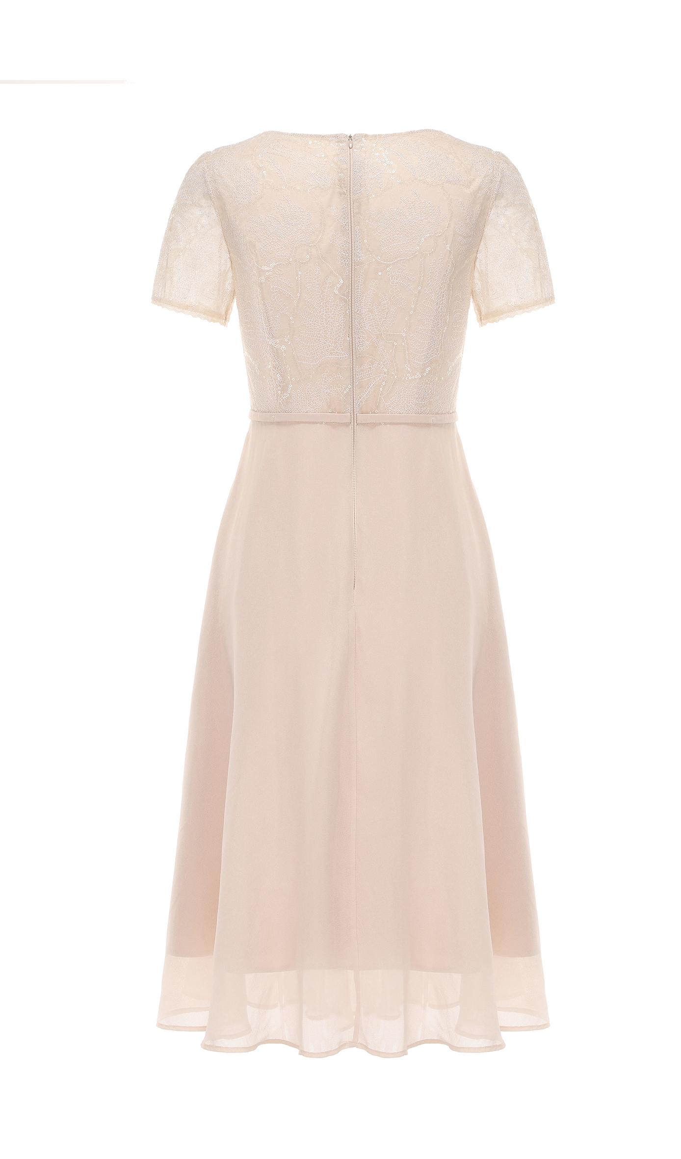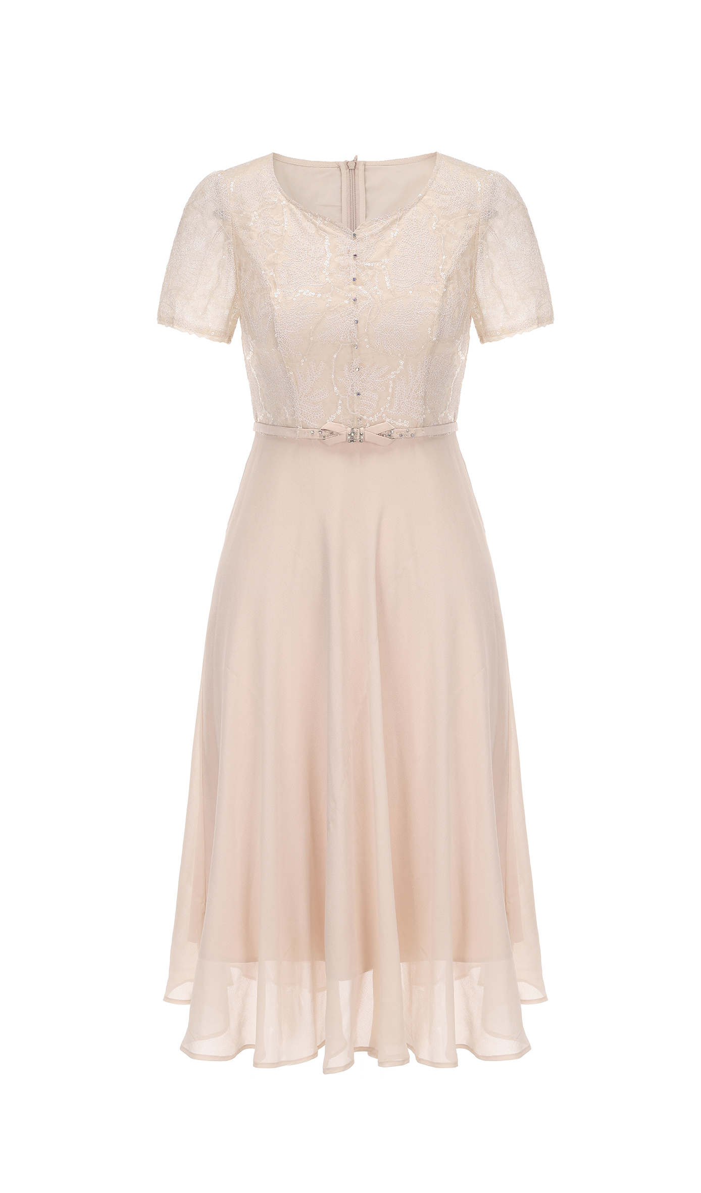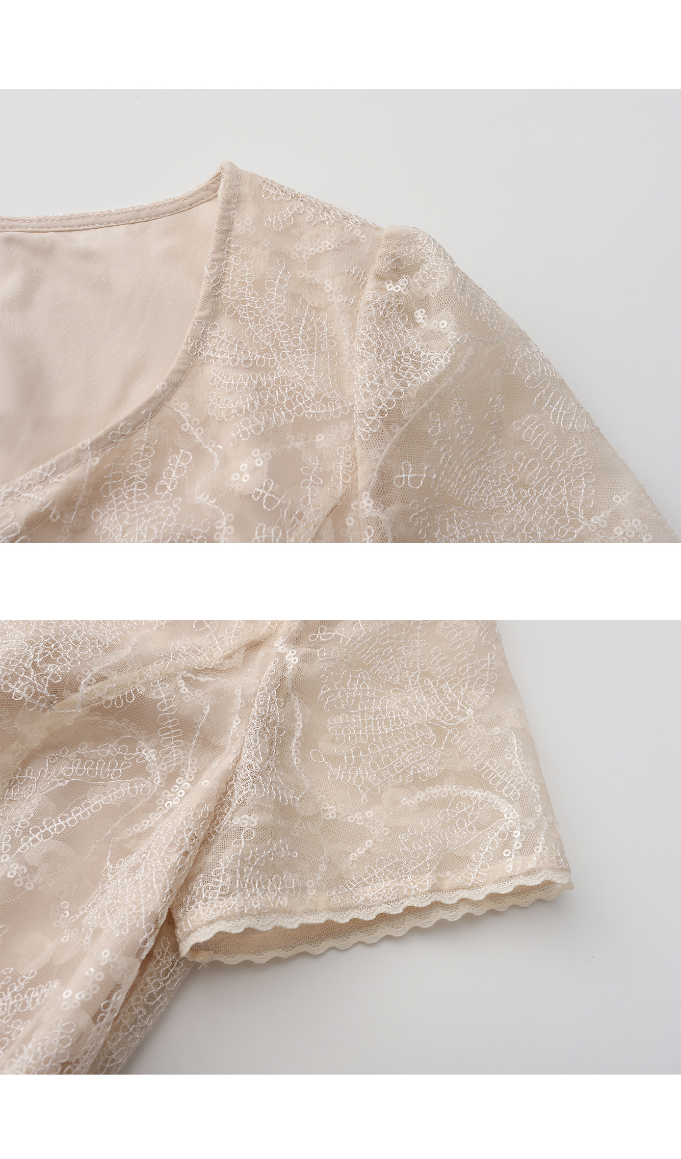 司歌v领网纱刺绣短袖收腰连衣裙A891464M