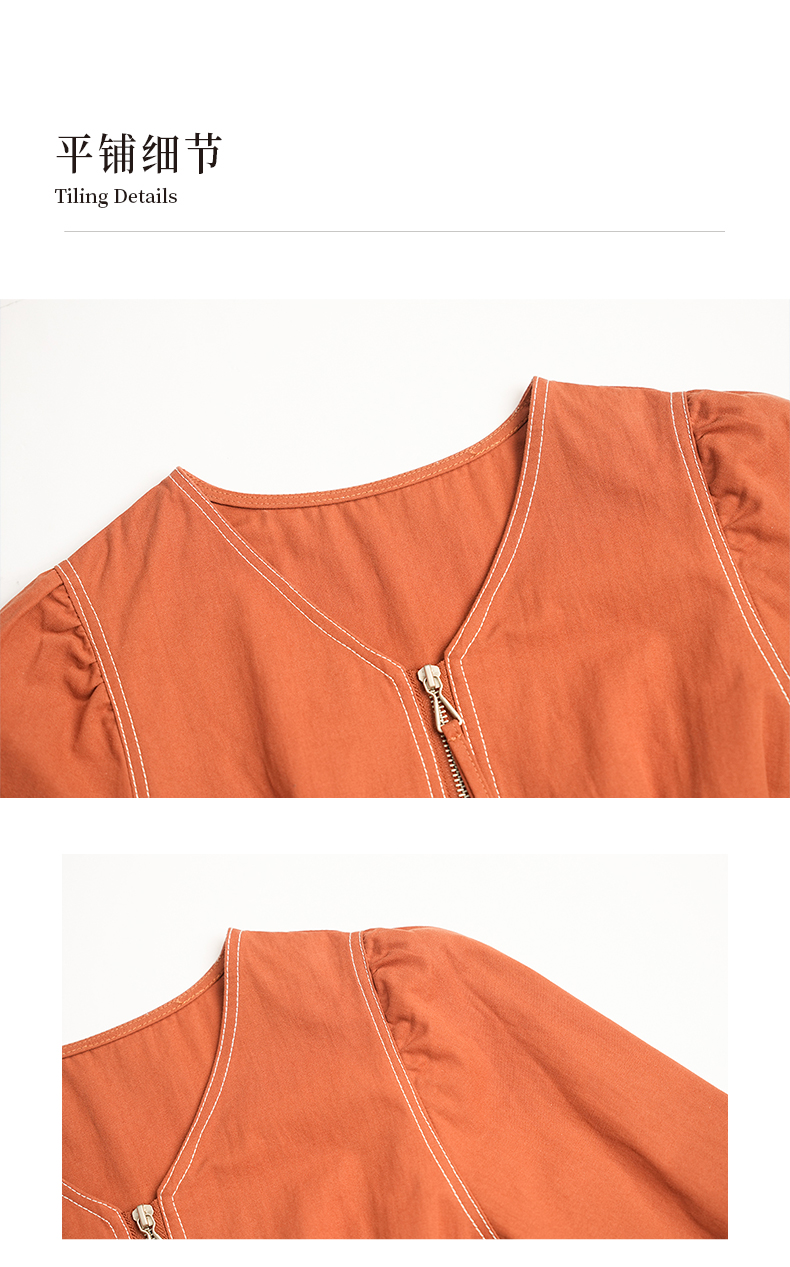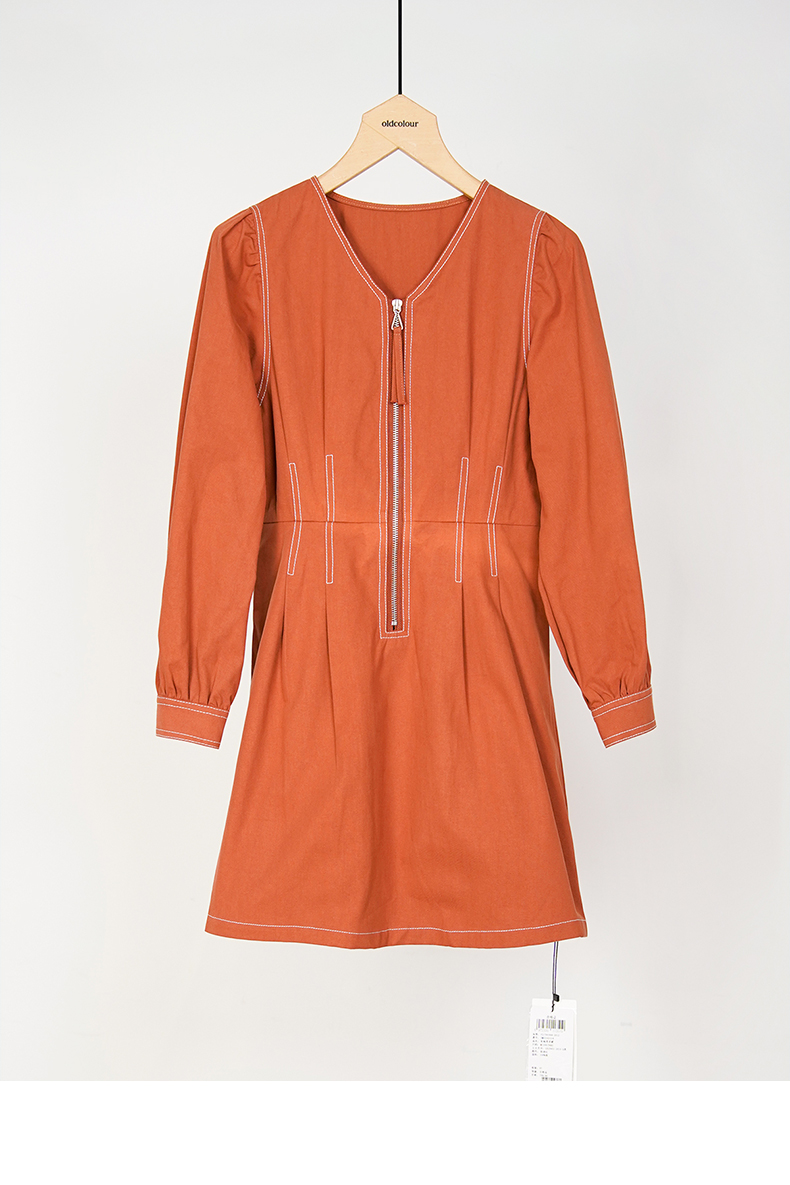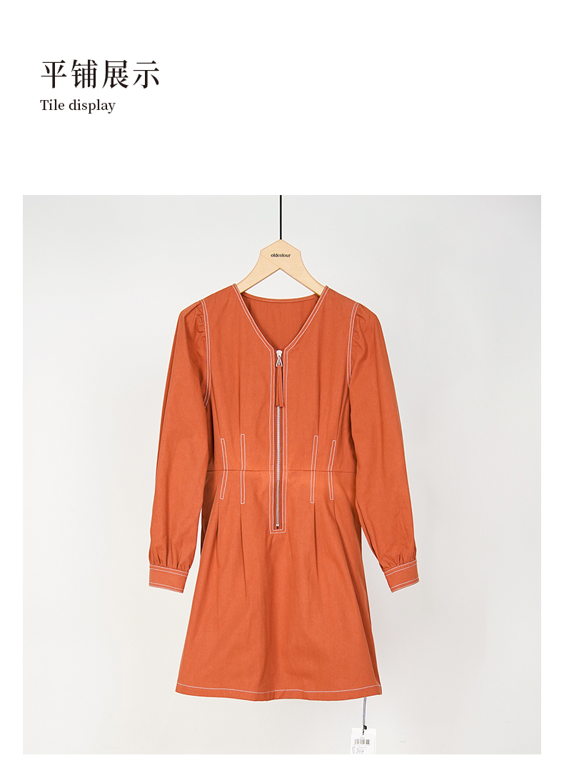 oldcolour气质V领小个子高腰显瘦长袖连衣裙DM33103114