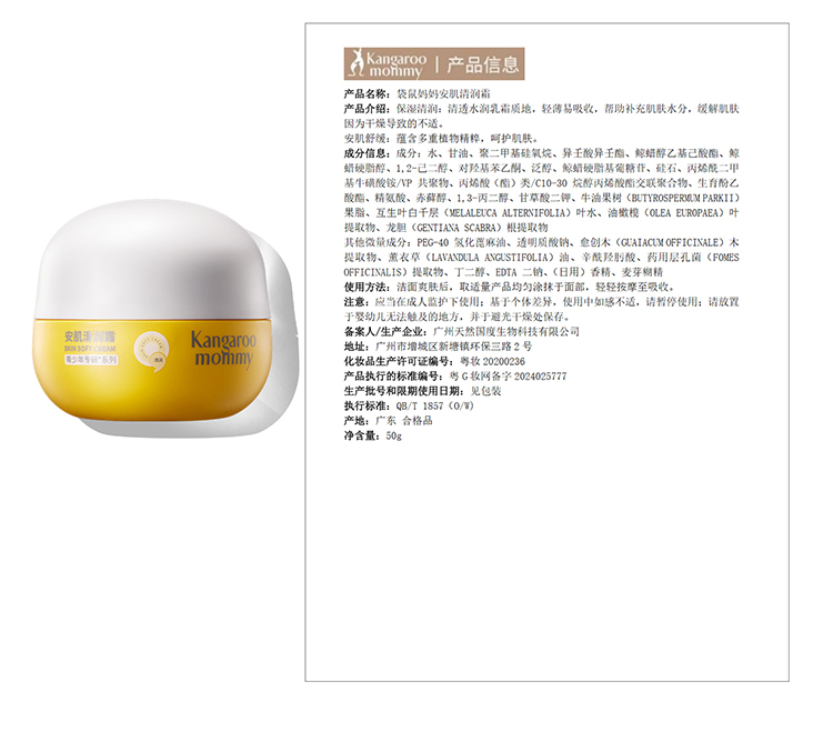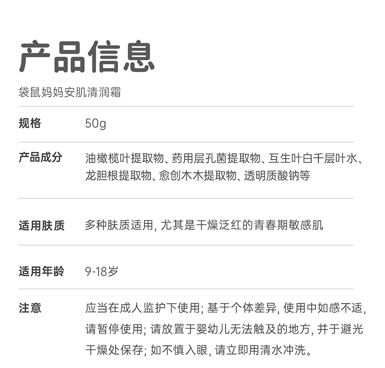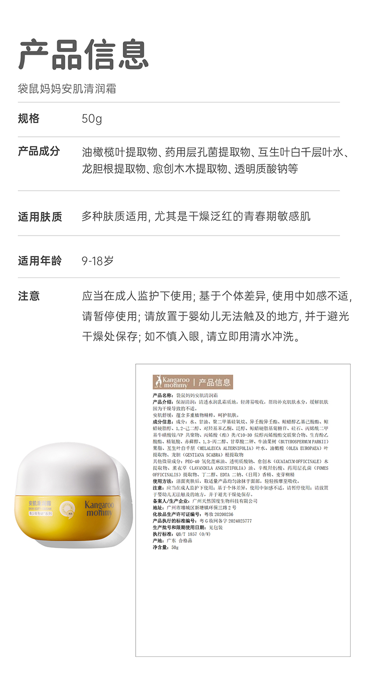 【祛痘面霜】平衡水油 保湿修护 抵御泛红干痒 袋鼠妈妈安肌清润霜50g