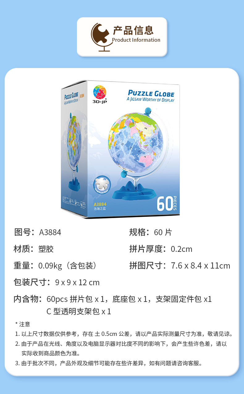 60片3寸 地球仪拼图 A3884 浩瀚之蓝