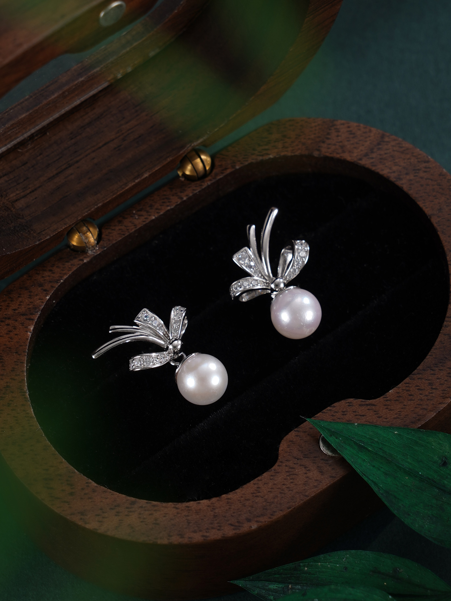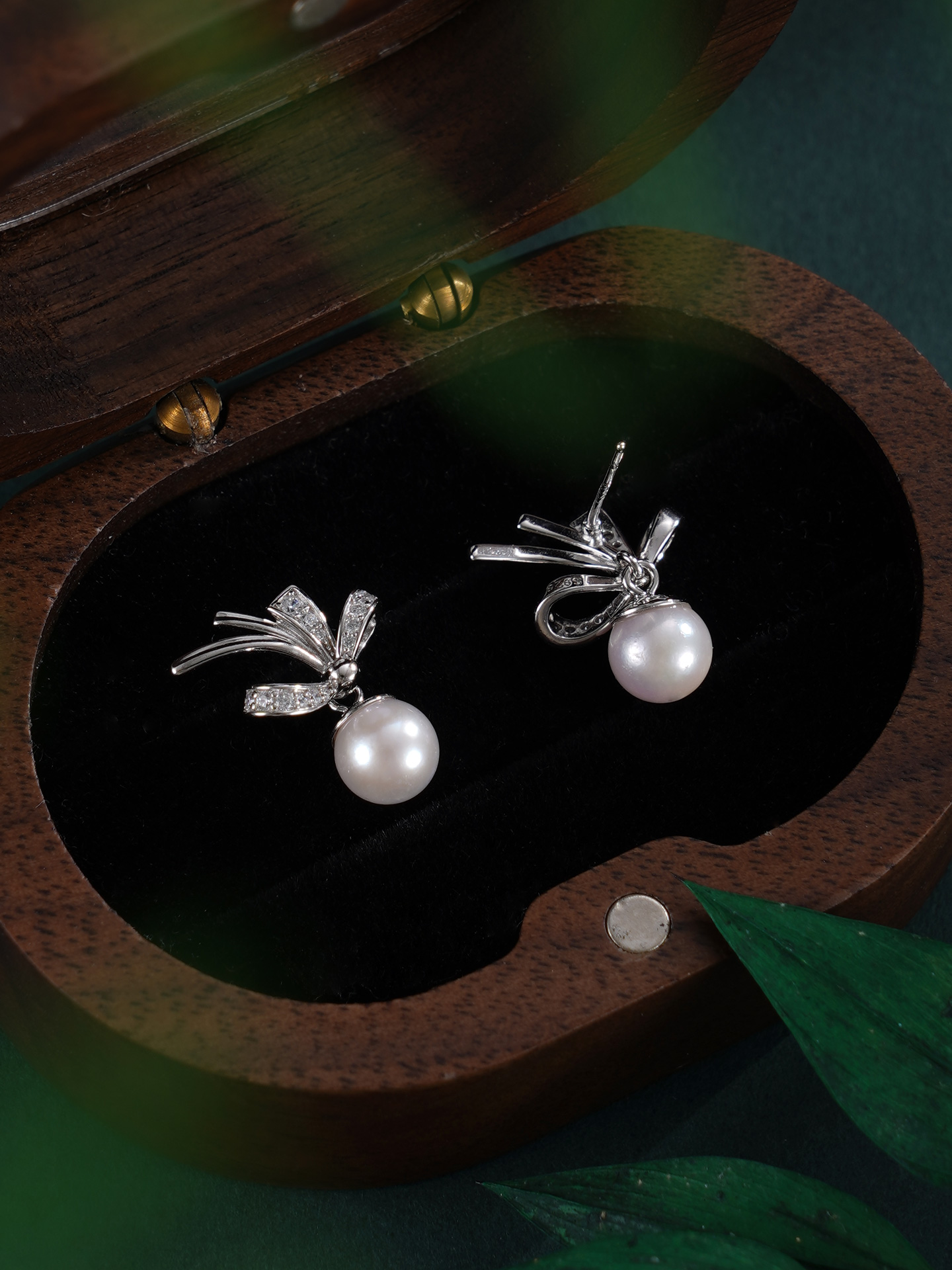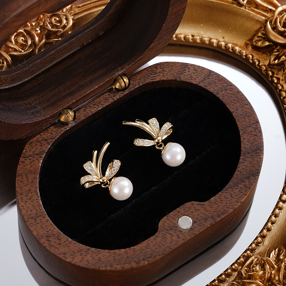 子佩集【幽兰皎月】银S925珍珠惜王妃耳钉【XXED014】6mm珠镀金兰花草双色蝴蝶结2601