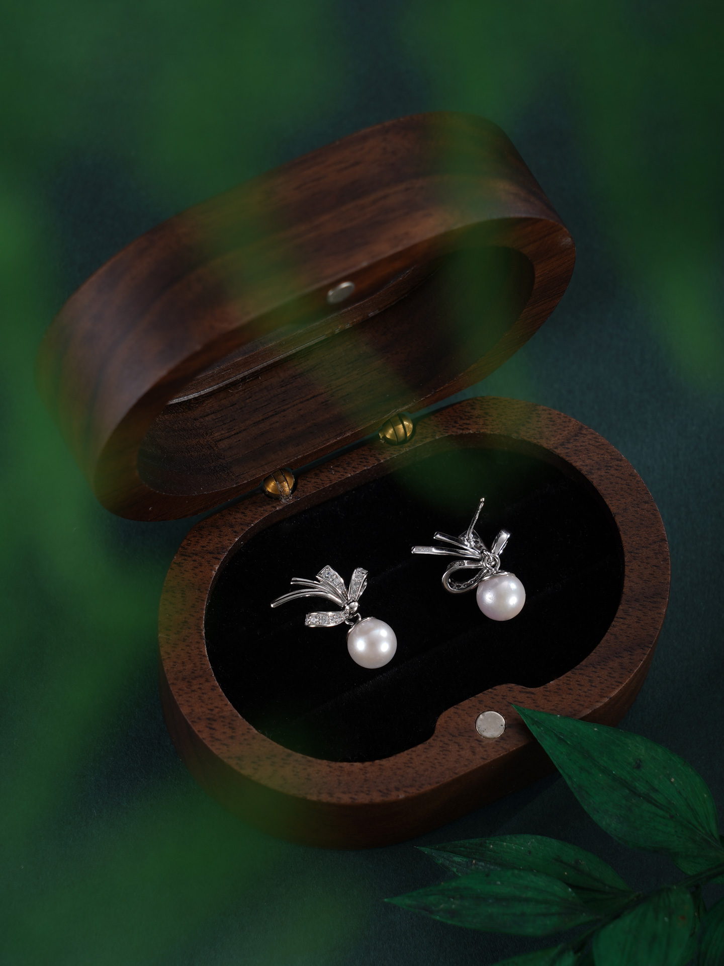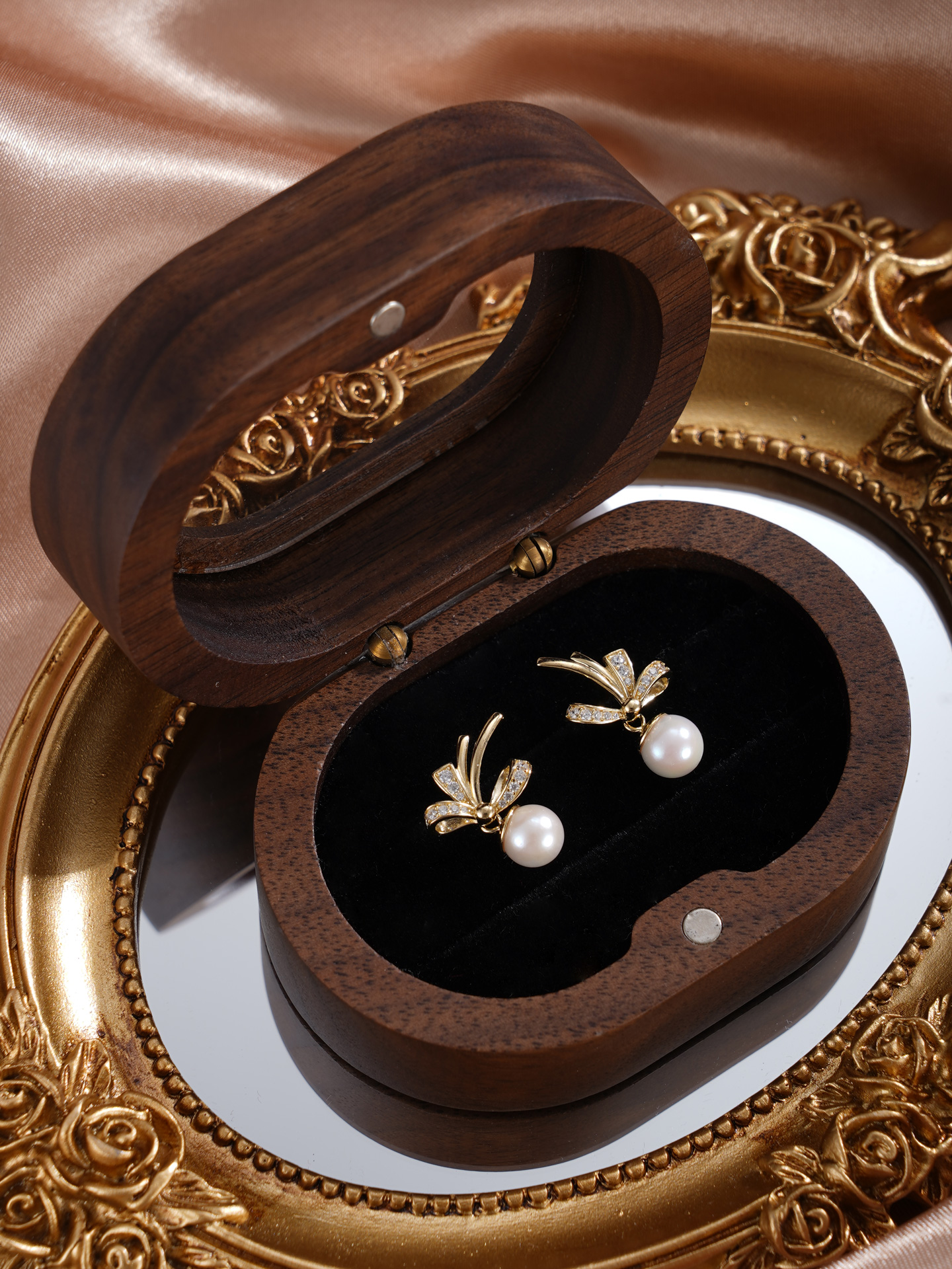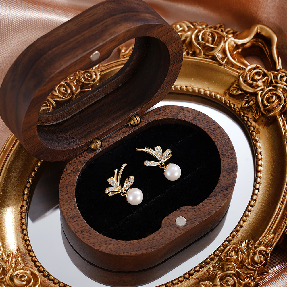 子佩集【幽兰皎月】银S925珍珠惜王妃耳钉【XXED014】6mm珠镀金兰花草双色蝴蝶结2601