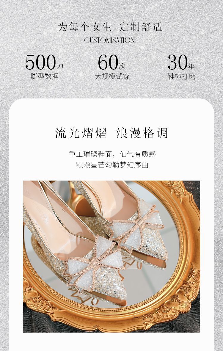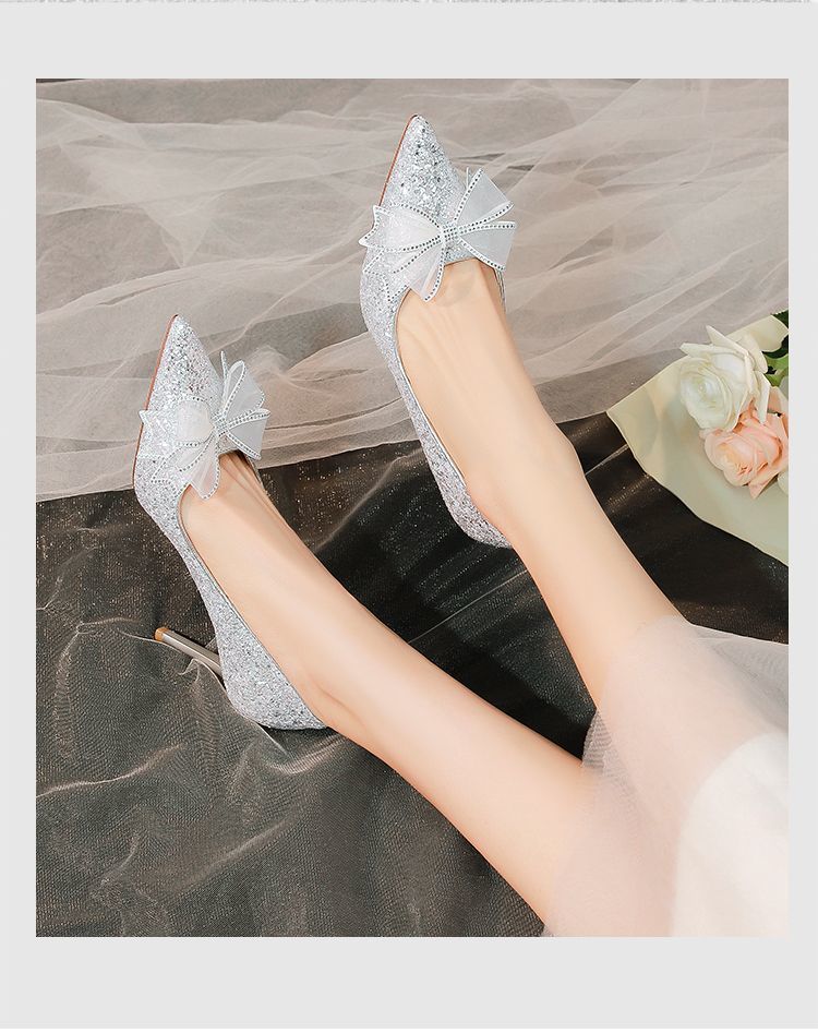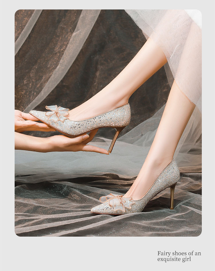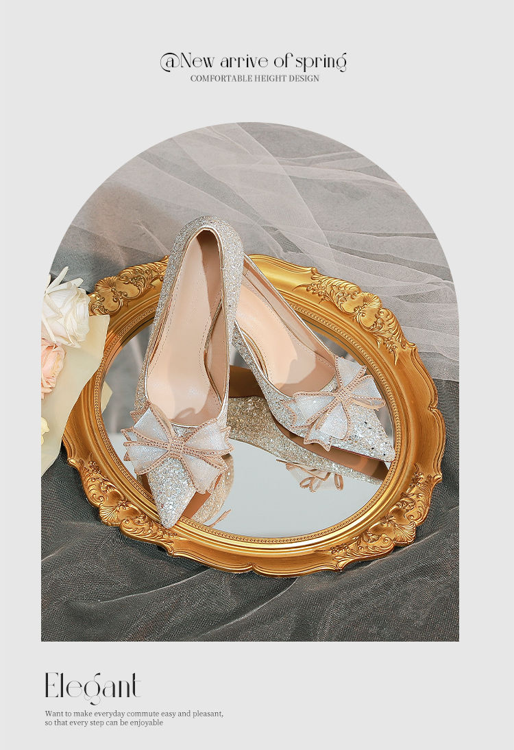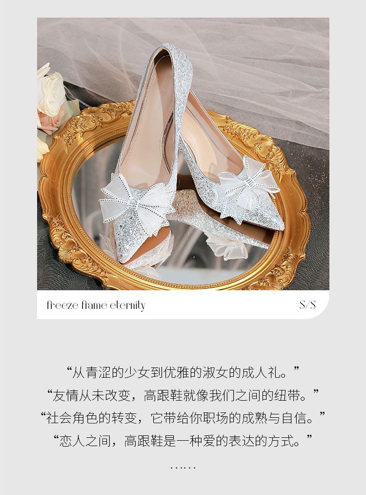 ZHR则则尖头蝴蝶结高跟鞋2025新款气质百搭细跟伴娘鞋单鞋新娘鞋