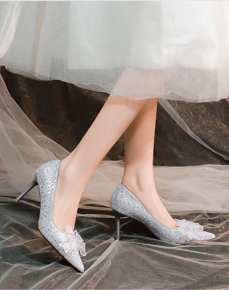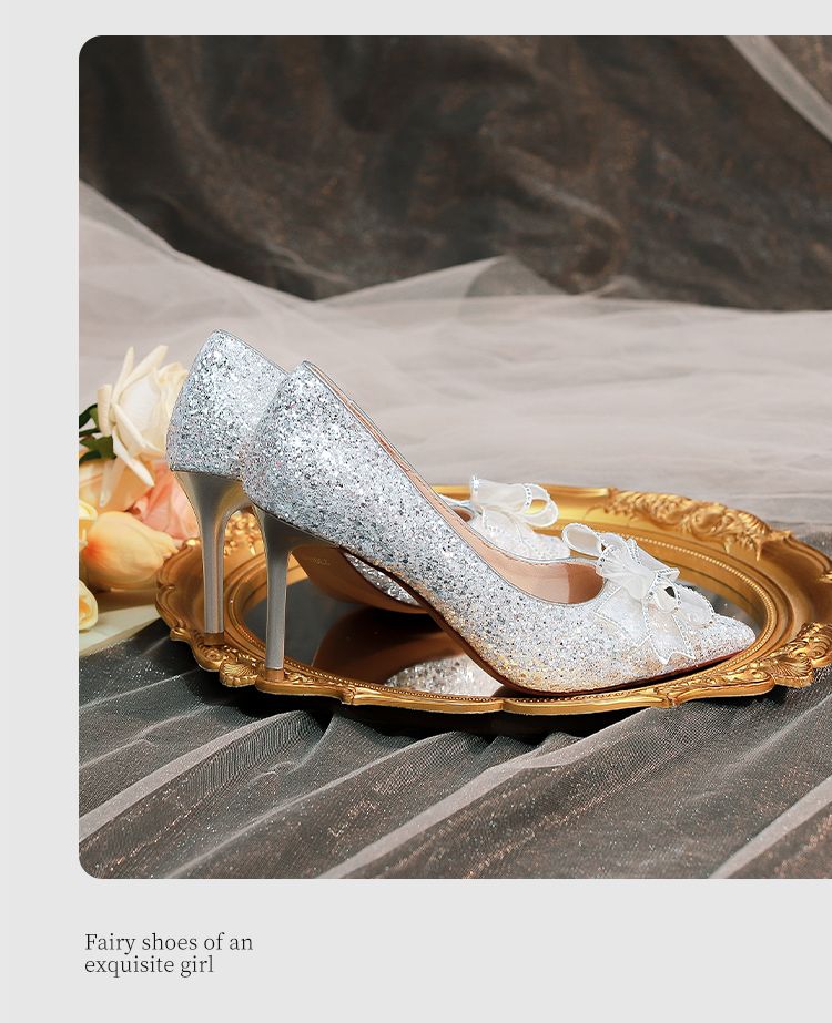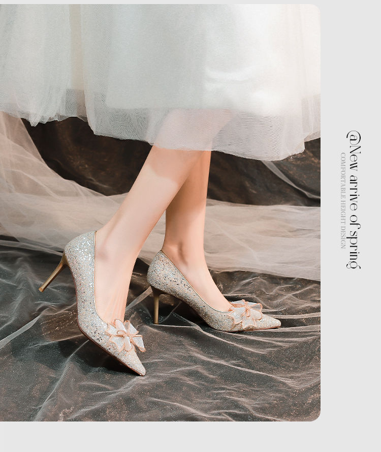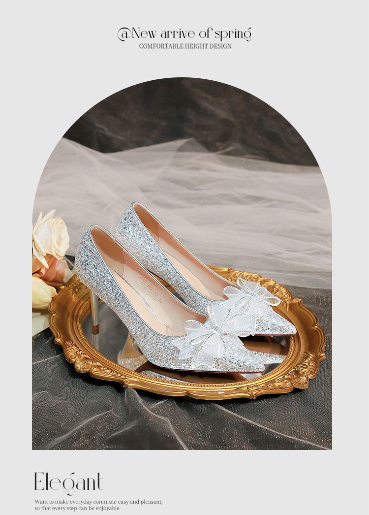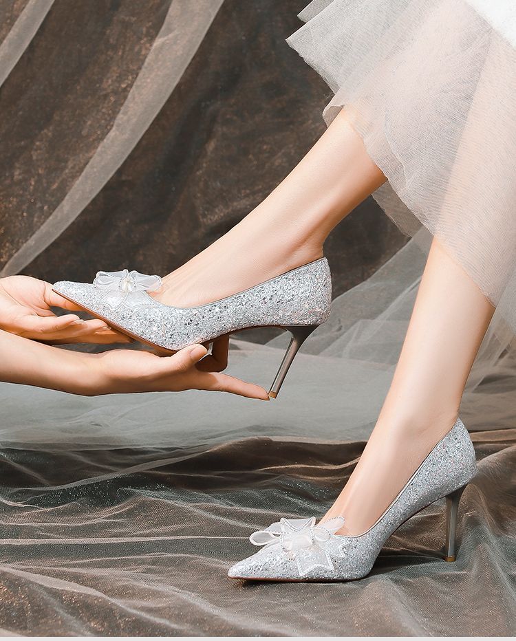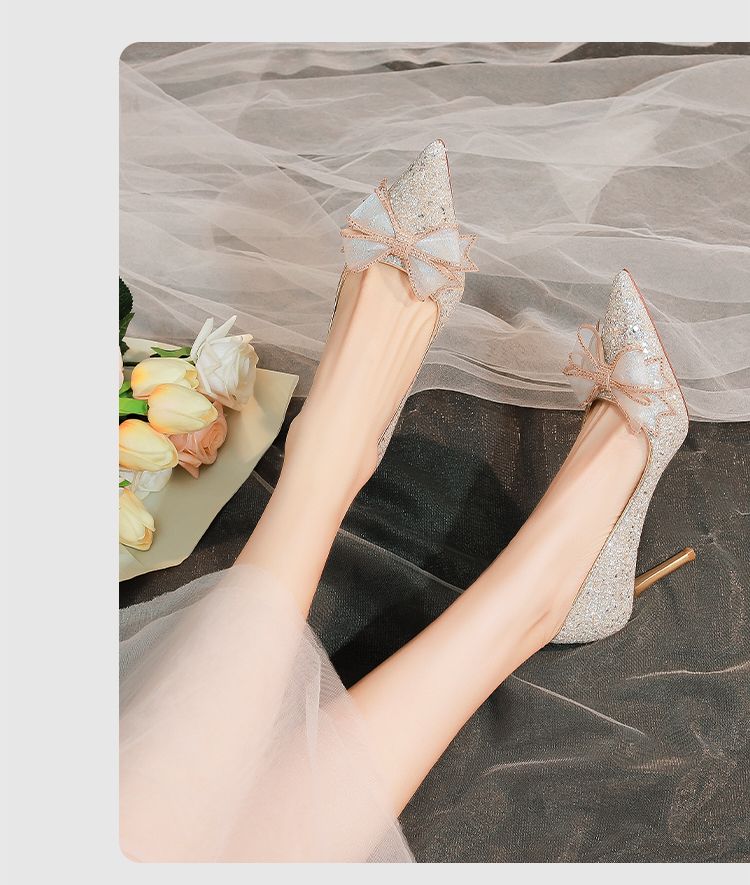 ZHR则则尖头蝴蝶结高跟鞋2025新款气质百搭细跟伴娘鞋单鞋新娘鞋