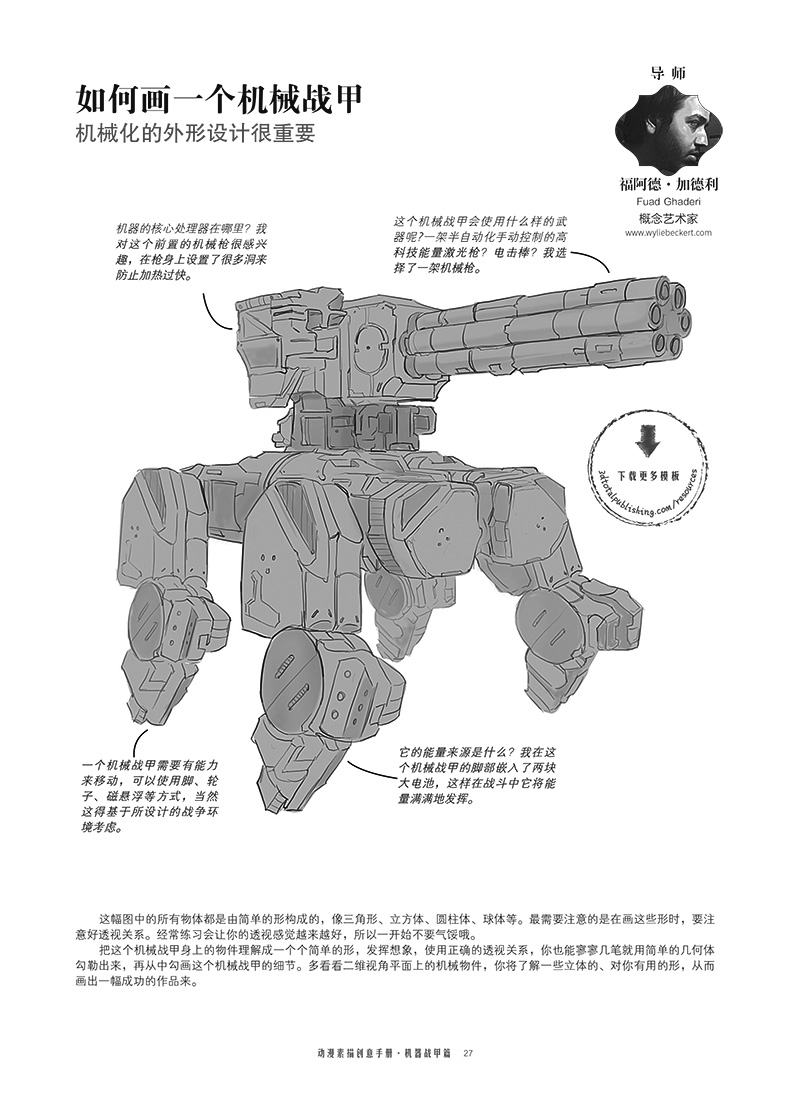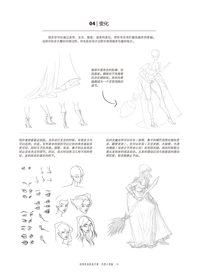 动漫素描创意手册【人体结构篇 角色设定篇 宇宙生物篇 建筑场景篇 机器战甲篇 未来概念篇 幻想人物篇 机械与武器设计篇 自然风景篇】