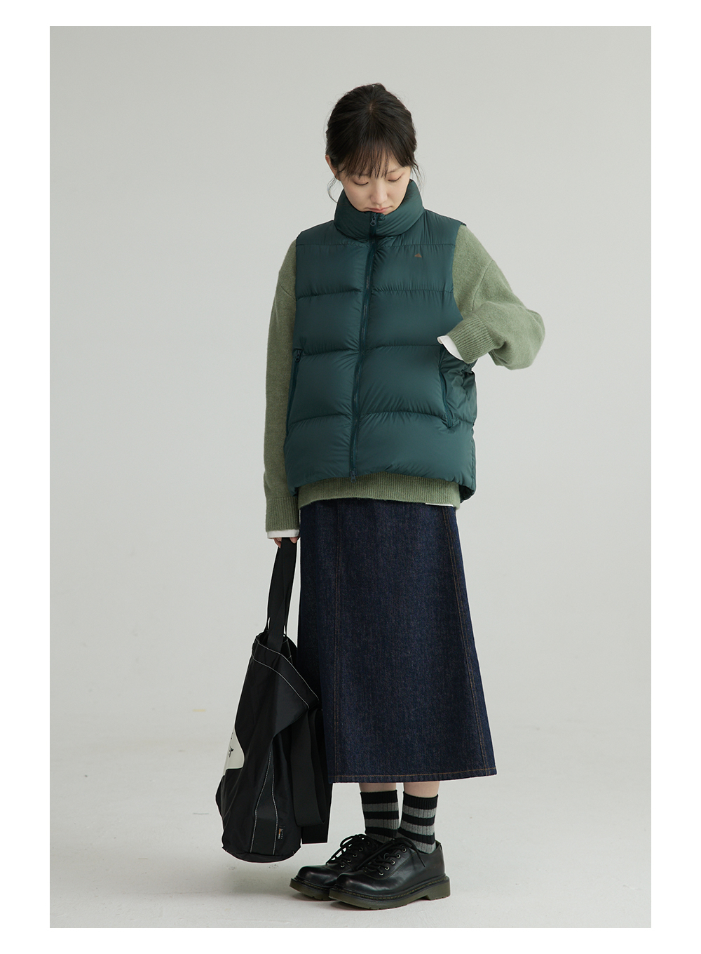 SUPERTOFU(SPTF)/新墨洗水牛仔阔身背带裤