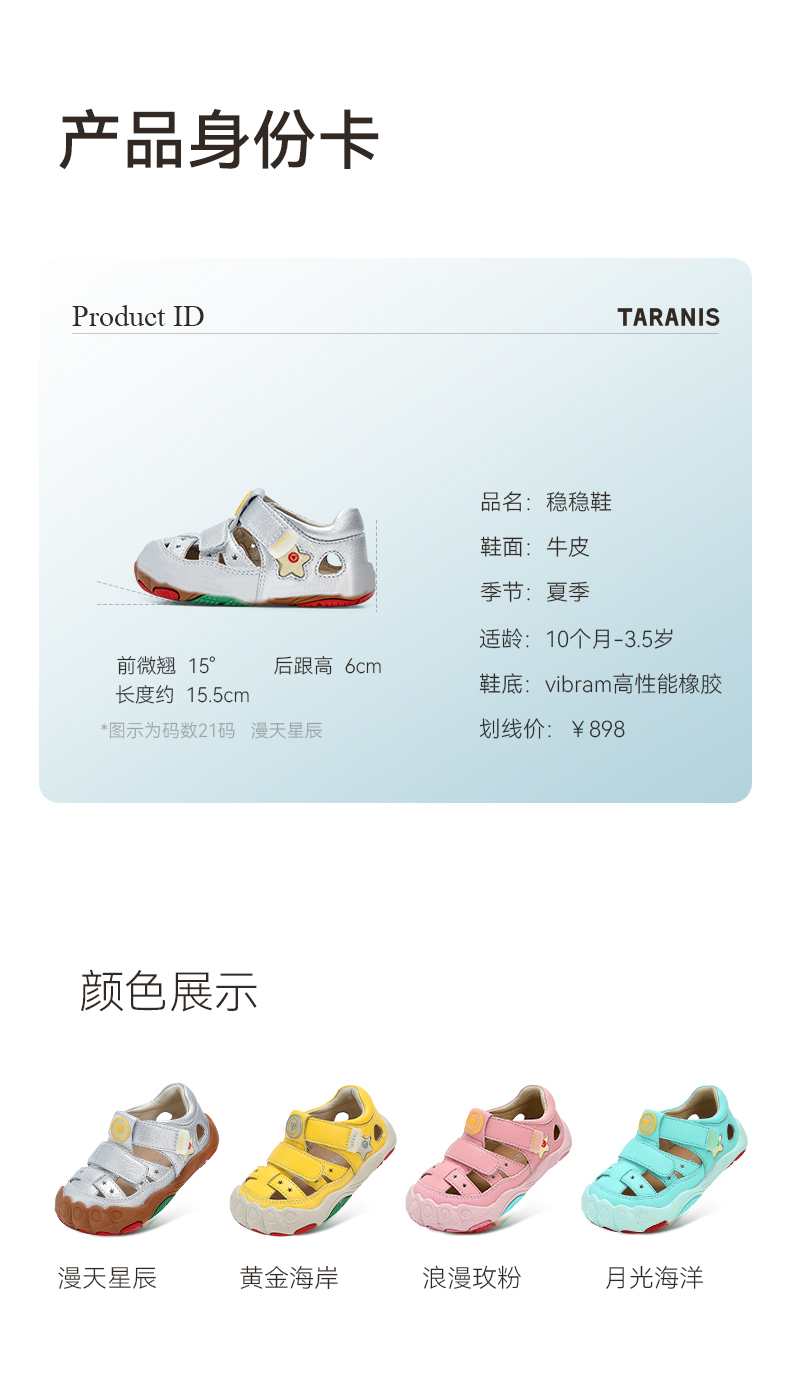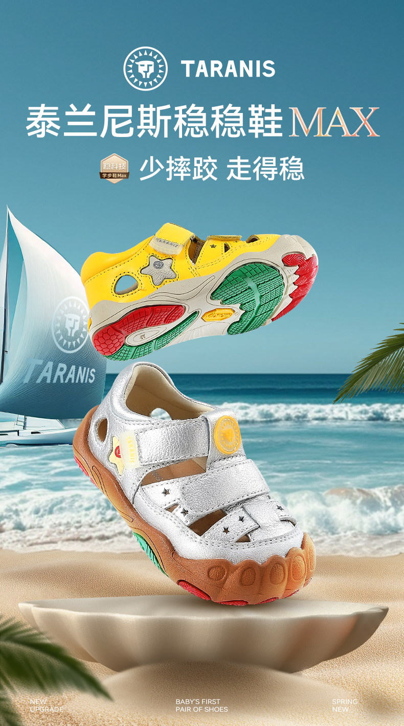 泰兰尼斯稳稳鞋MAX夏季新款童鞋学步鞋女童凉鞋真牛皮机能鞋男童 T26T5B7114